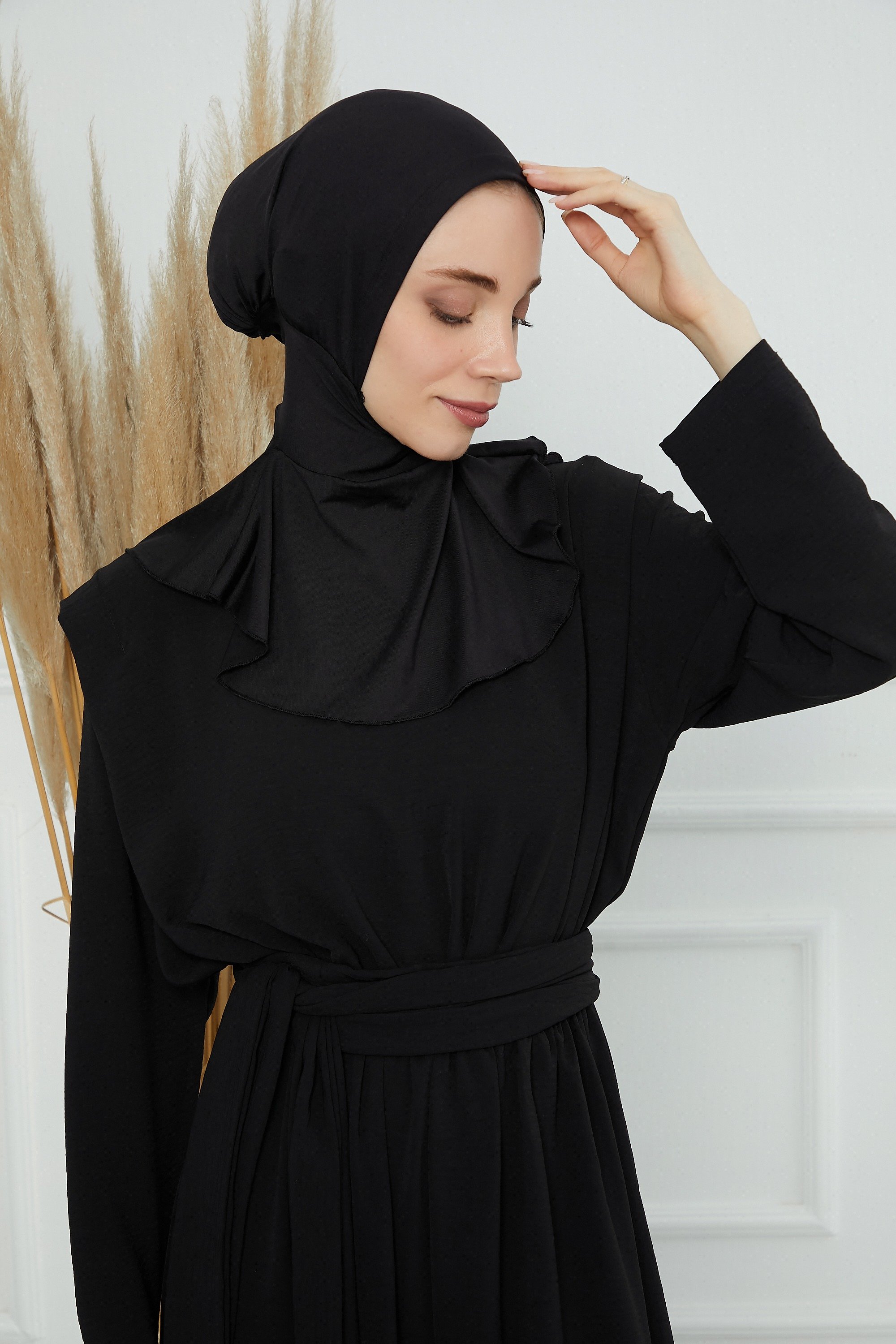 هو حلاً مثالياً للنساء اللواتي يبحثن عن التغطية الكاملة أثناء ممارسة السباحة. يتميز هذا الحجاب بتصميمه الفريد الذي يغطي الشعر والرقبة بشكل كامل، مما يمنحك الشعور بالثقة والأناقة أثناء السباحة.