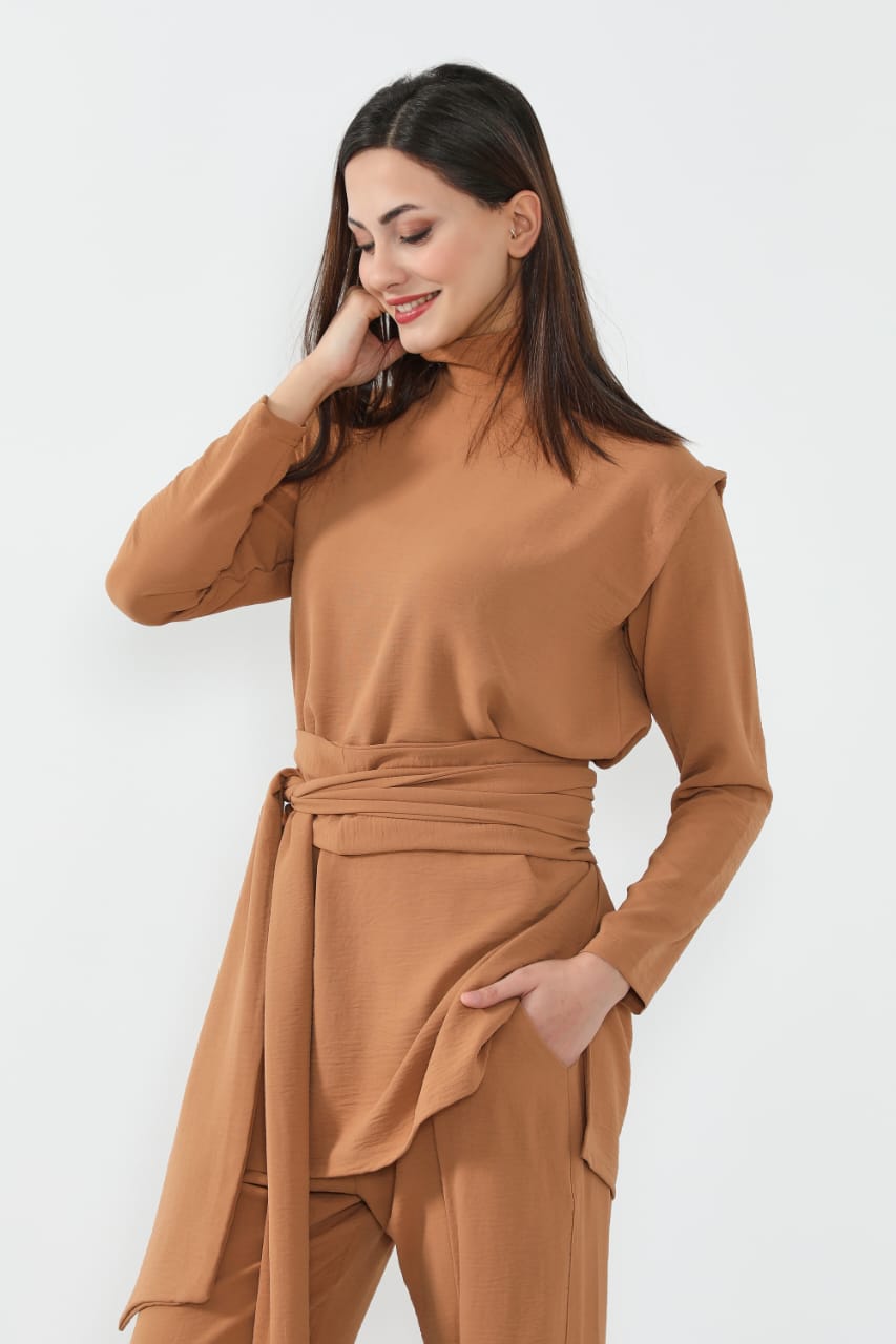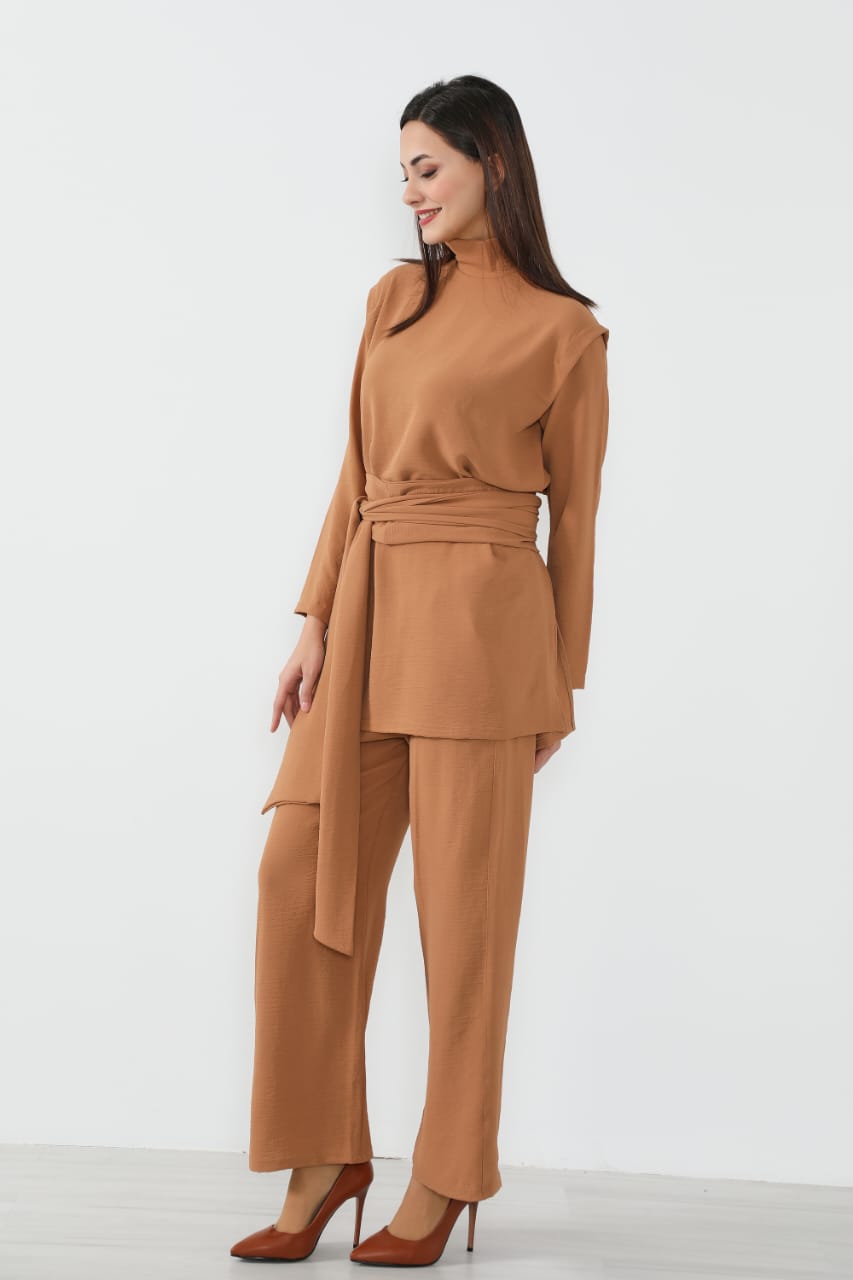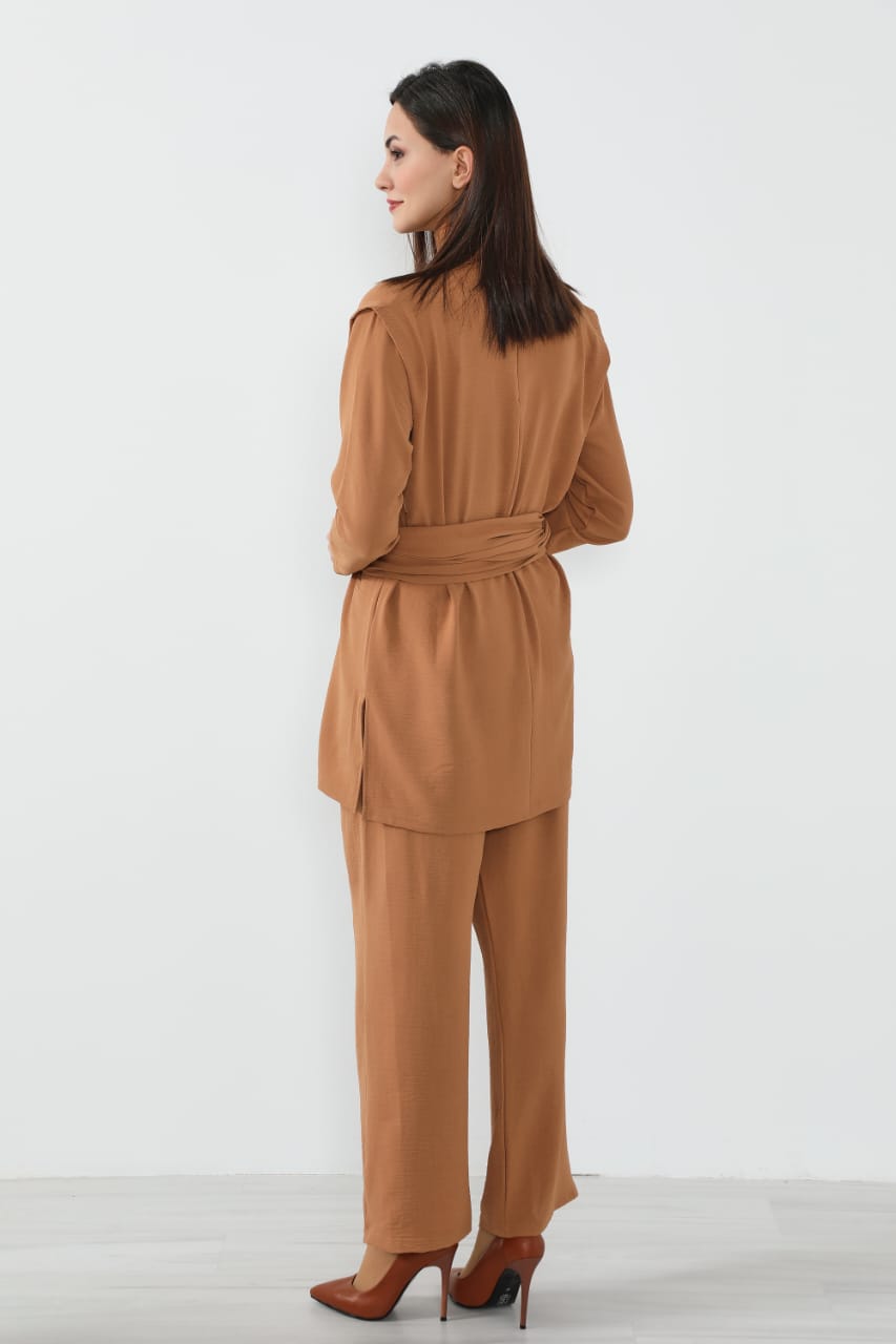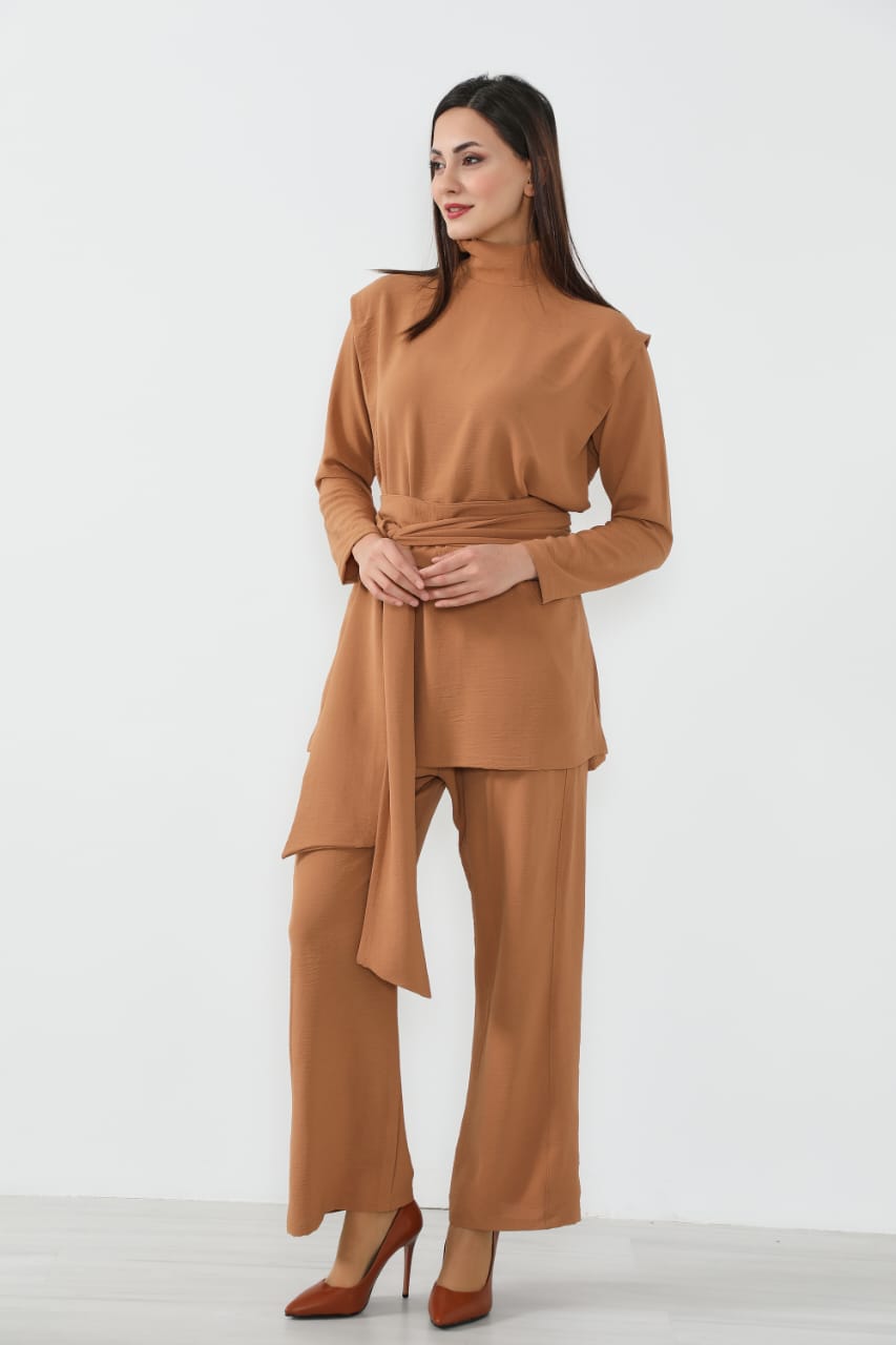 • البدلة بالكامل واسعة ومريحة، عملية للبس يومي أو لمناسبات مختلفة، سواء تحت الجاكيت أو كقطعة خارجية أنيقة.