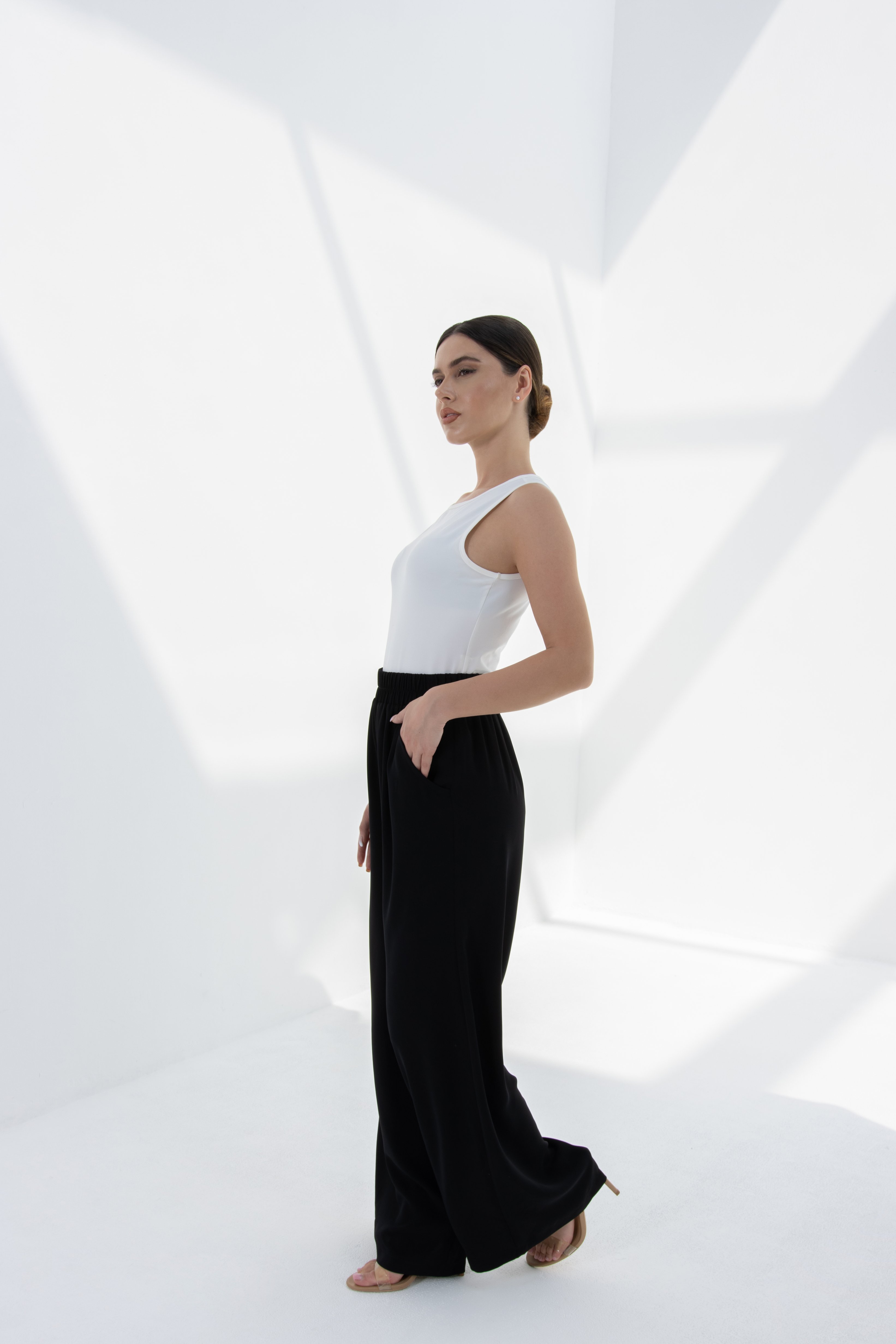 بنطلون أبيض واسع وعملي .. قطعة أساسية في دولابك، تجمع بين الأناقة والراحة: