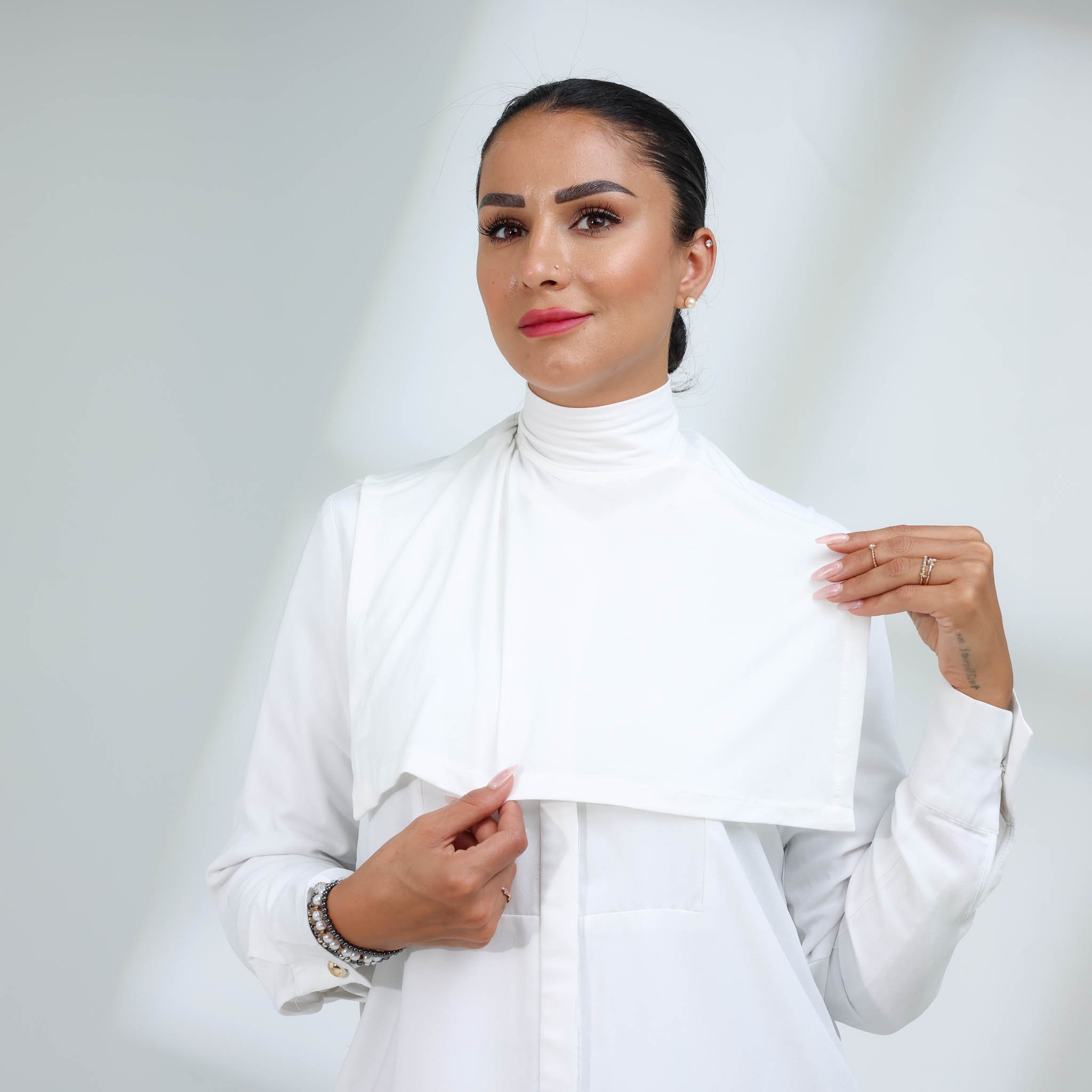 قطعة عملية وأنيقة تُسهّل عليك تنسيق ملابسك، خاصة مع القمصان المفتوحة أو الأقمشة الشفافة. تمنحك تغطية مثالية للرقبة والصدر مع إحساس مريح طوال اليوم.