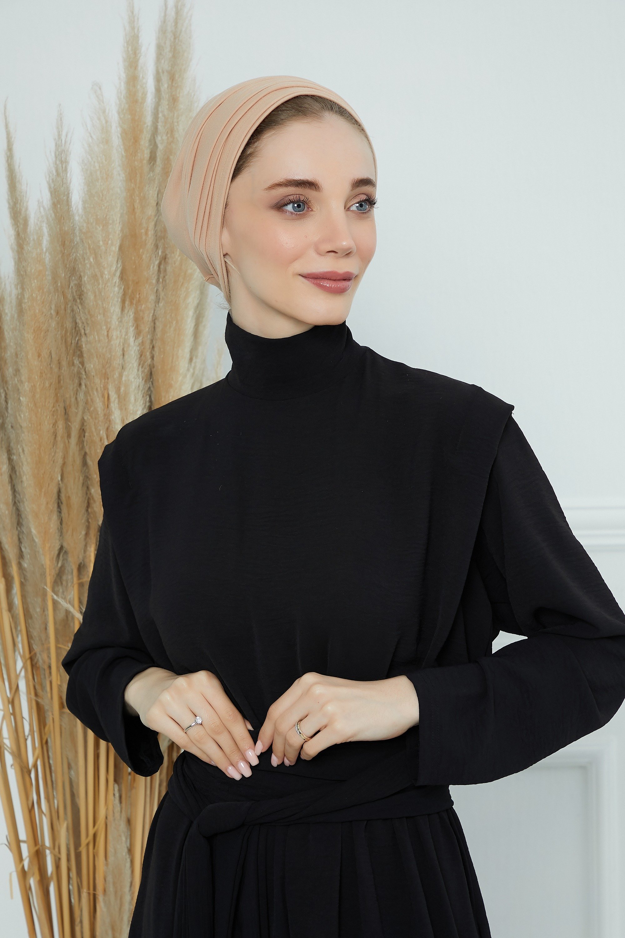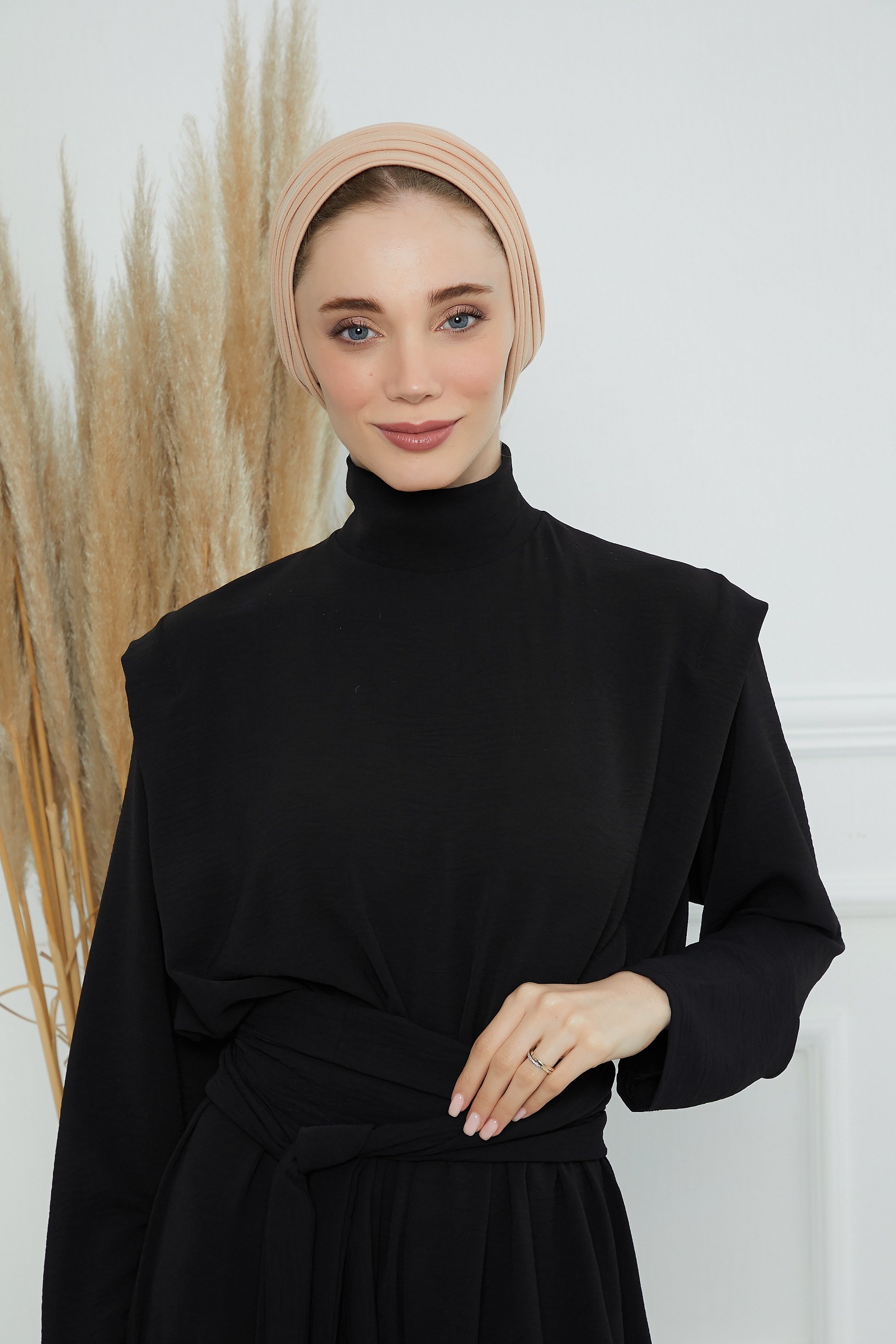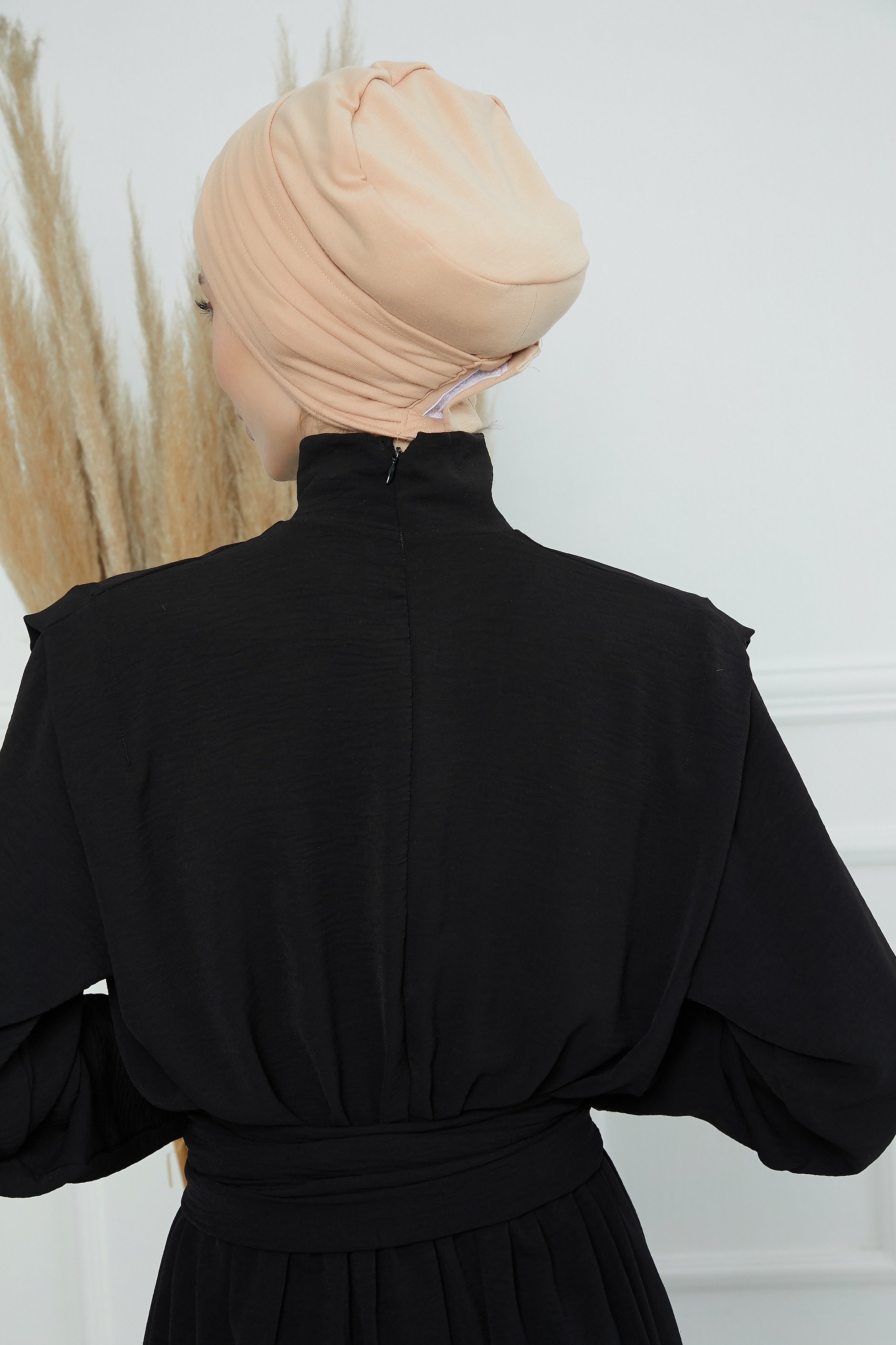 توربان جاهز انيقة بني فاتح مصنوعة من قماش عالي الجودة، تأتي مع بطانة داخلية مريحة، هذه التوربان ليست أنيقة فحسب، بل إنها أيضًا خفيفة الوزن وسهلة الارتداء، غطاء رأس أنيق و مريح ومثالي للارتداء اليومي، يضمن القماش خفيف الوزن التهوية، مما يجعله مثاليًا للطقس الحار.
