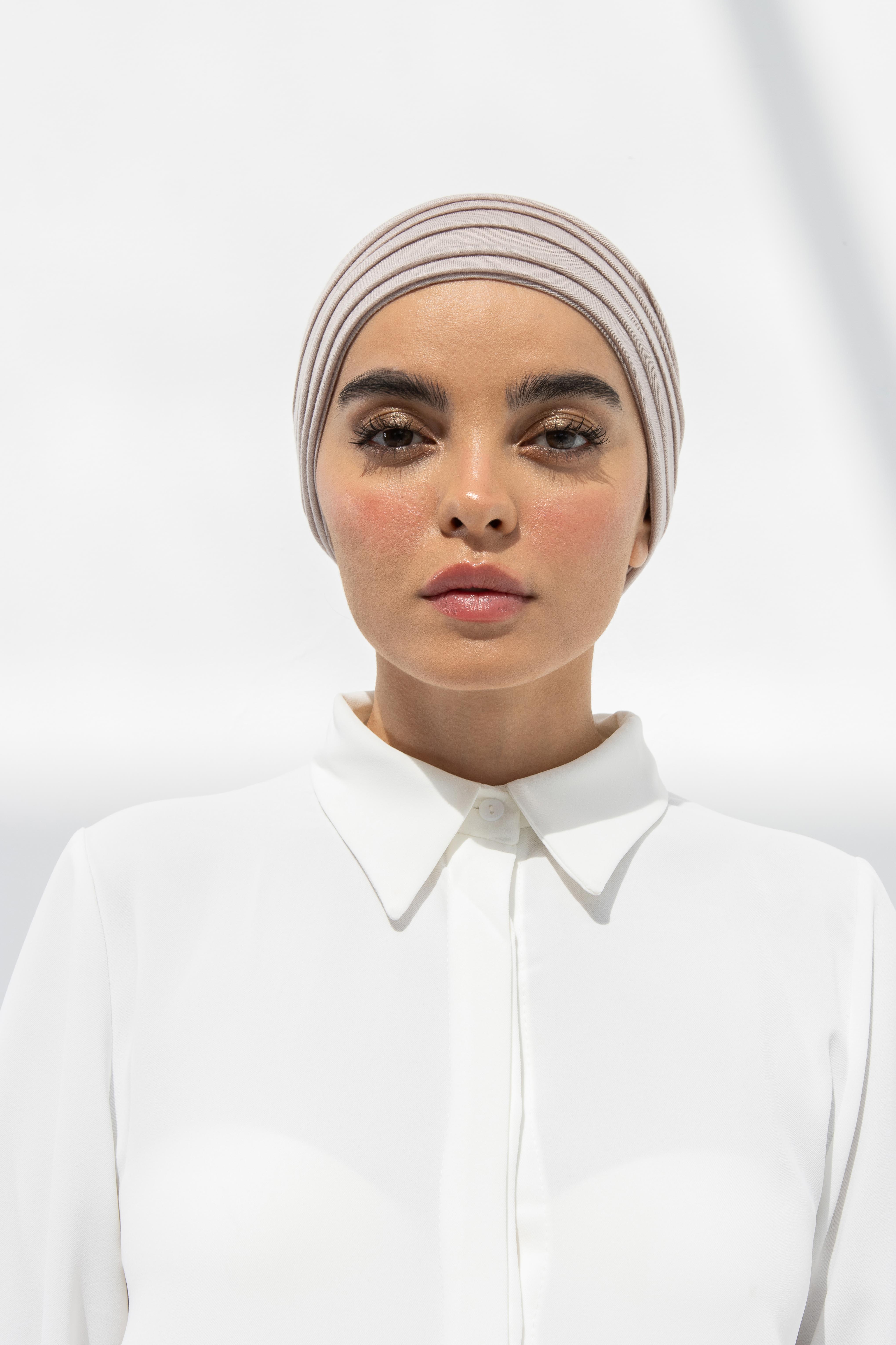 • هذه التوربان المكونة من قطعتين مصنوعة من خامة دبل سترتش فاخرة، مما يمنحها مظهرًا آسرًا وفاخرًا.