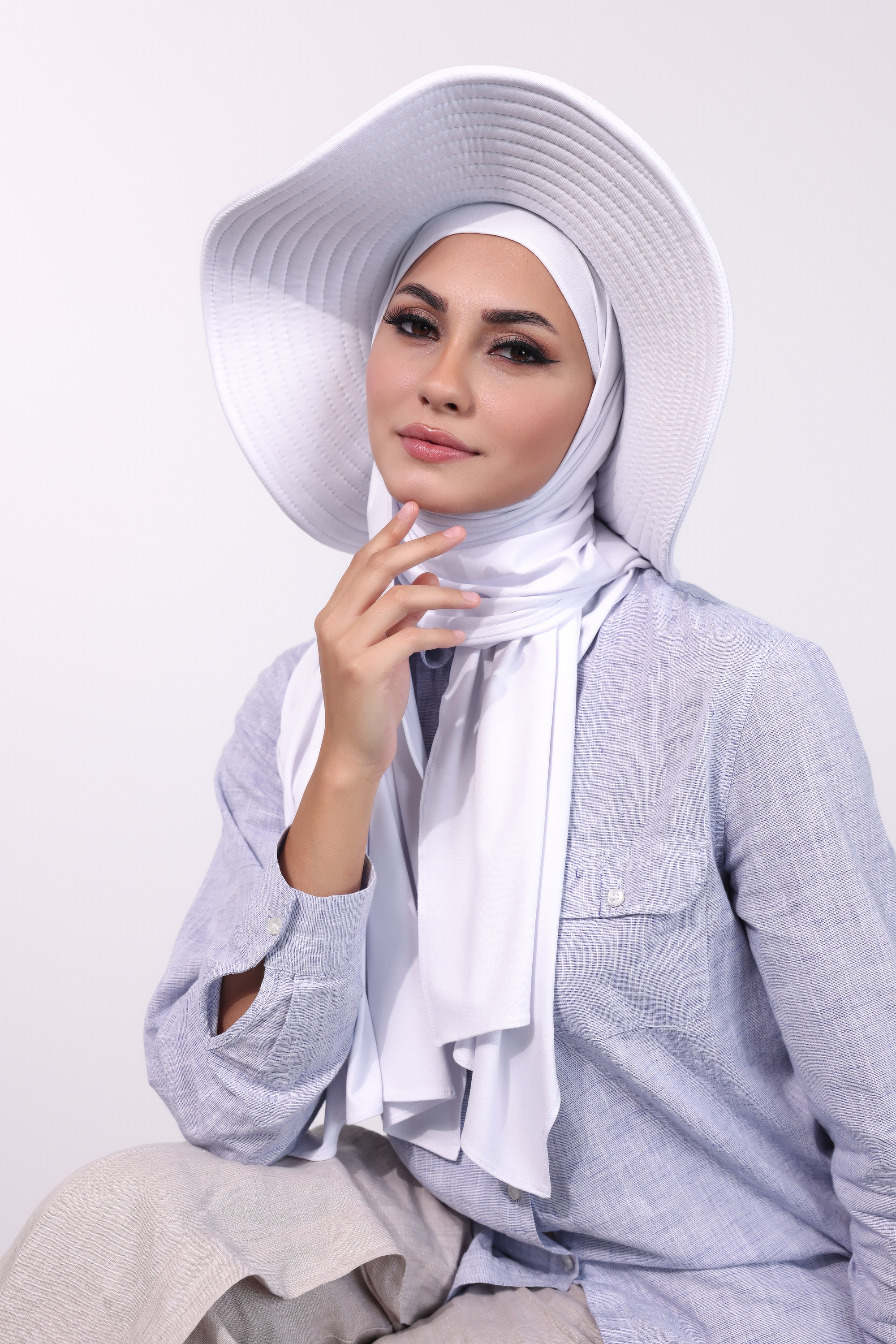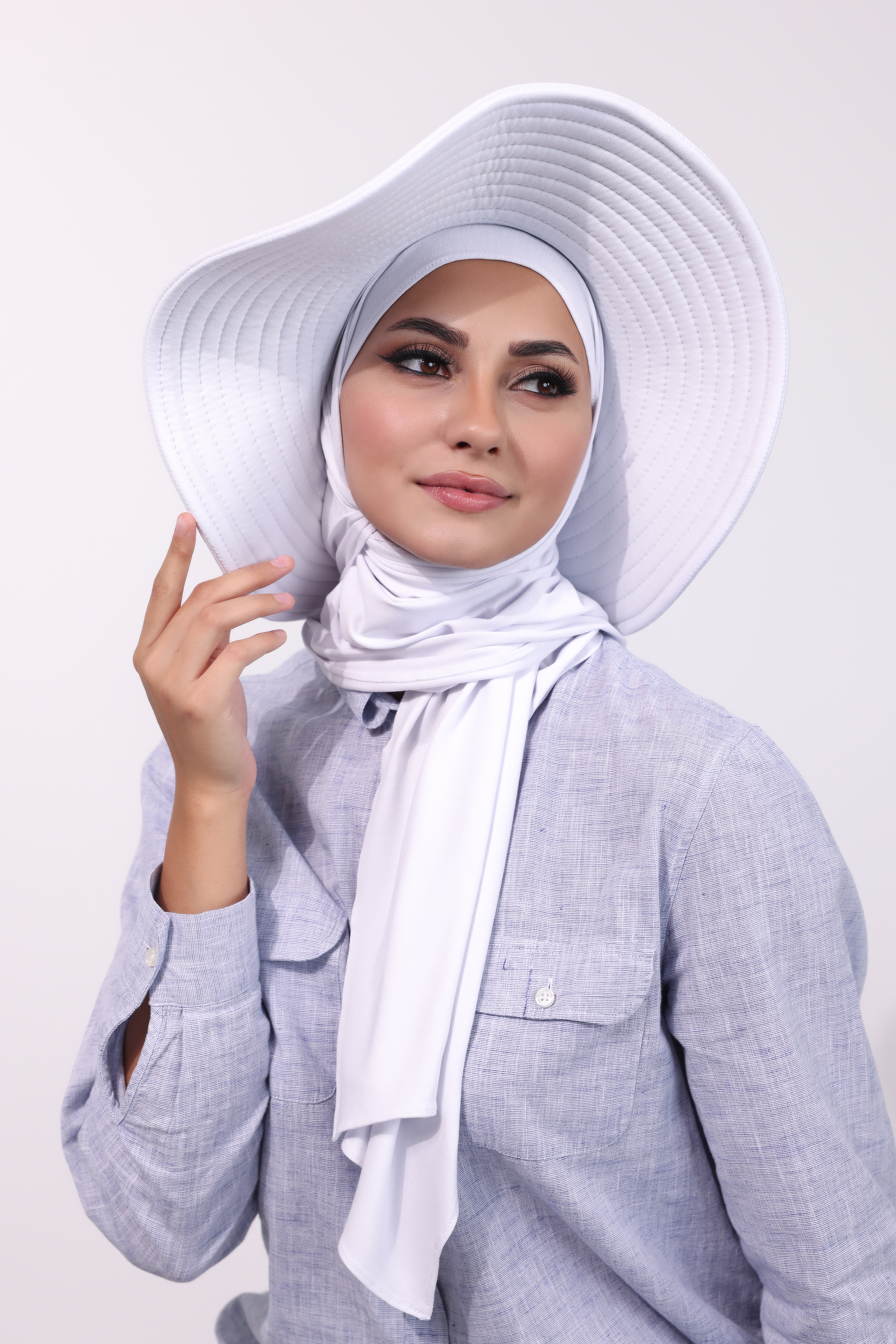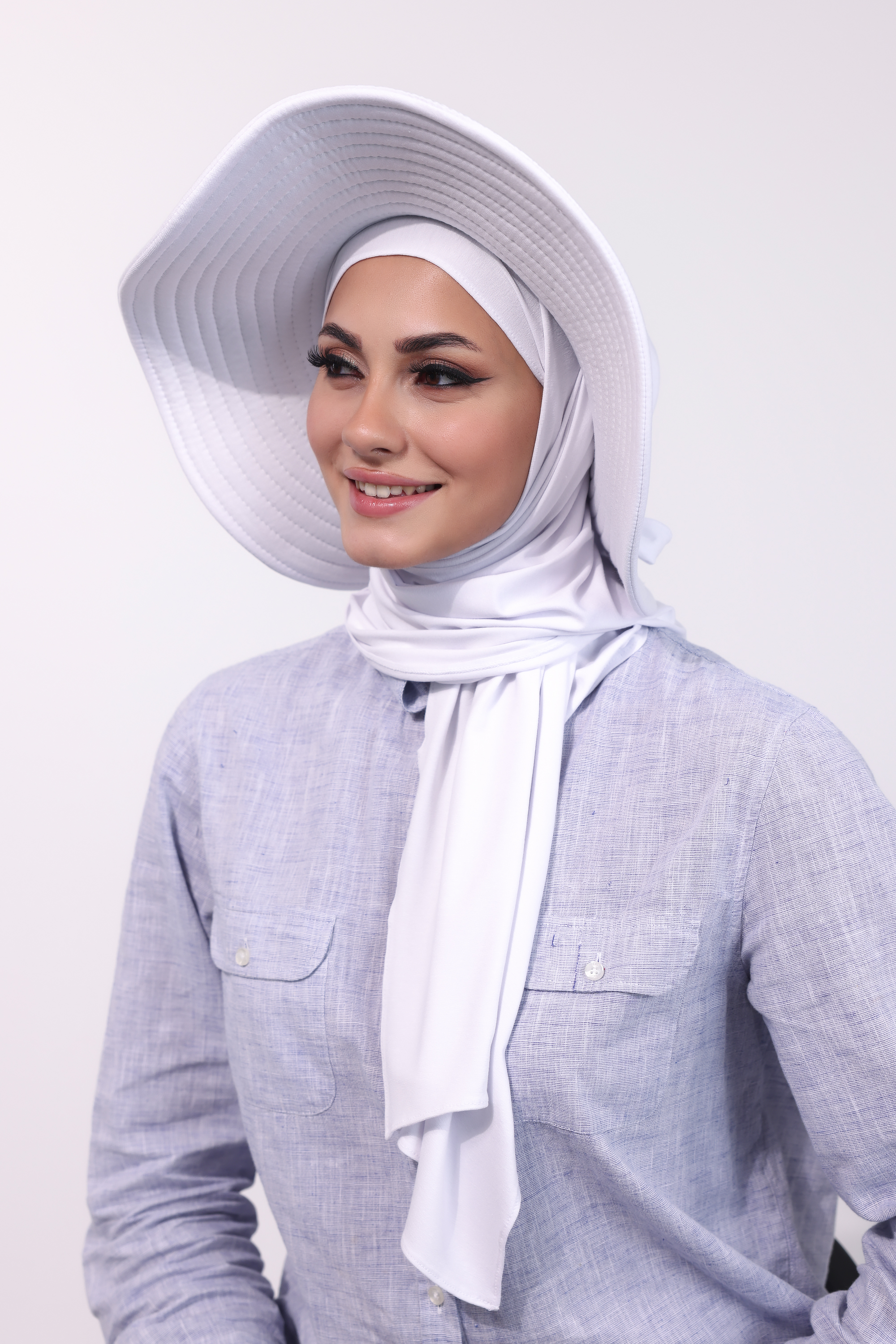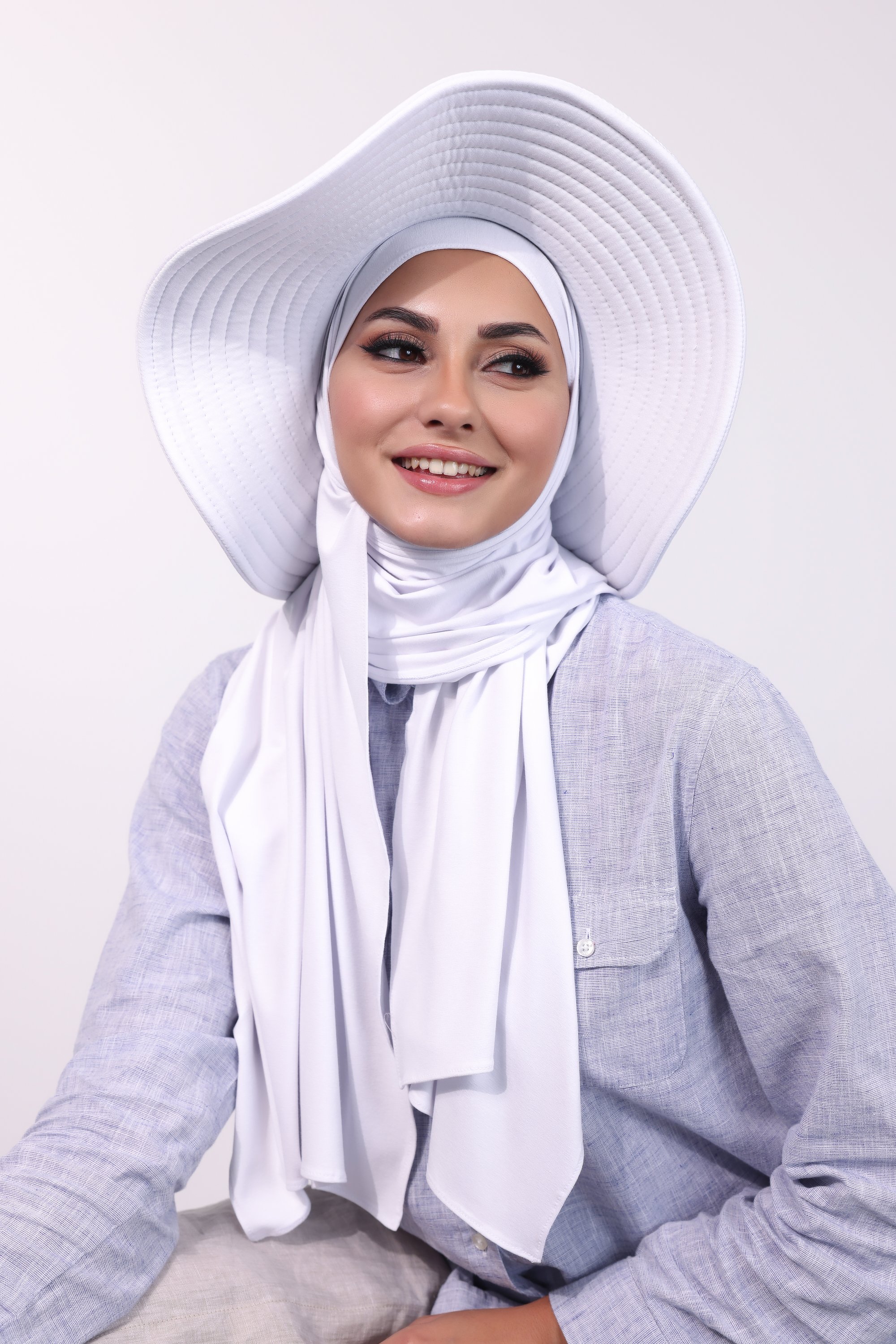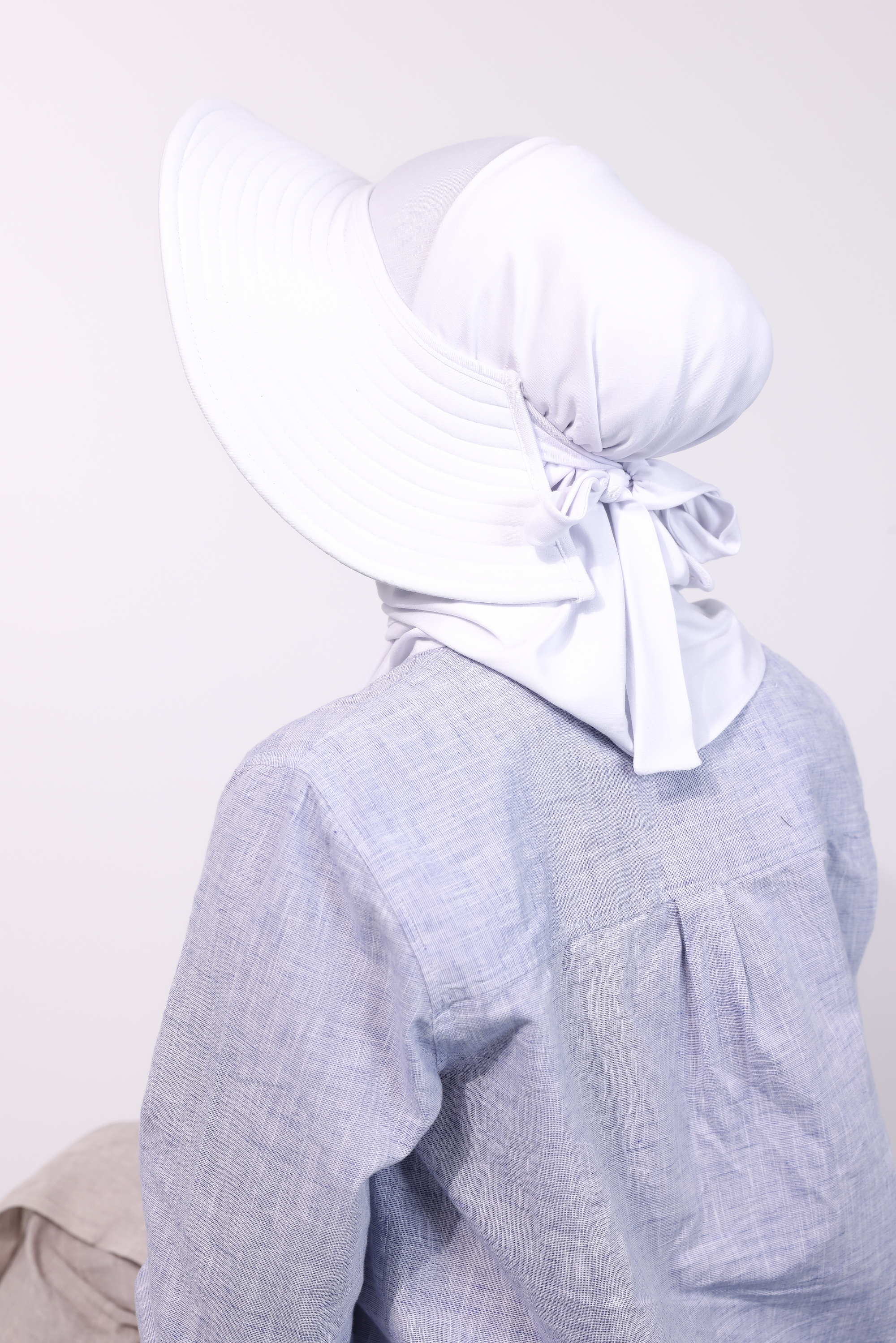 حجاب الشاطي مع قبعة - أبيض