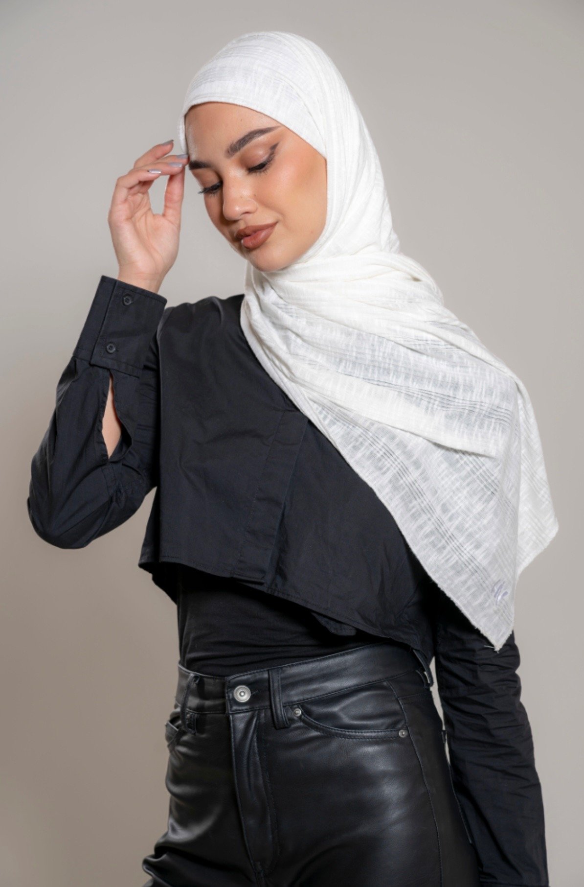 - خامة عند ثنيها من الأمام تعطيكِ شكل مثلث عند مقدمة الوجه.