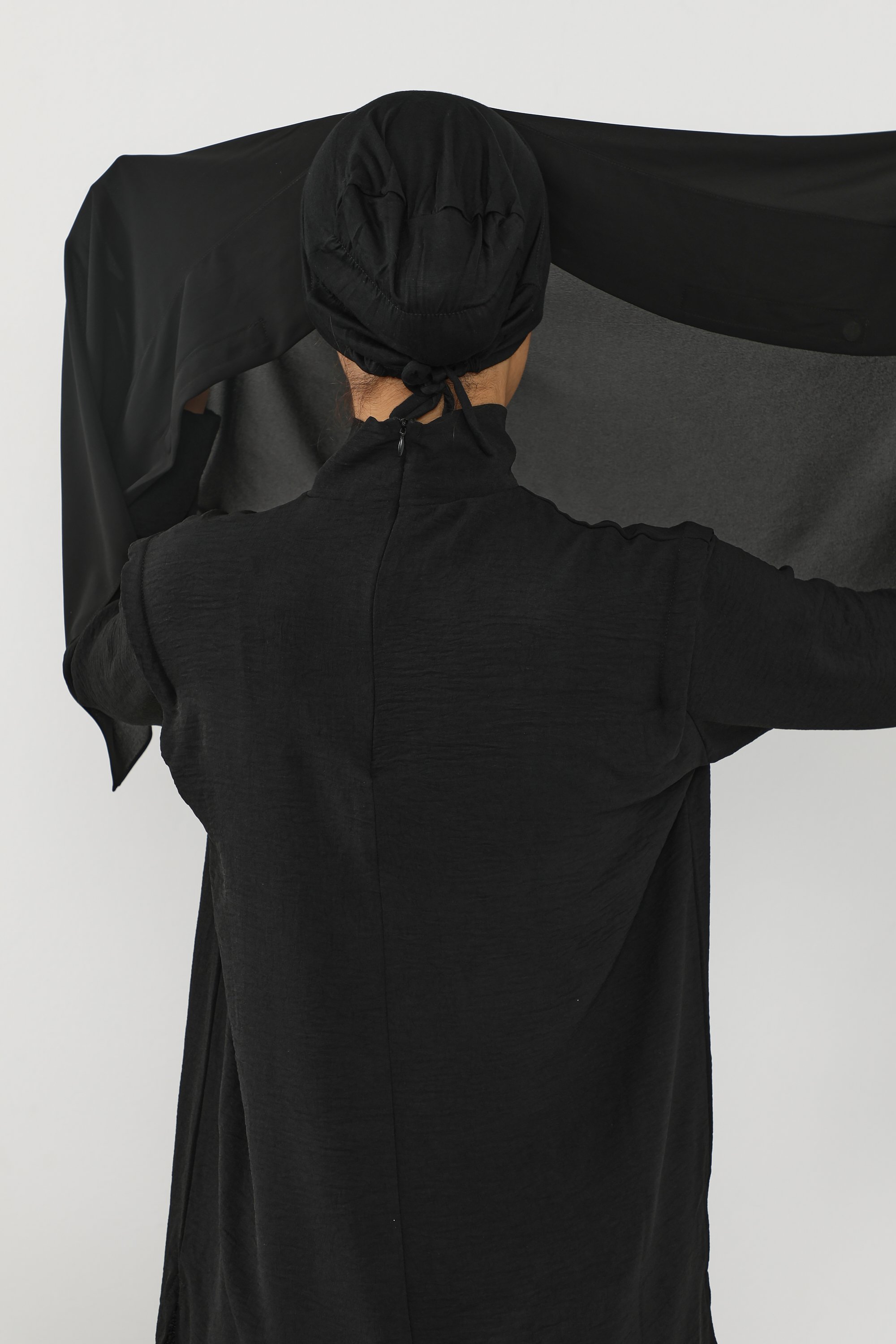 حجاب شيفون بمغناطيس وقبعة جانبي اسود
