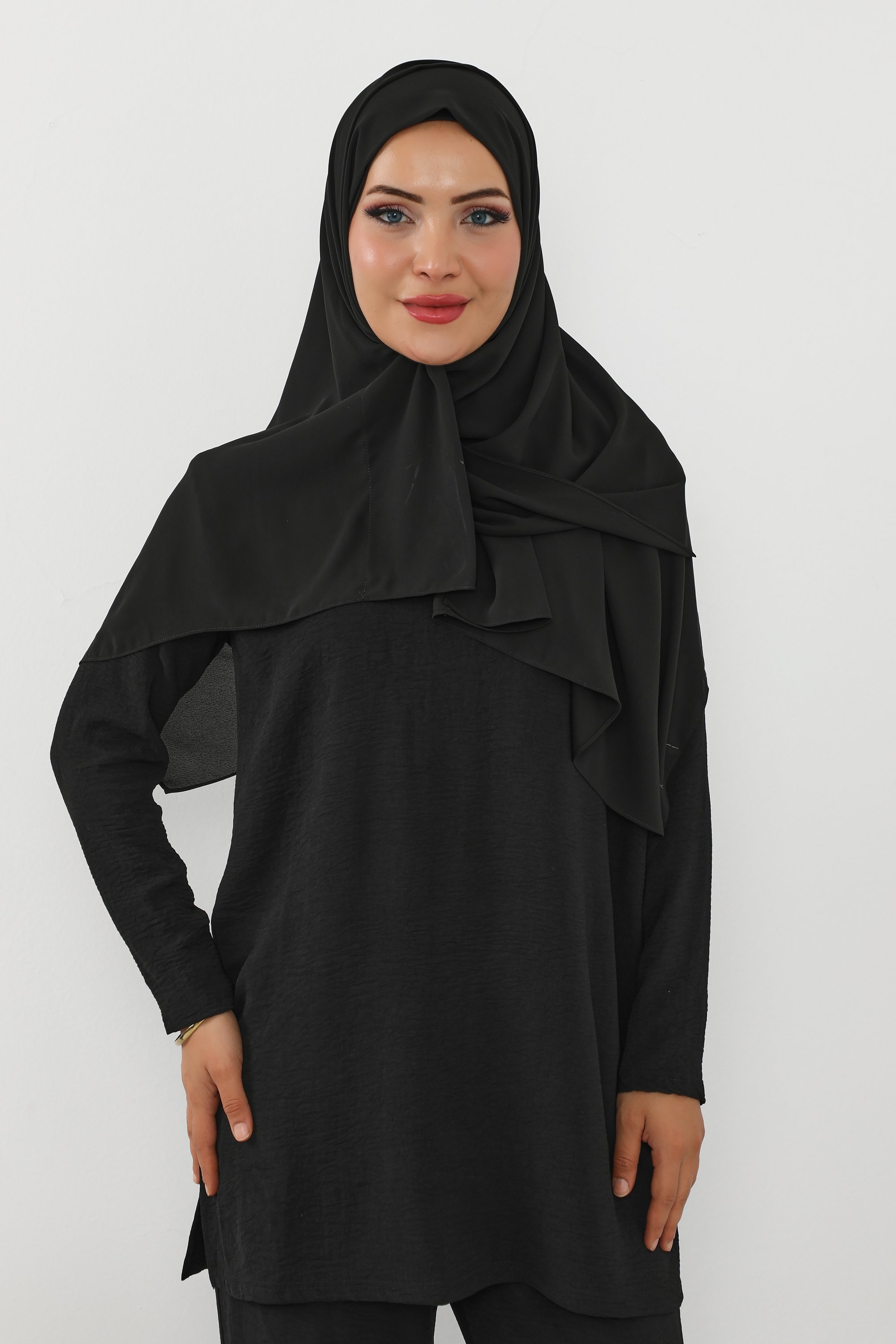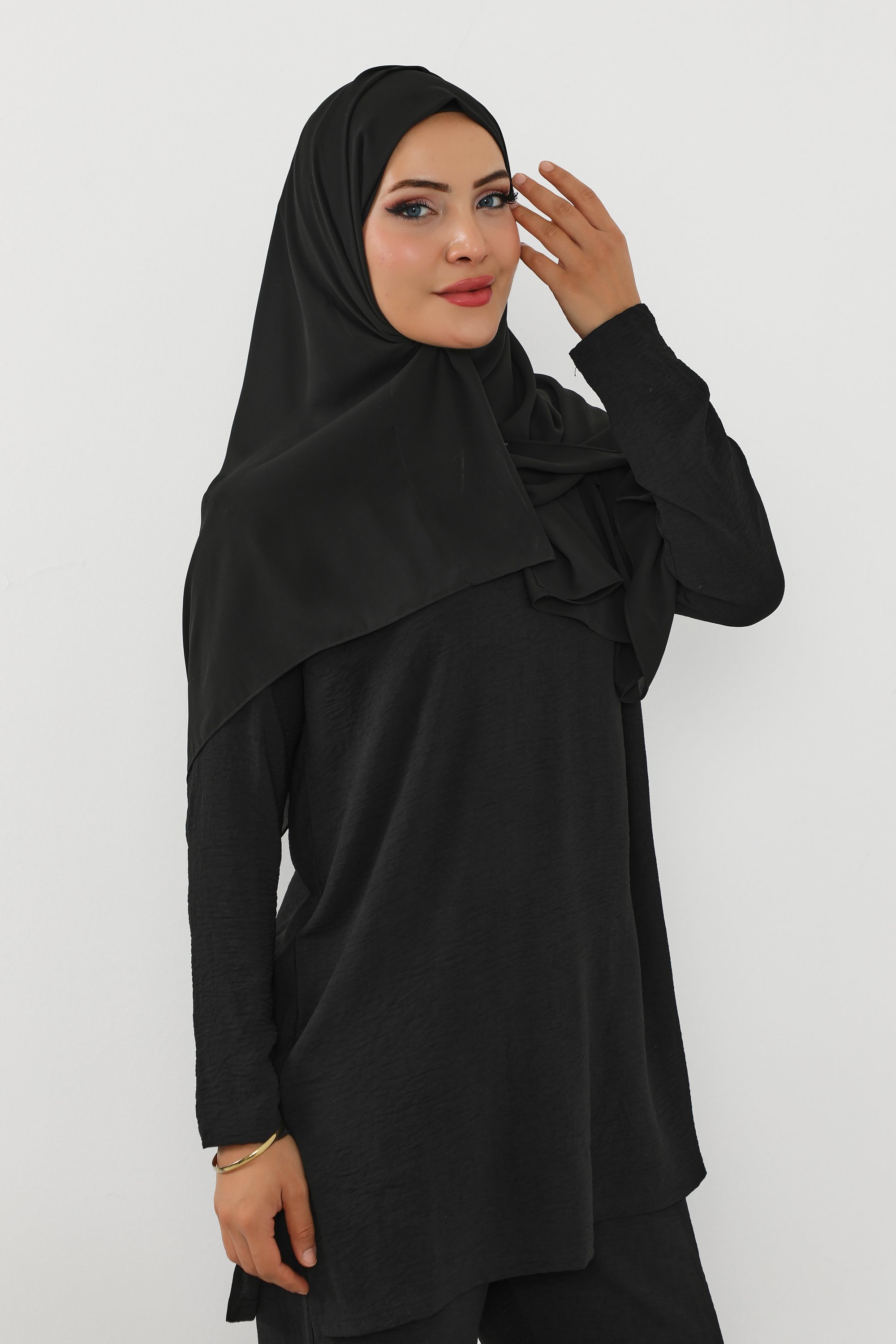 حجاب عملي مثالي للمشاوير اليومية أو المناسبات، يجمع بين الراحة والفخامة في قطعة واحدة.