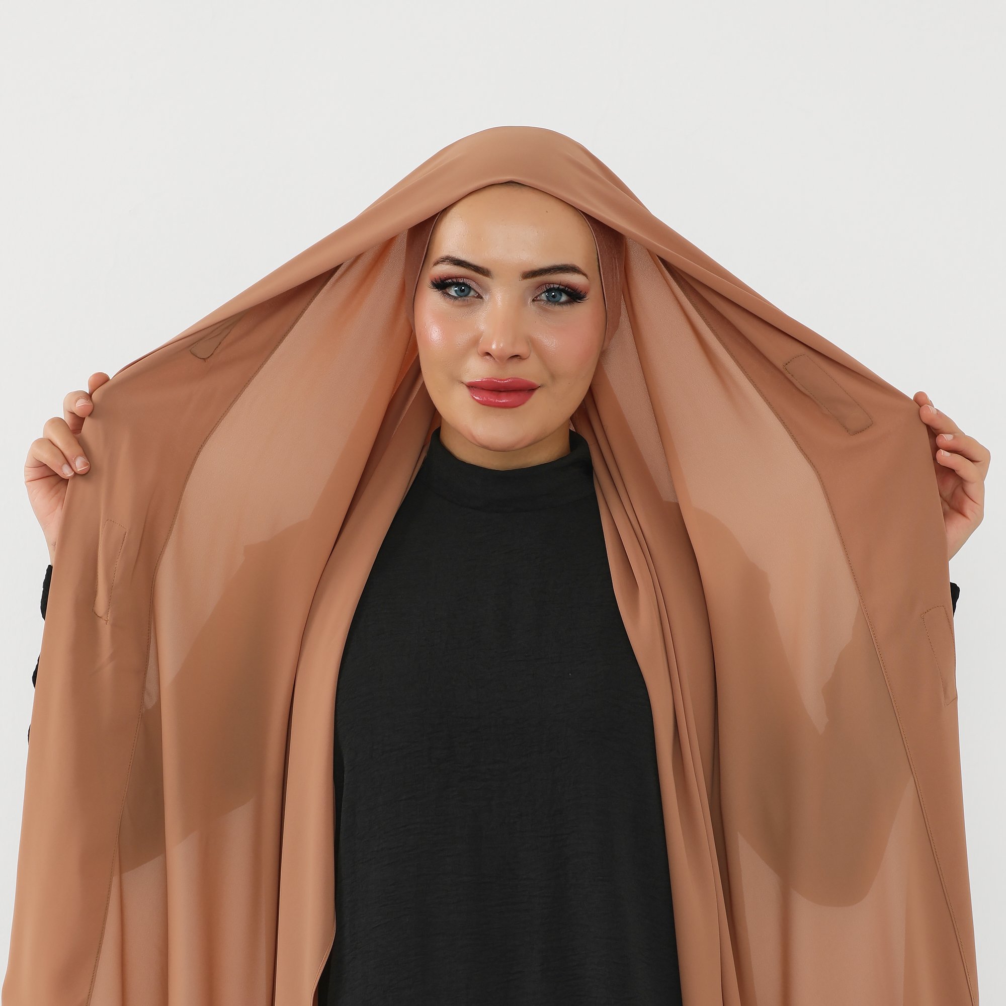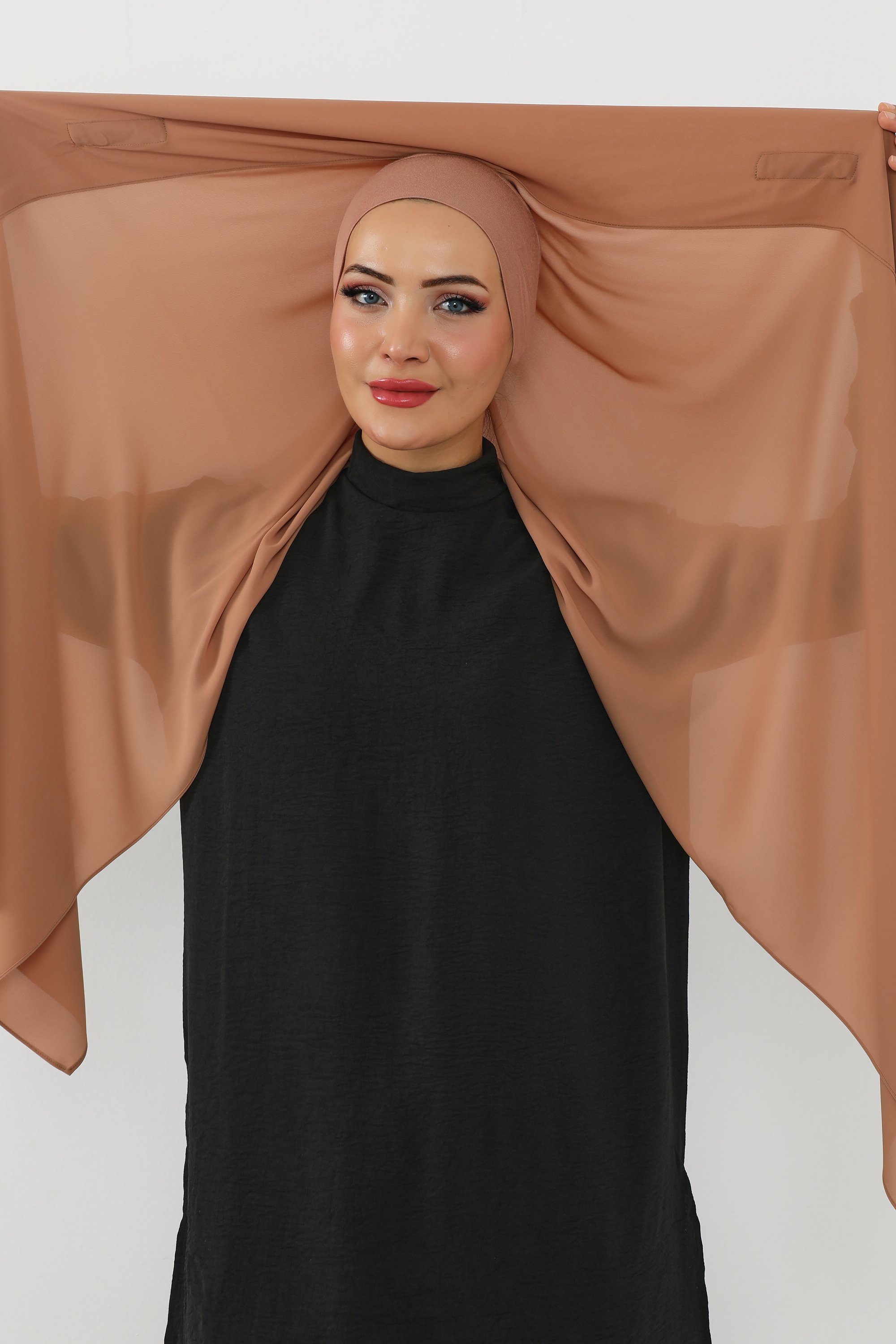 حجاب شيفون بمغناطيس وقبعة بالوسط