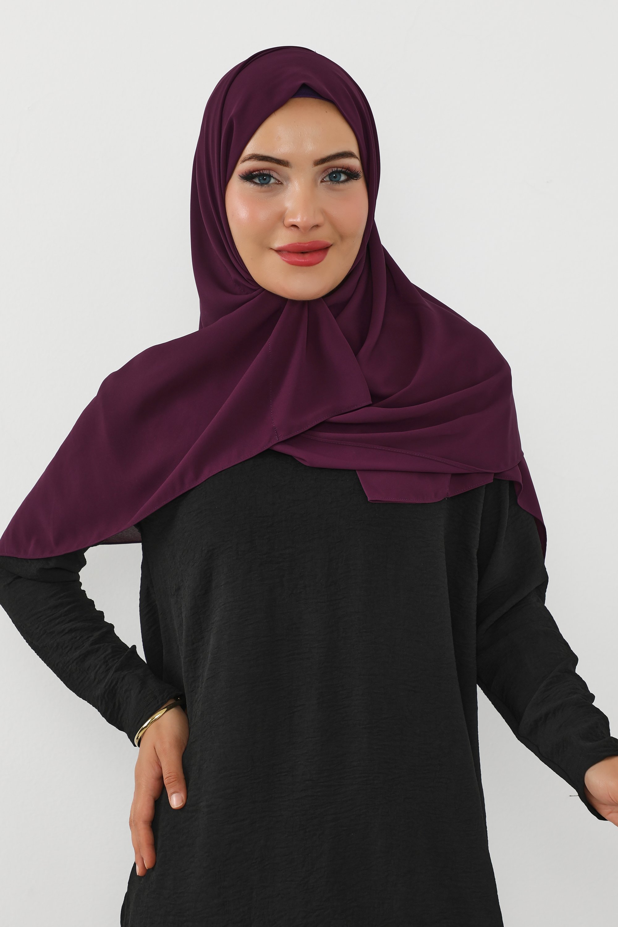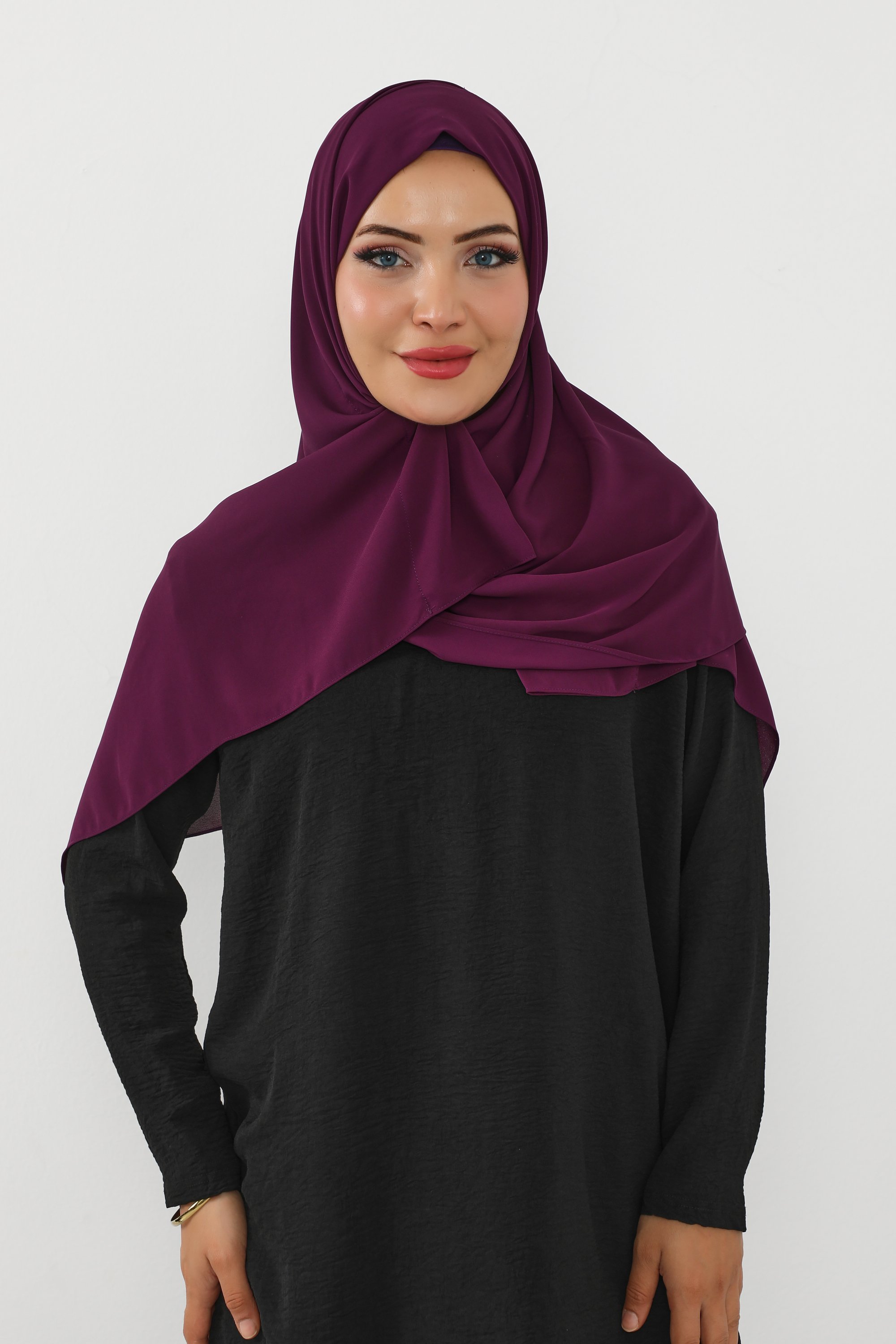 حجاب شيفون بمغناطيس وقبعة جانبي