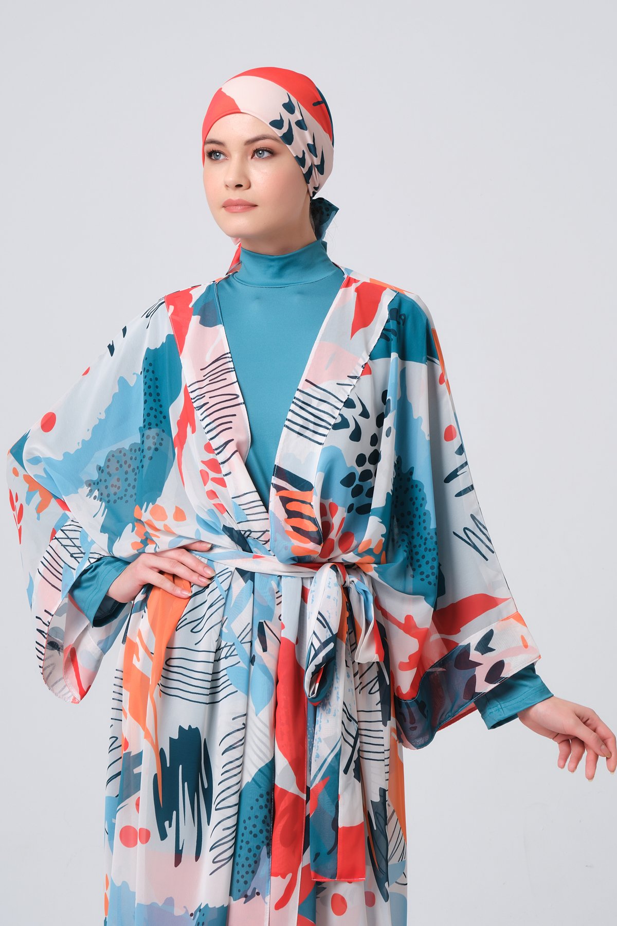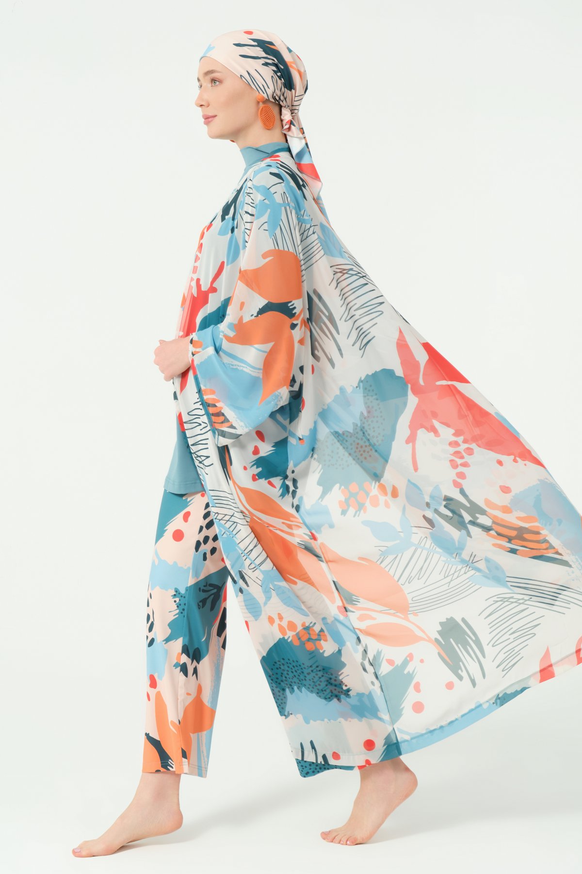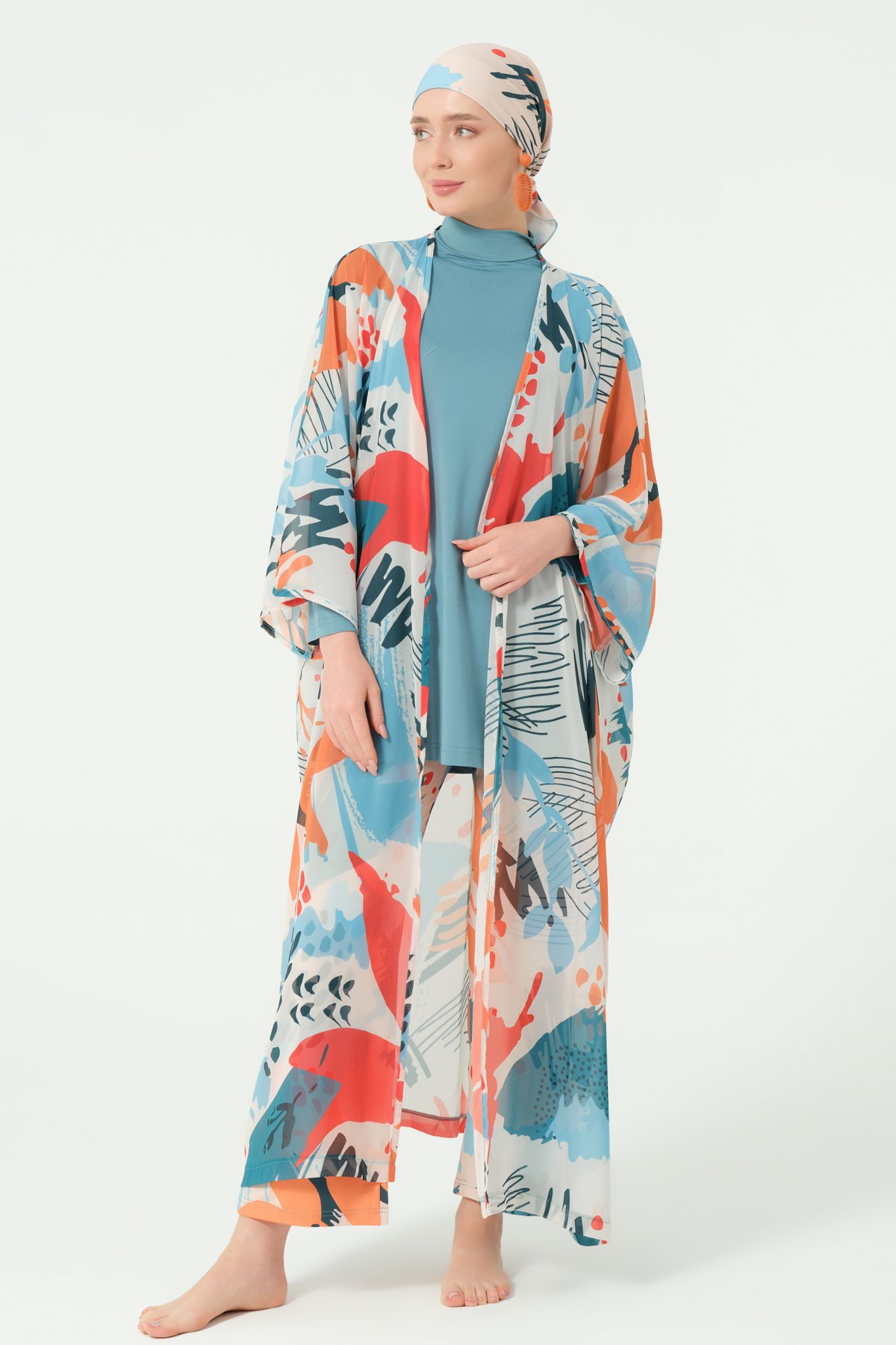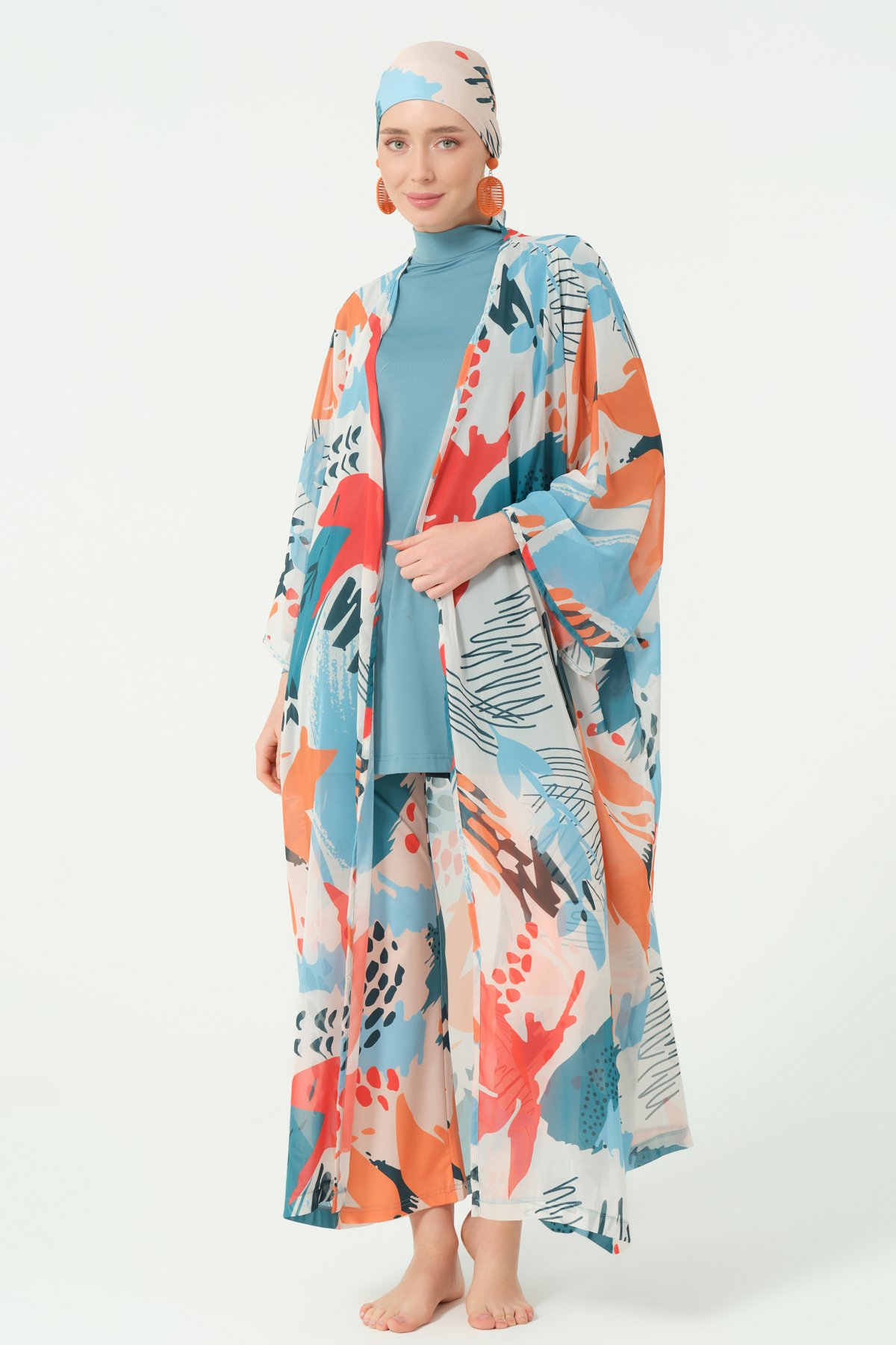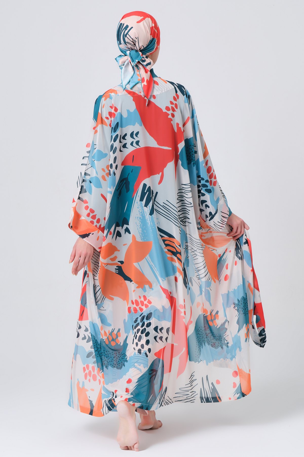 أكملي أناقتك على الشاطئ أو عند المسبح بهذا الشيفون الطويل المصنوع من خامة الشيفون الخفيفة والعملية، والمصمم خصيصًا ليمنحك لمسة من الاحتشام والرقي. يتميّز بقصّة انسيابية تشبه العباية، ويمكن ارتداؤه مفتوحًا لإطلالة عصرية، أو إغلاقه بالكامل ليمنحك تغطية تامة بأسلوب أنيق.
