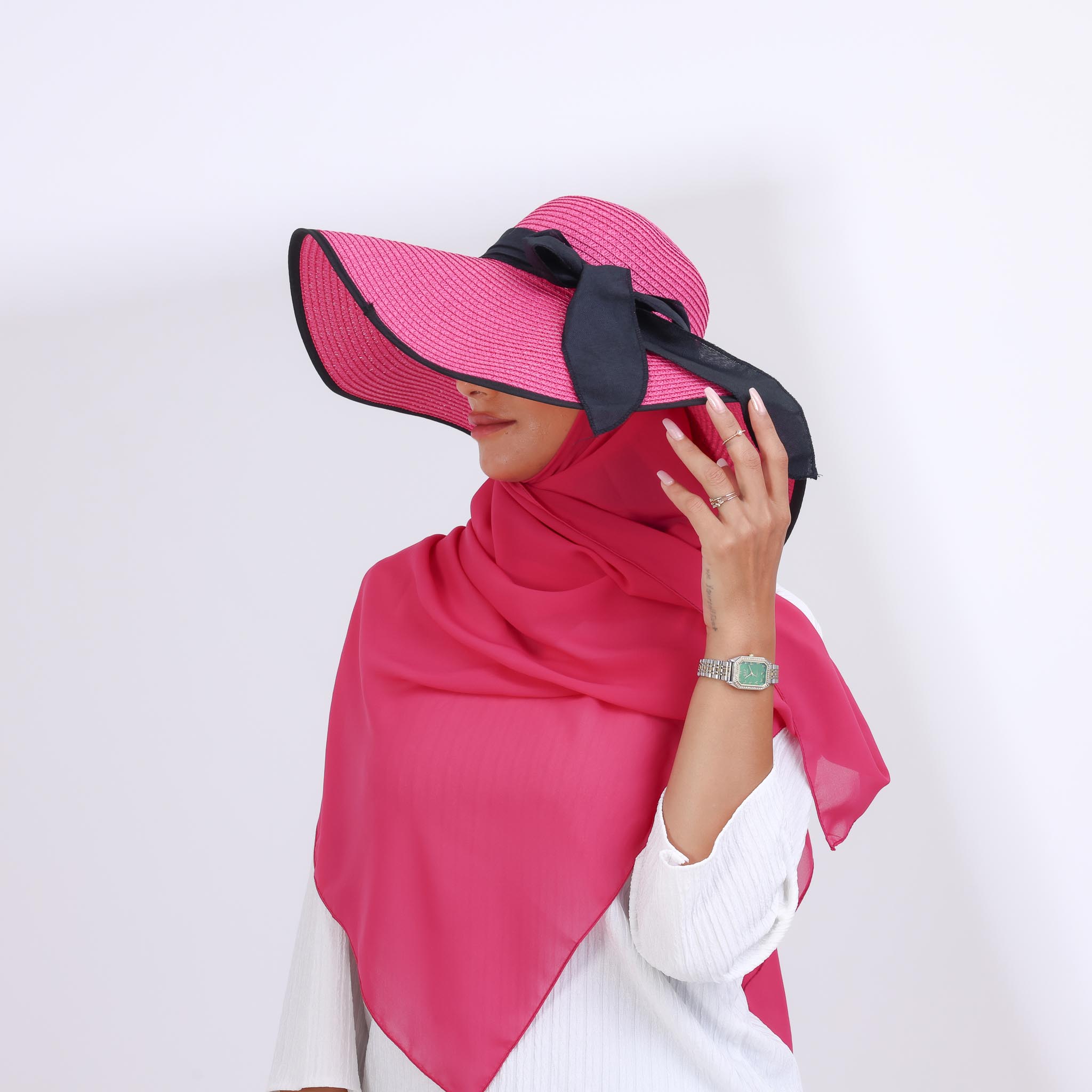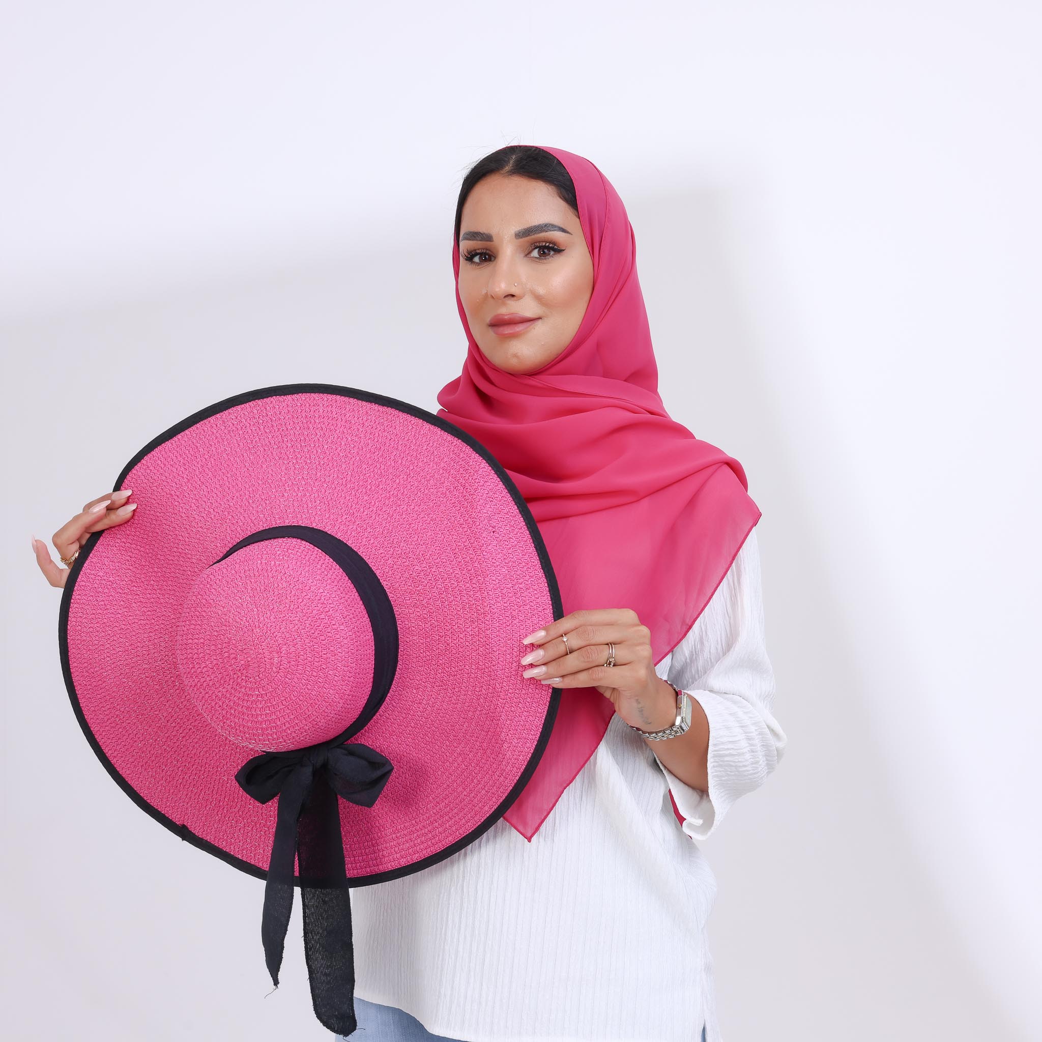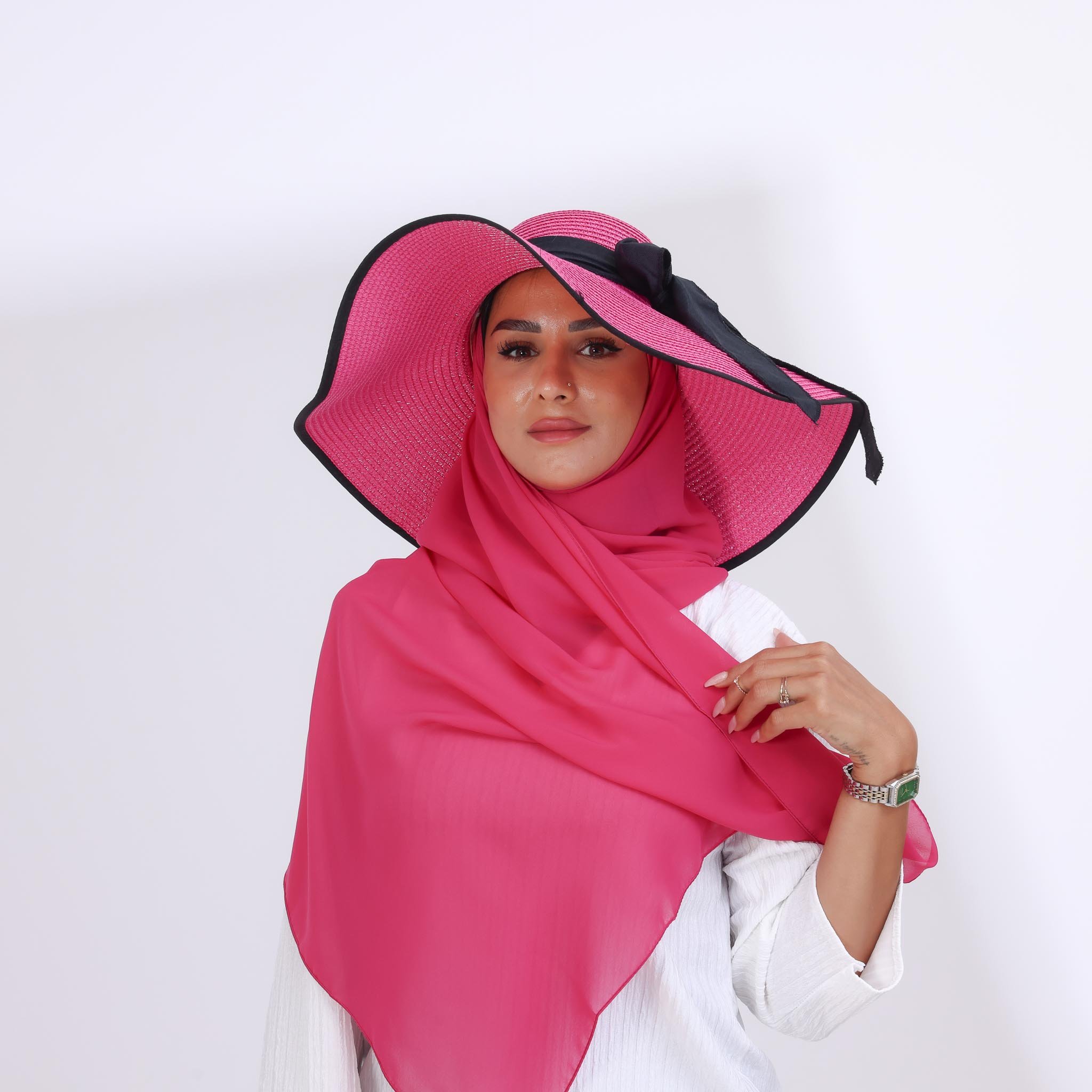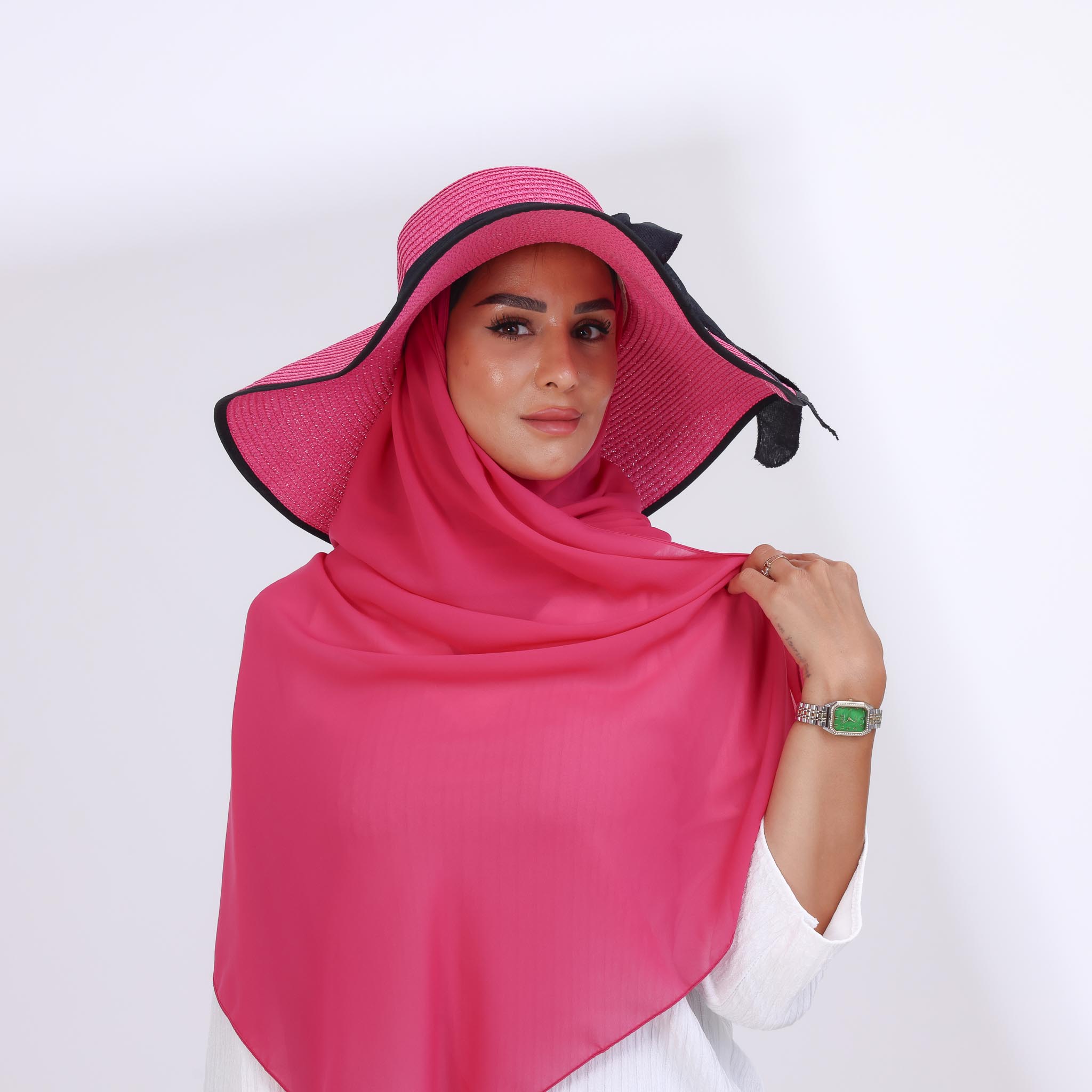 • حجاب كامل مصمم ليغطي الشعر والرقبة مصنوع من خامة شيفون صيفية بنفس لون القبعة.