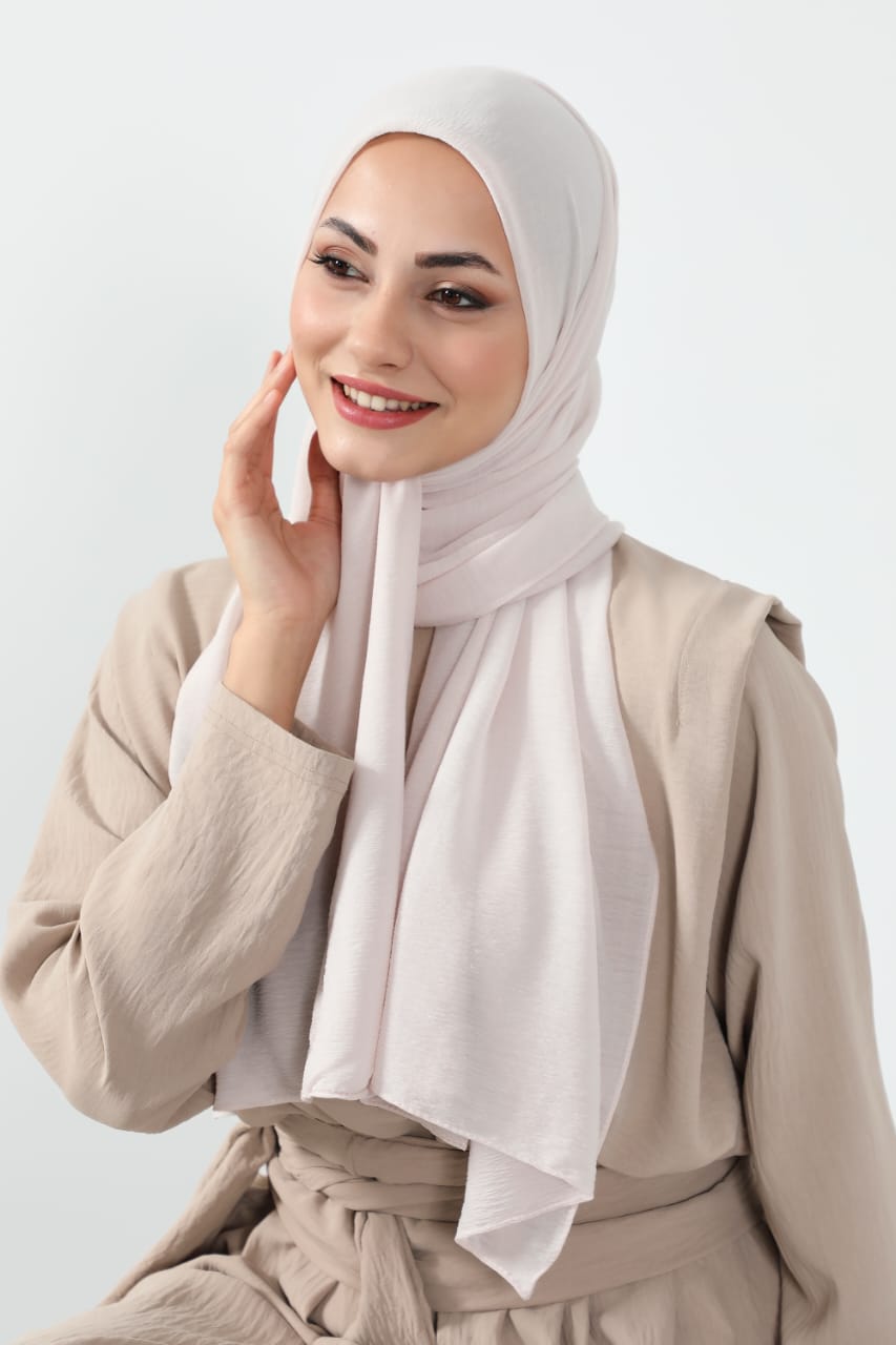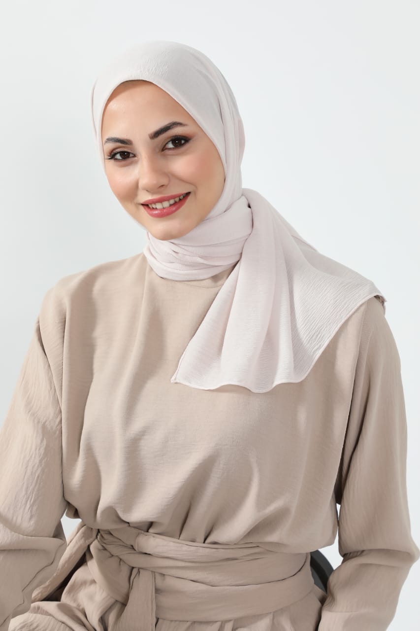 طرحة كرنشي بخامة خفيفة ومميزة، تجمع بين نعومة الشيفون وثبات يدوم لساعات دون حاجة للتعديل! خيار مثالي لإطلالة أنثوية ومرتبة في جميع الأوقات.