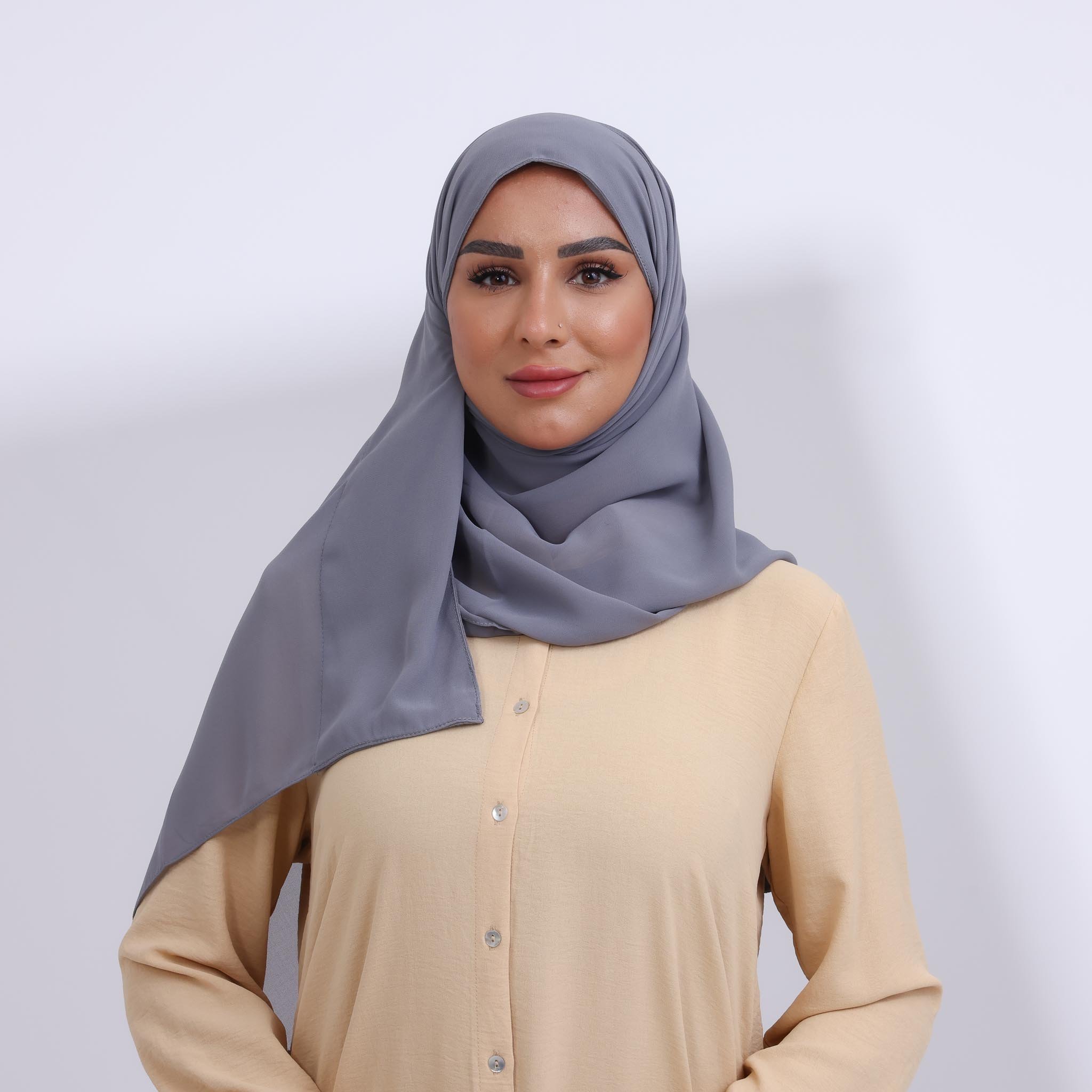 مبطن رمادي طرحة ميني شيفون ربع مبطن من الأمام
