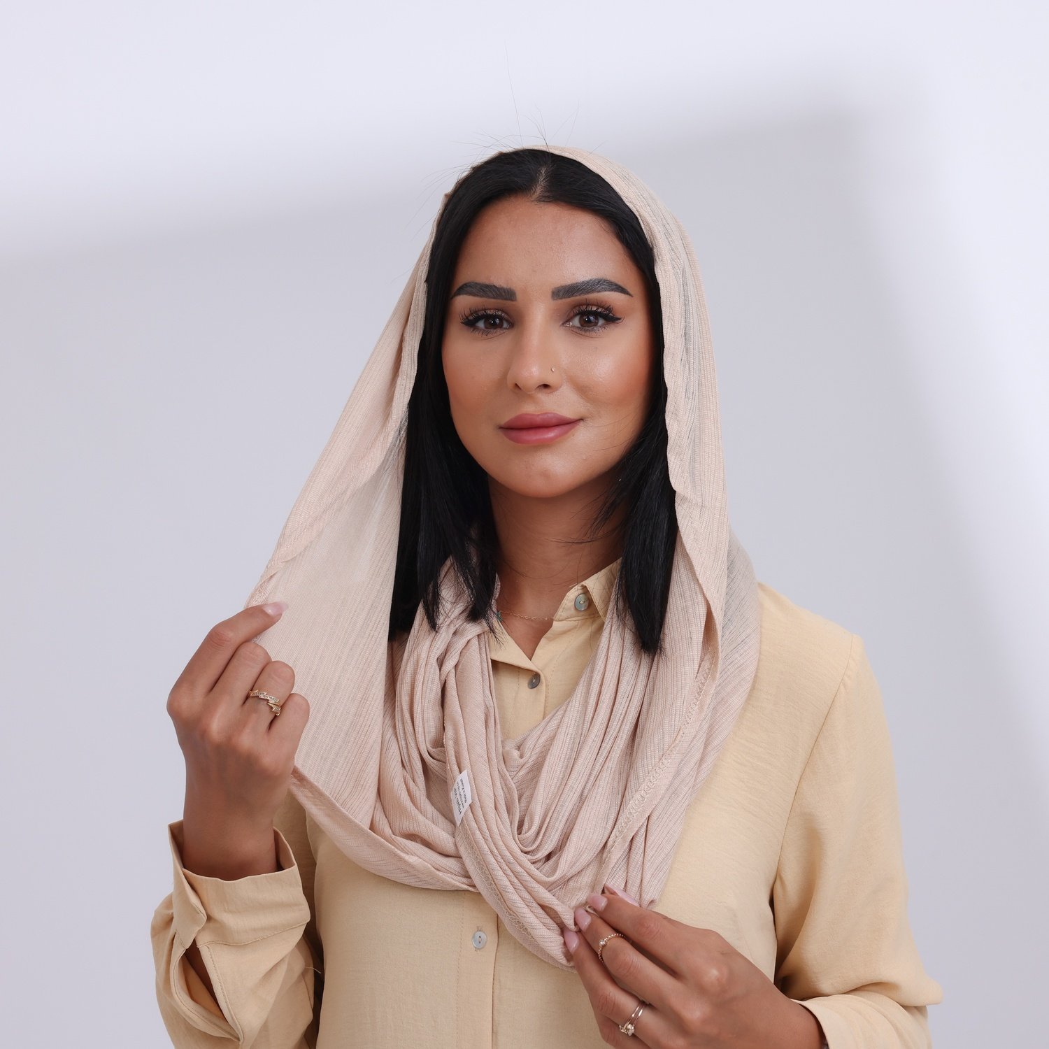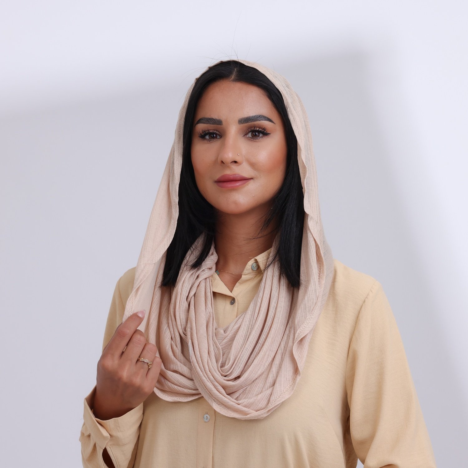 يمكنك ارتداء القطعتين معًا لإطلالة متكاملة أو الاكتفاء بالوشاح لإطلالة خفيفة وسريعة.