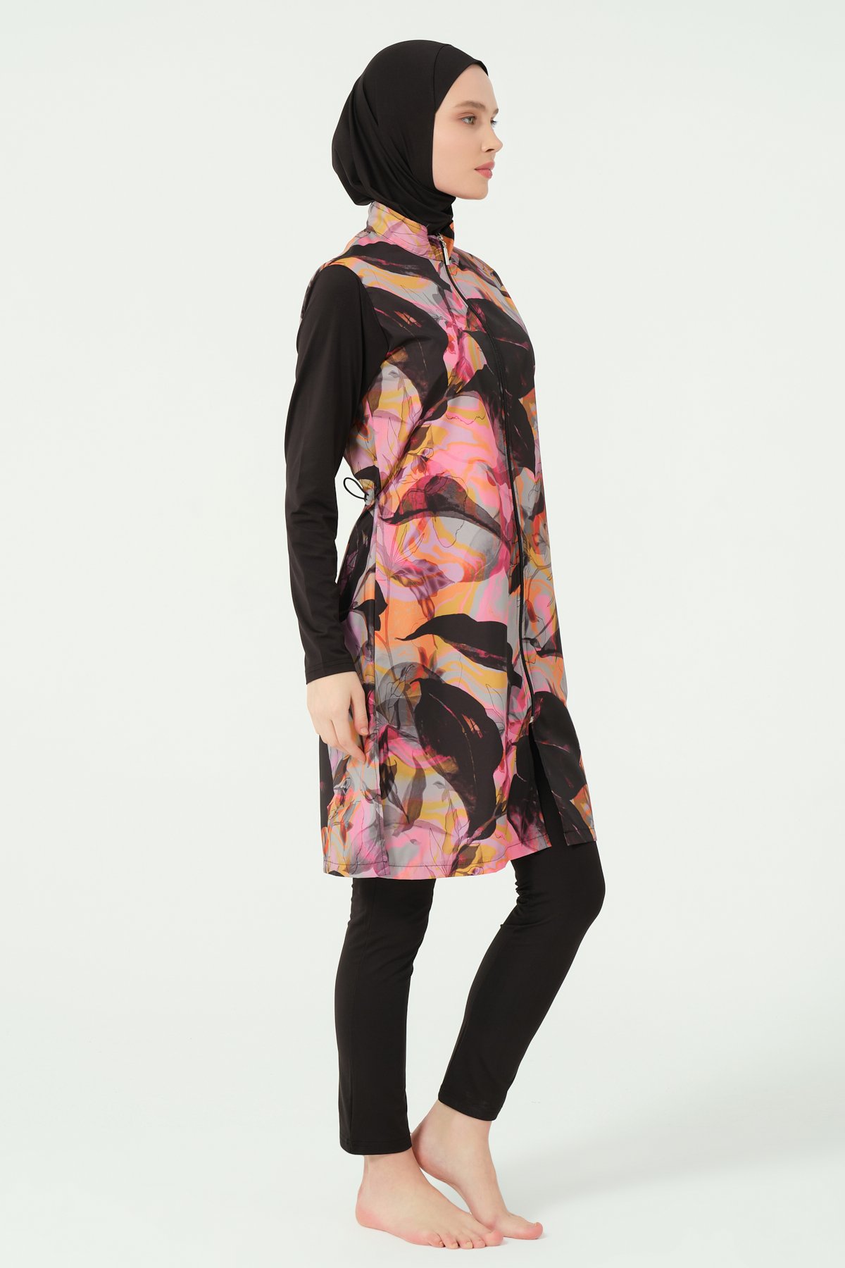 طقم سباحة أنيق ومحتشم بتصميم مستوحى من الـنسيم الخفيف، ليمنحك إحساسًا بالراحة والنعومة مع كل حركة.