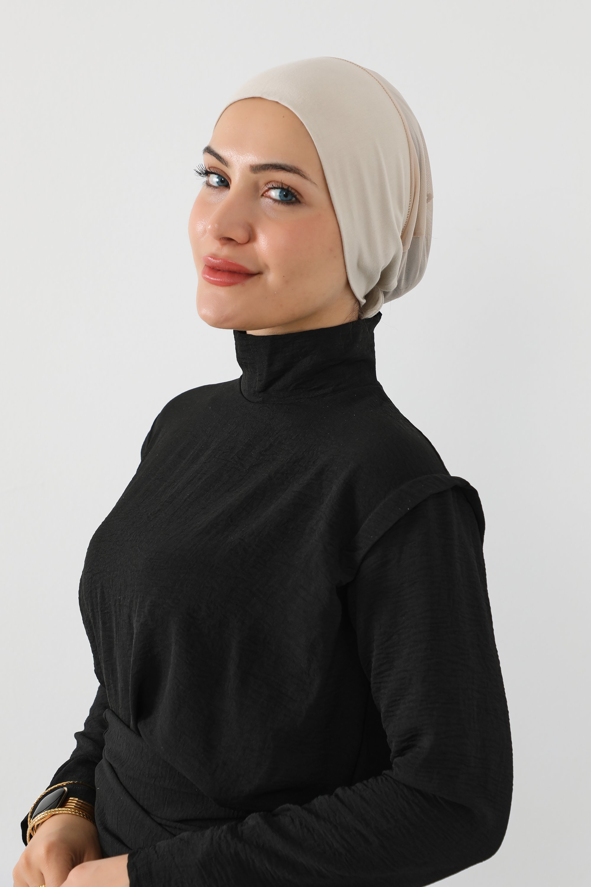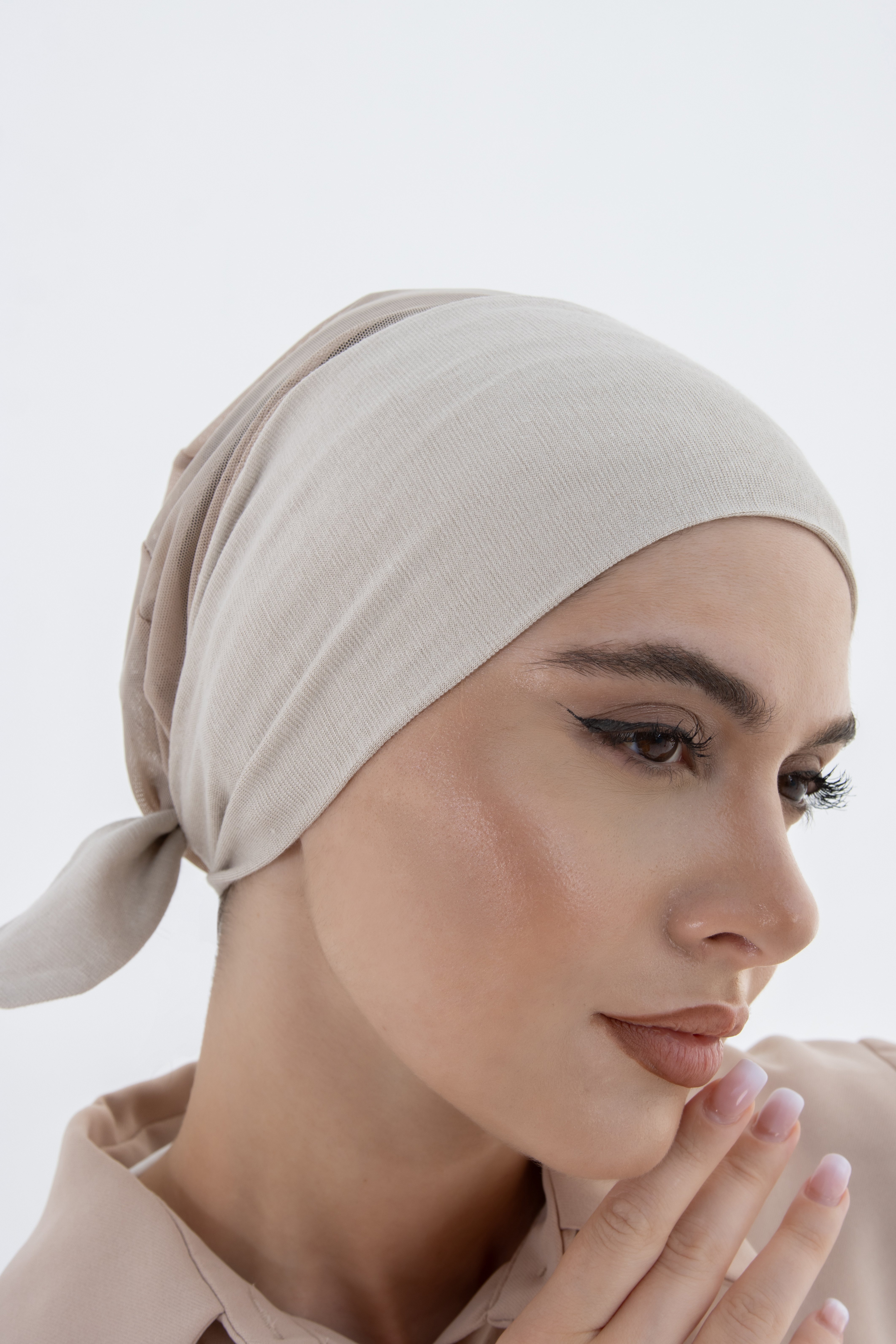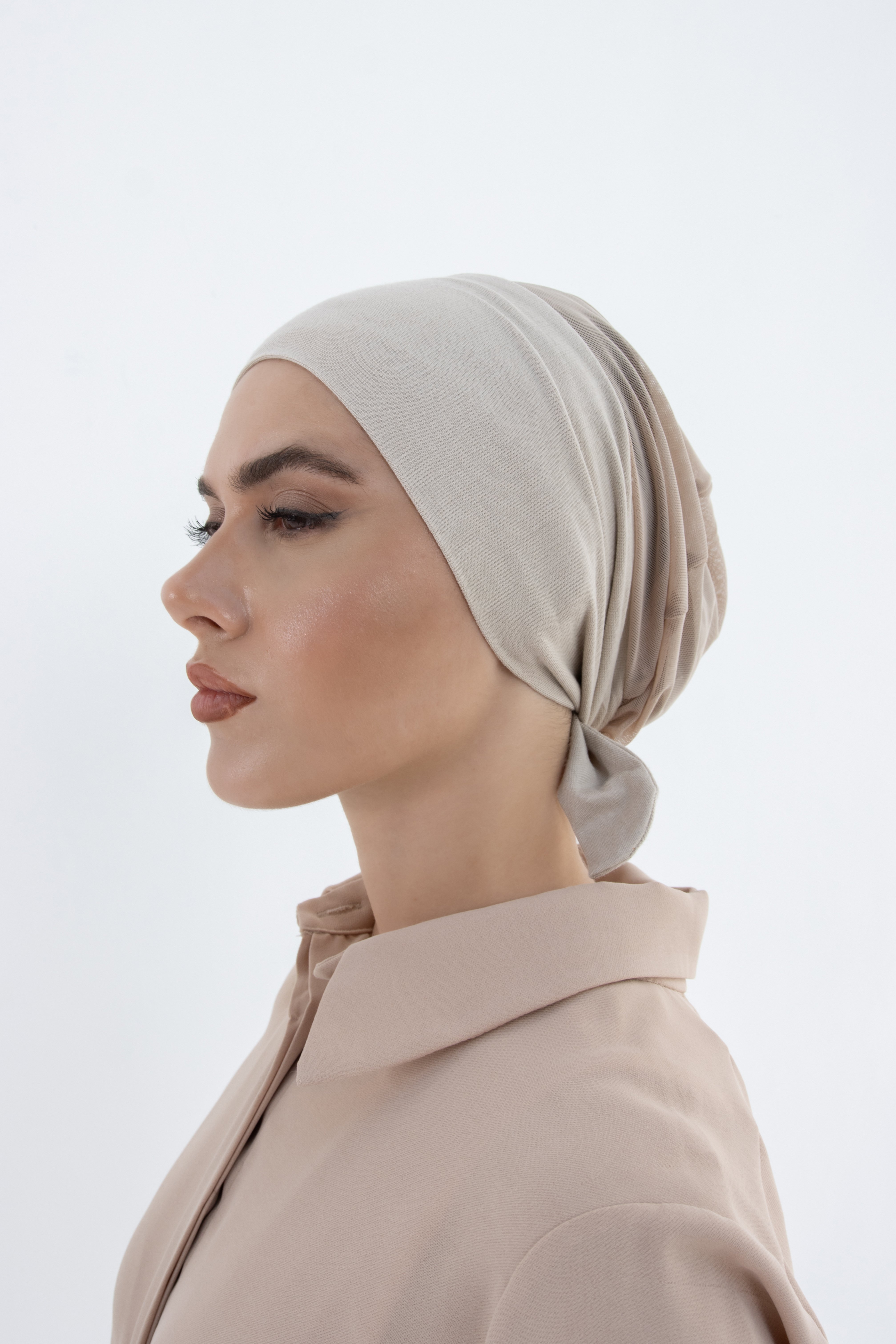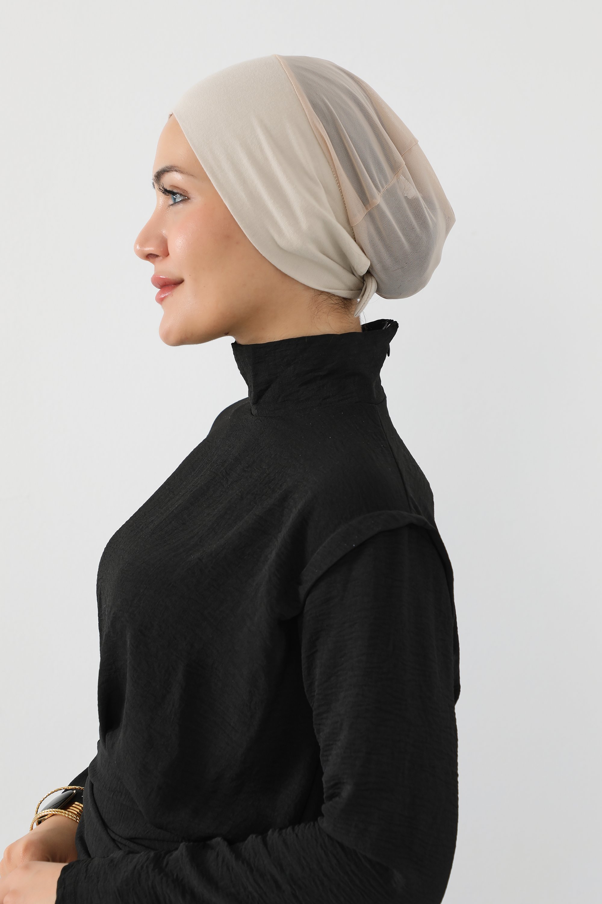 قبعة تحت الحجاب شفافة من الخلف - بيج