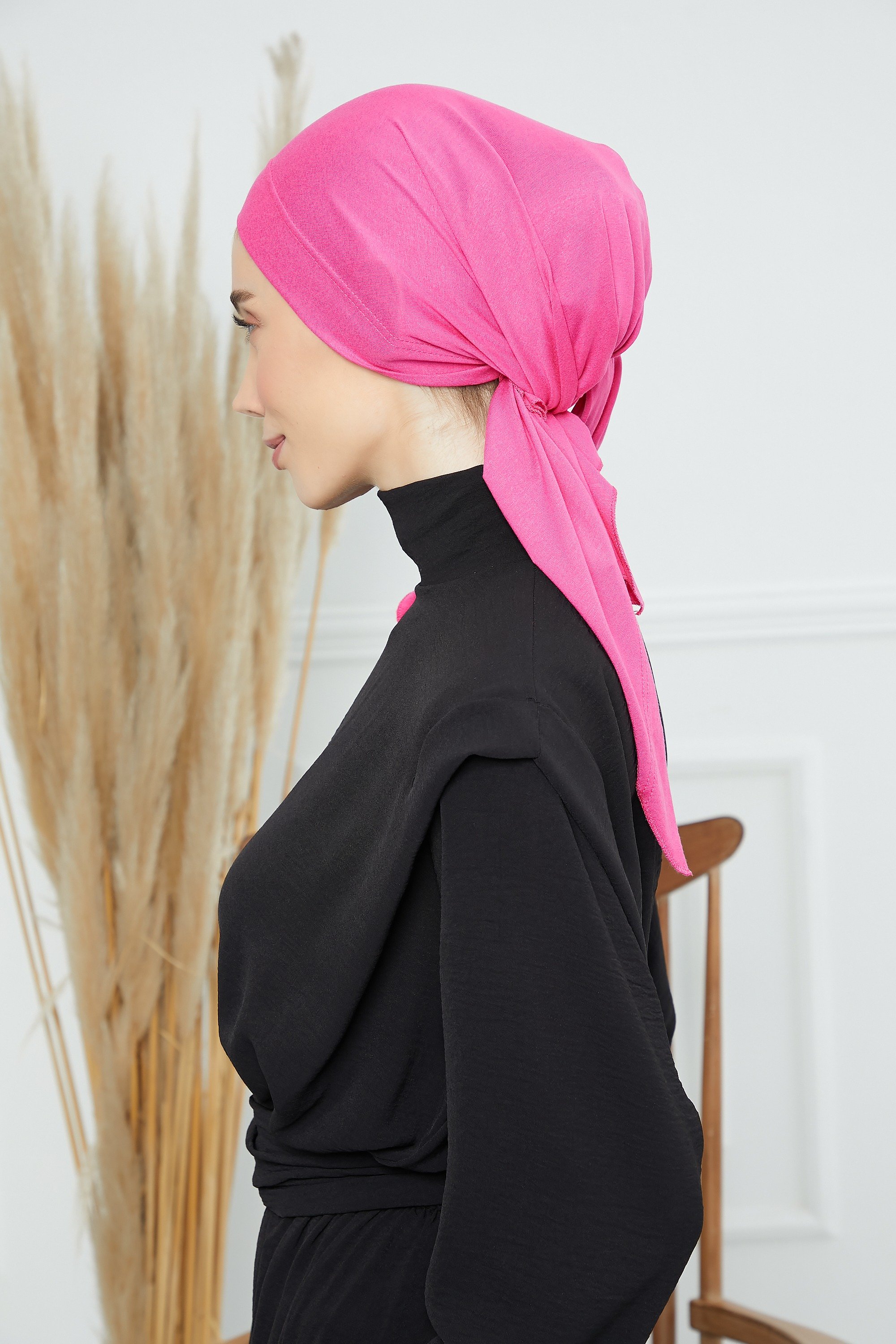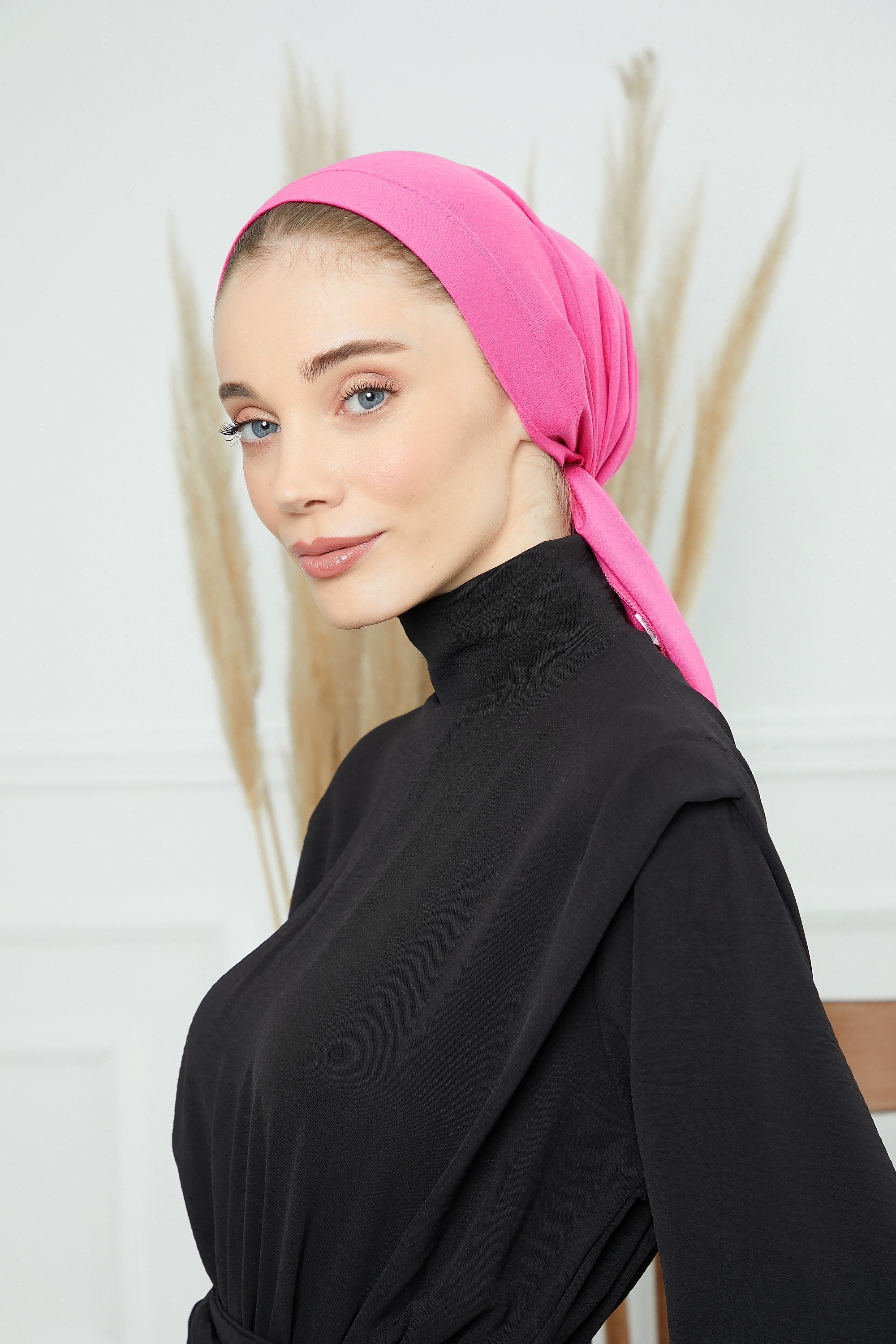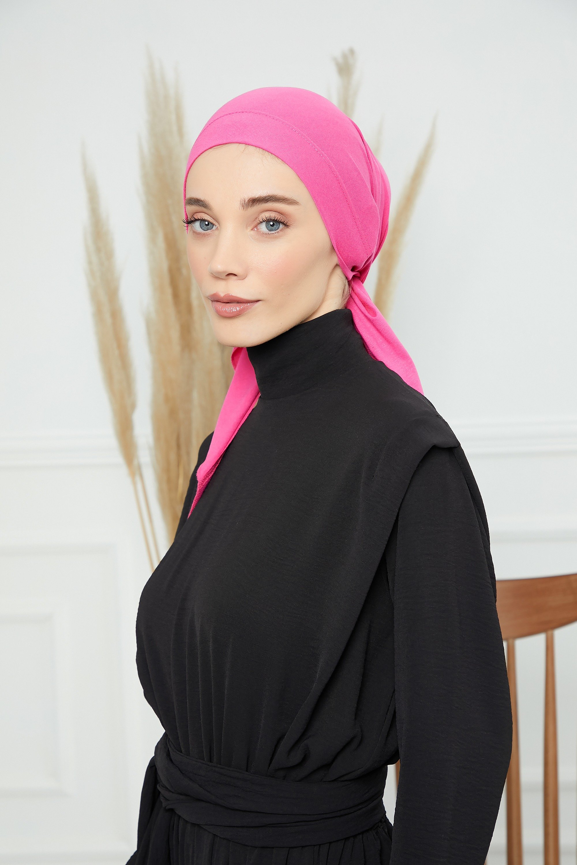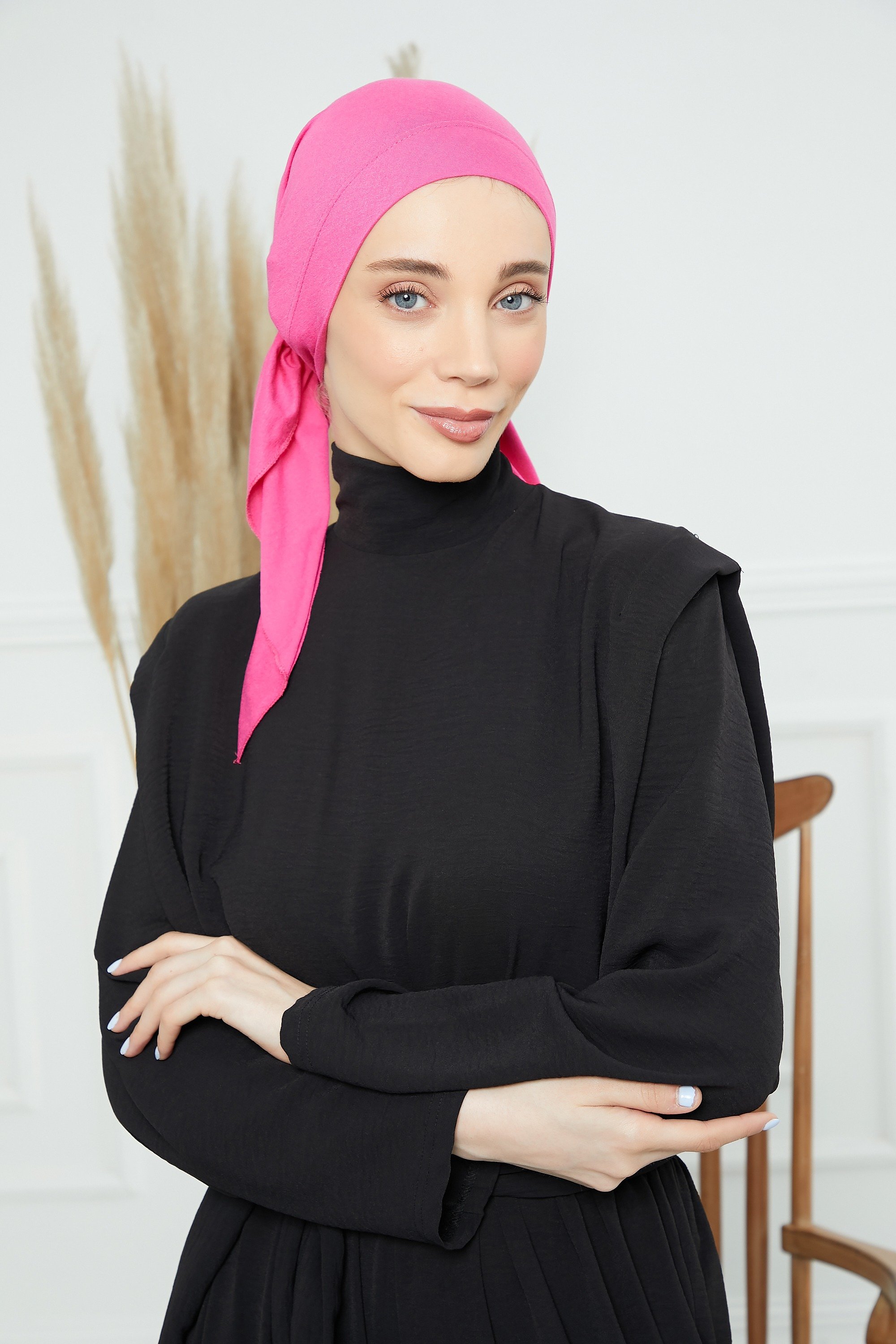 The Fuchsia Cotton Turban Tie Back is a stunning fashion piece for every woman who wants to add a touch of elegance to her everyday look. The Fuchsia Cotton Turban Tie Back is the perfect choice for the modern woman who is looking for comfort and elegance at the same time. Don't hesitate to adopt it as an elegant addition to your hijab color collection.