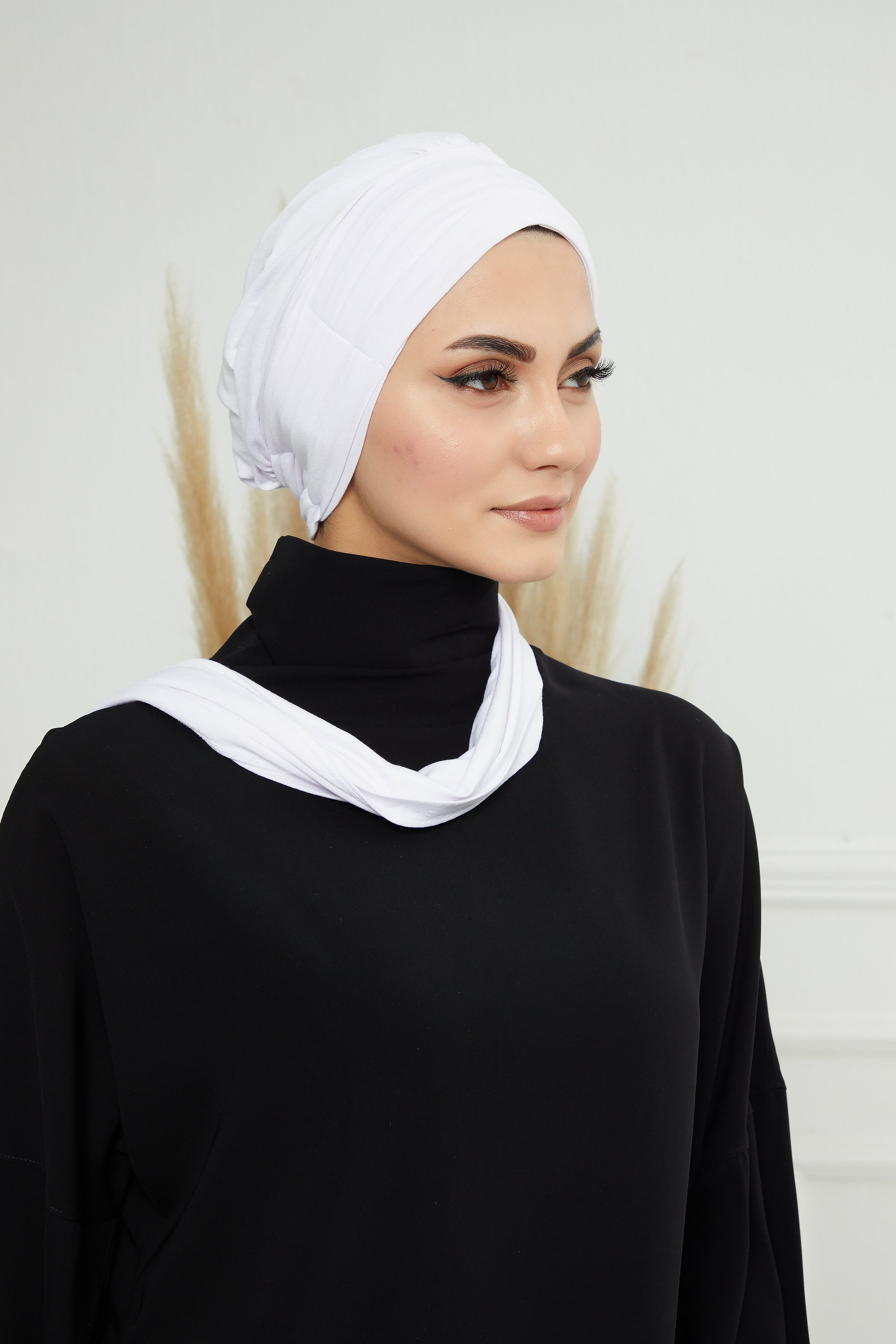 A very practical cotton turban with a long piece that allows you to wrap it around your hair. A modern and elegant model