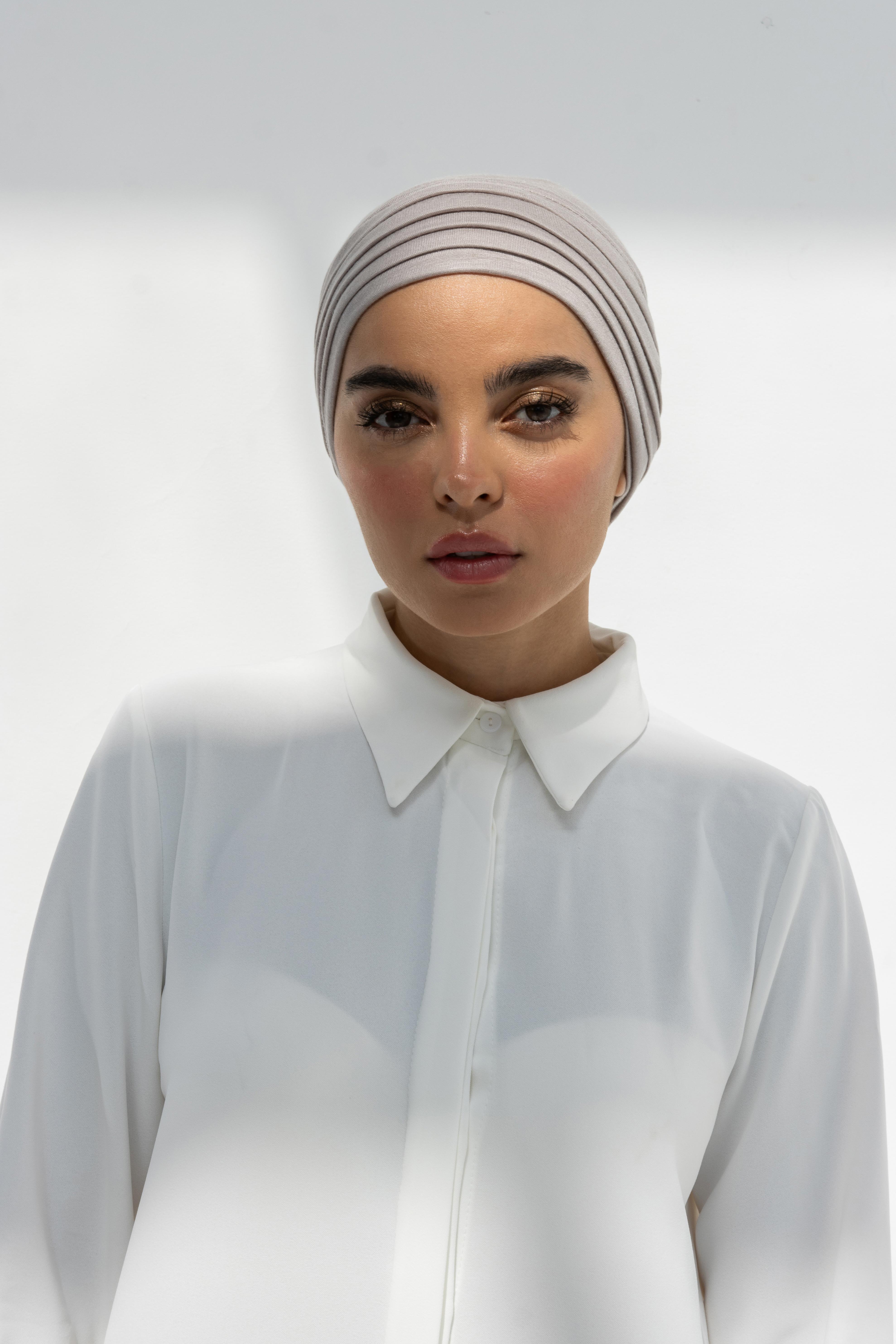 • هذه التوربان المكونة من قطعتين مصنوعة من خامة دبل سترتش فاخرة، مما يمنحها مظهرًا غنيًا وفاخرًا.