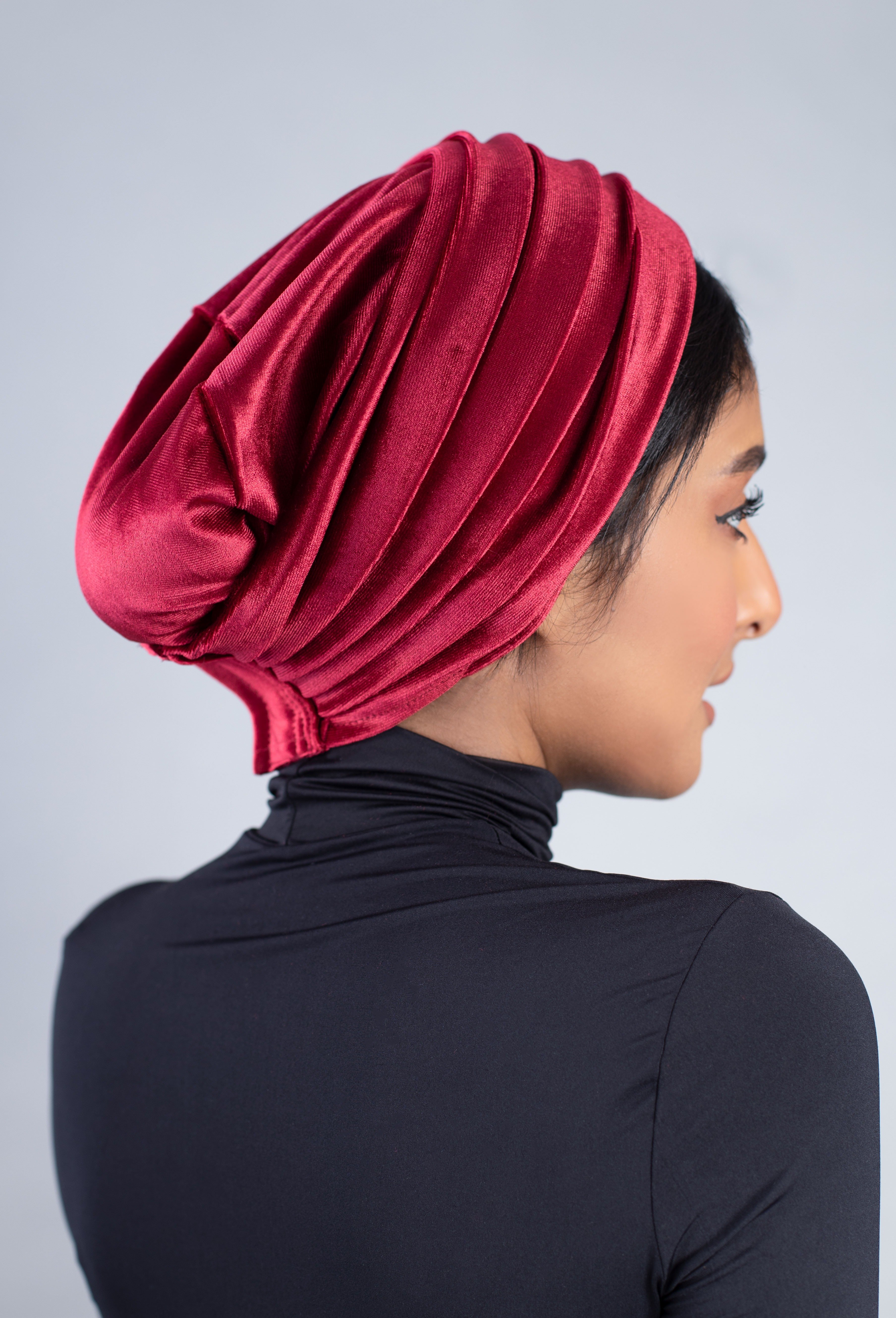 This two-piece turban is made of high-quality burgundy velvet, which makes it luxurious and comfortable to wear, the soft fabric makes it perfect for all occasions, while the adjustable headband ensures a perfect fit, the two pieces are designed So they are placed on top of each other for extra texture.