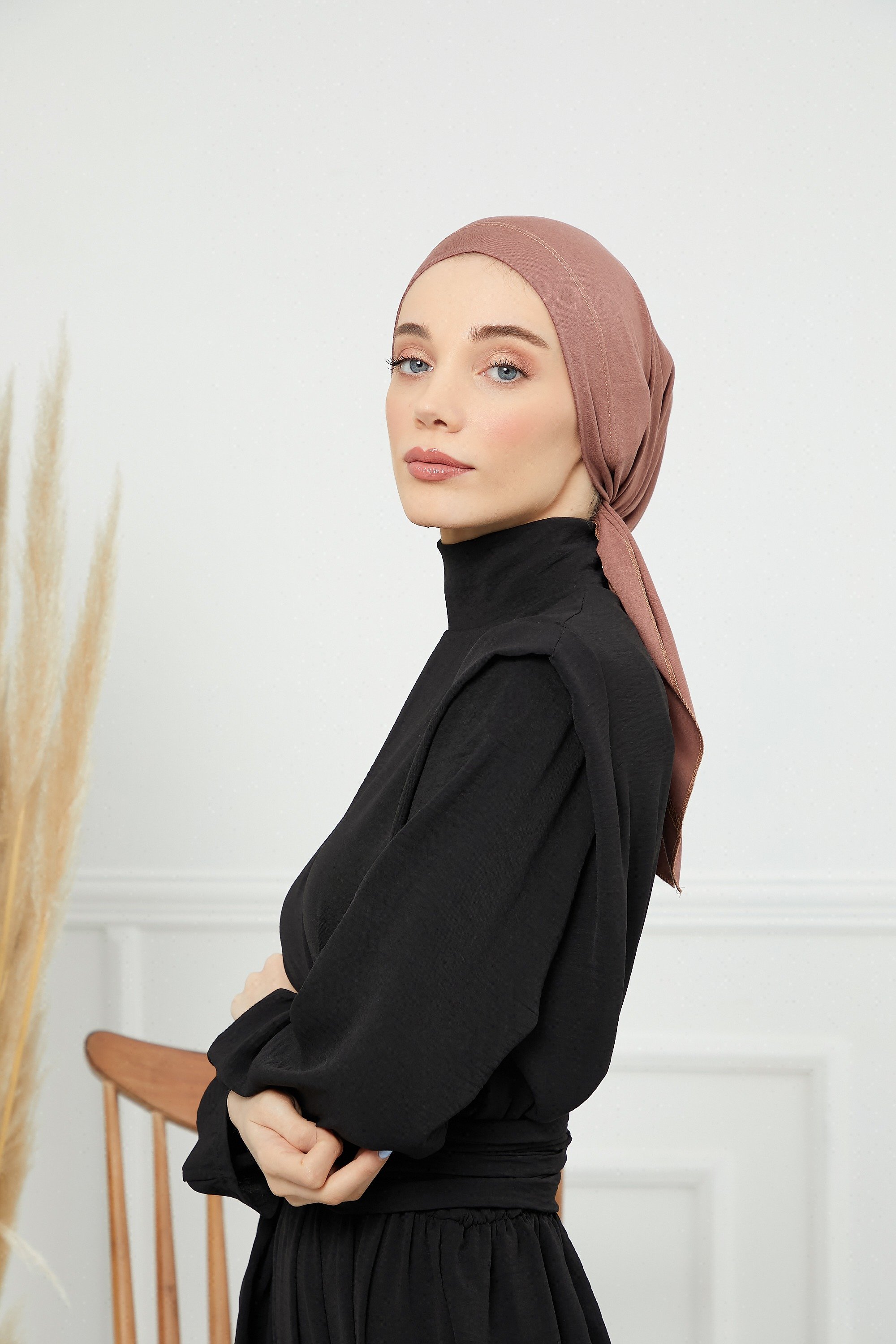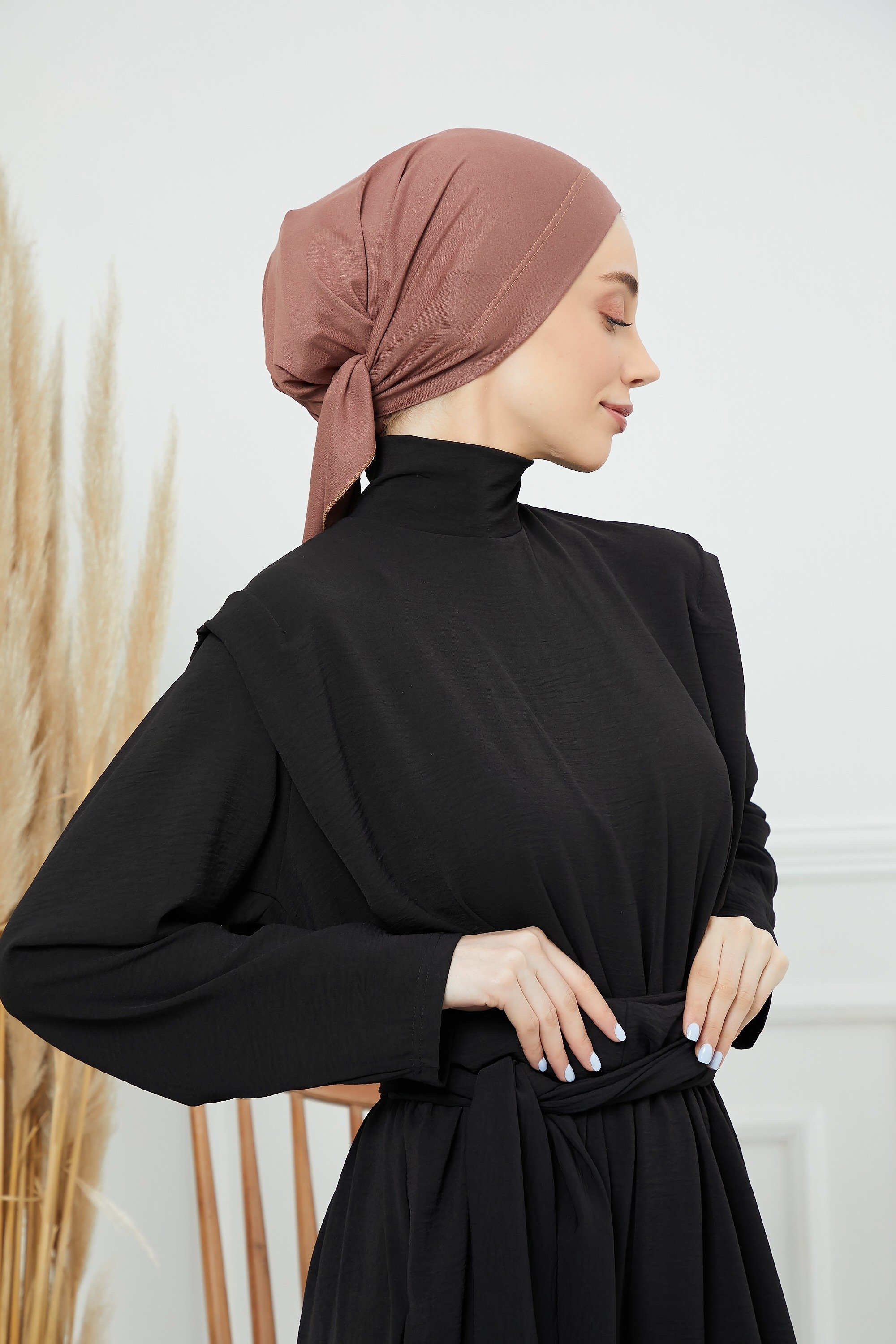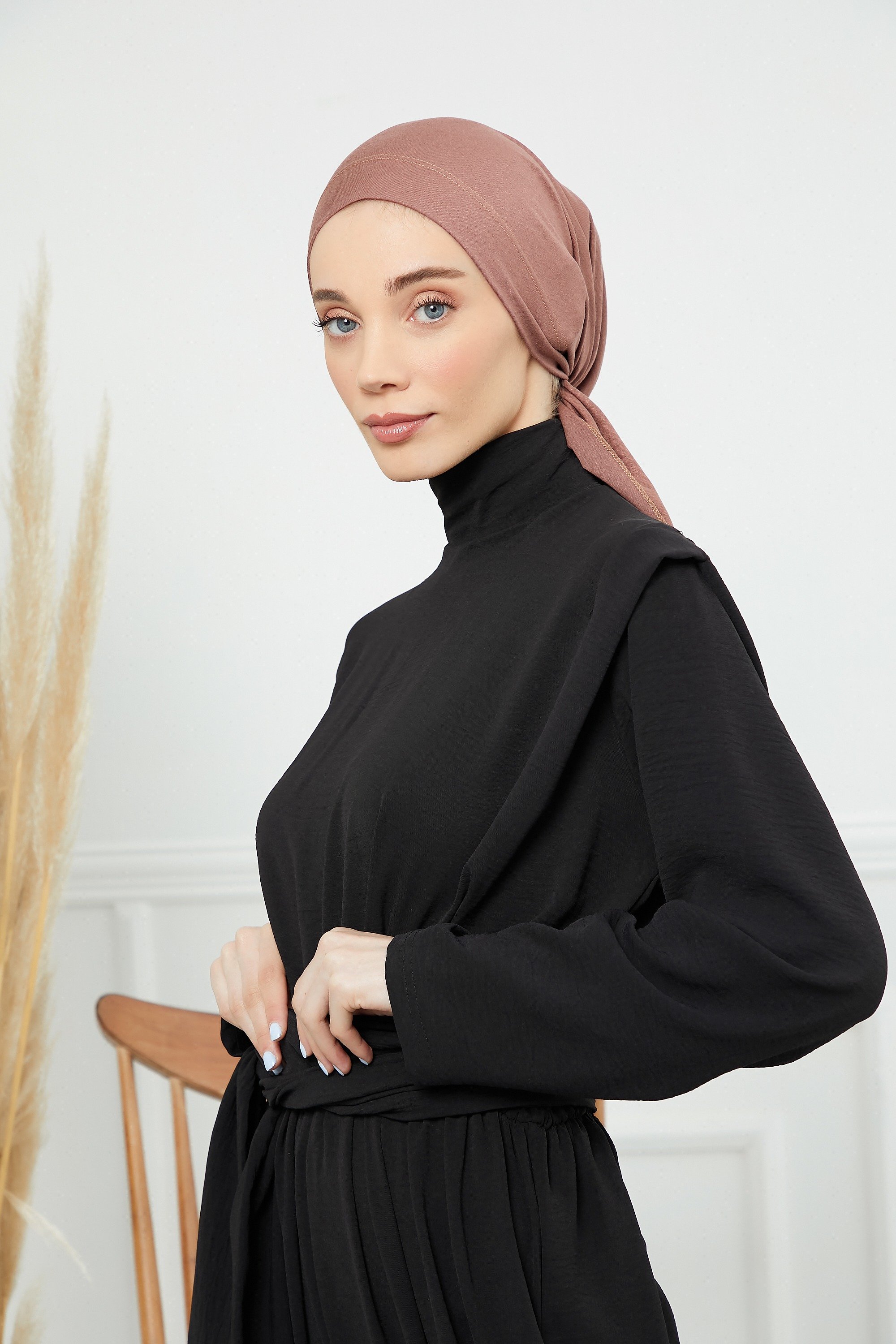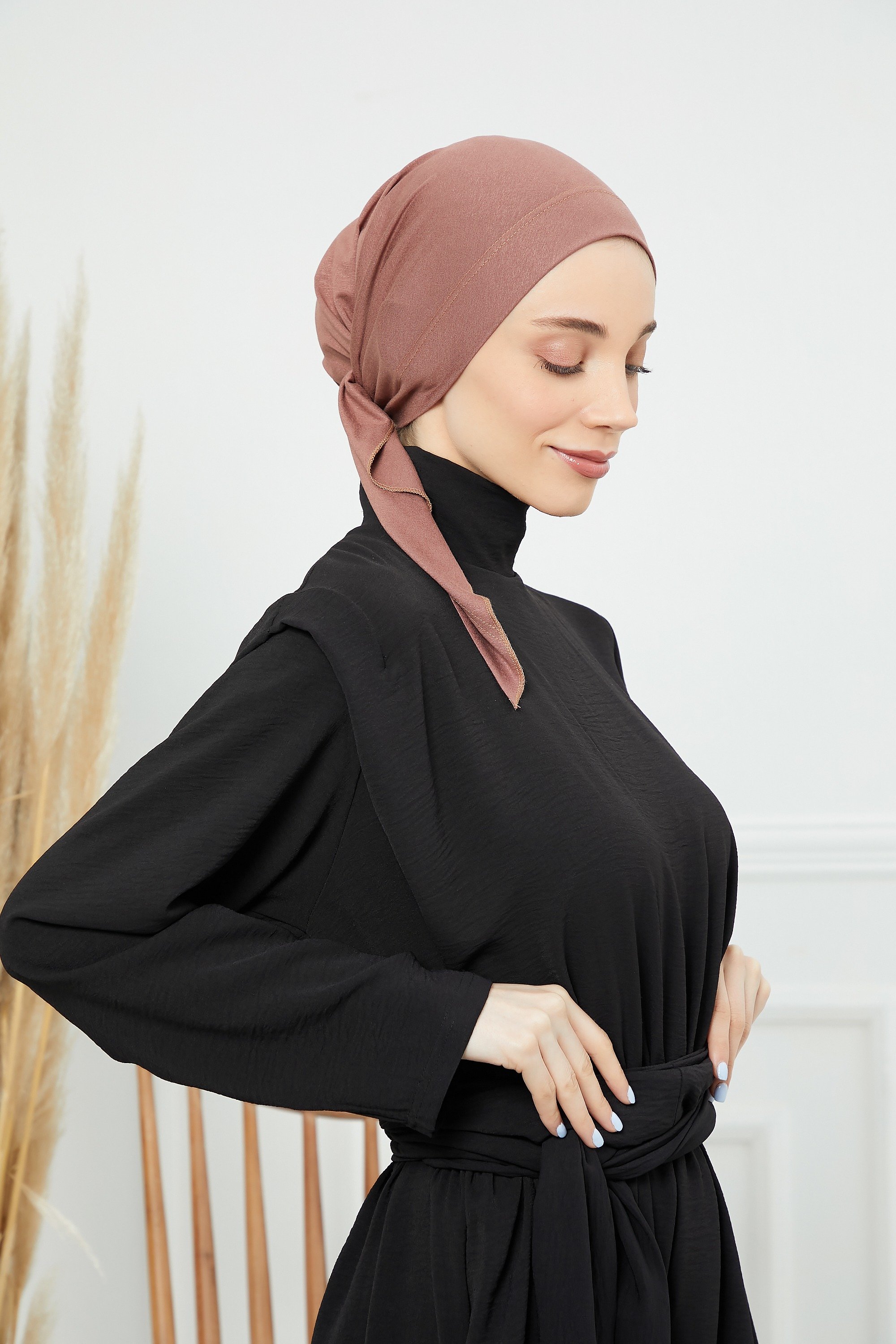 Cotton Turban- back tie | red brown