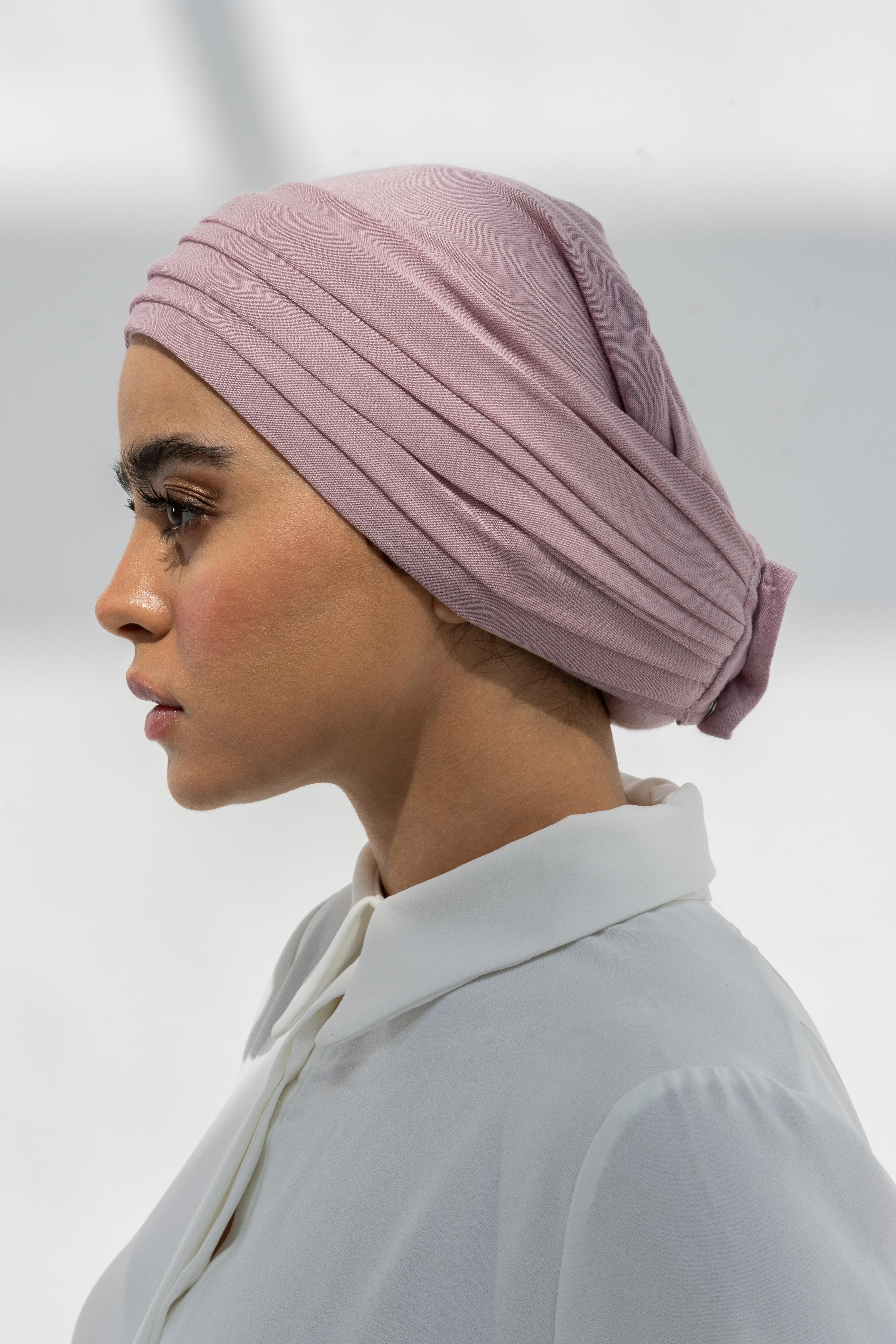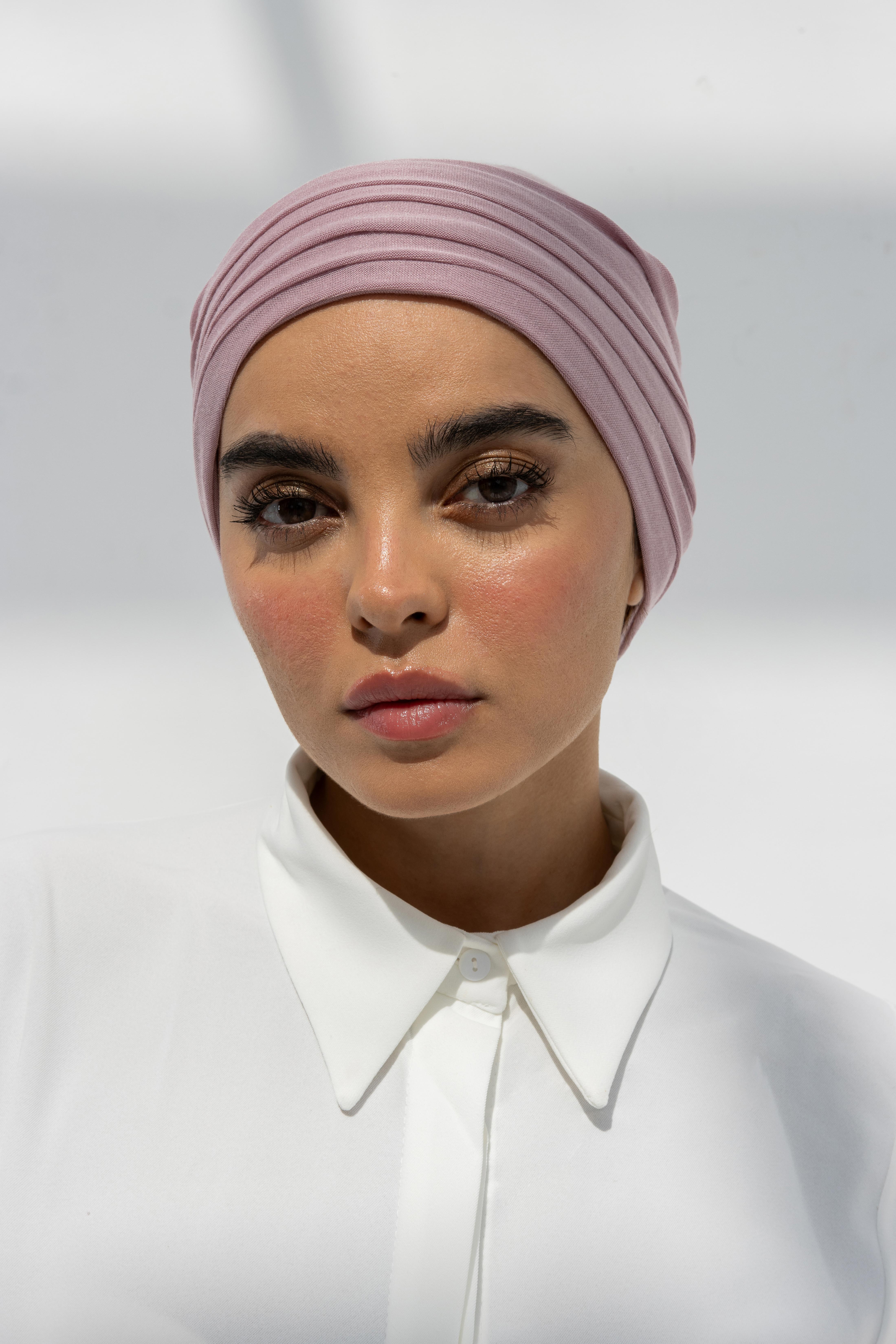 • هذه التوربان المكونة من قطعتين مصنوعة من خامة دبل سترتش فاخرة، مما يمنحها مظهرًا آسرًا وفاخرًا.