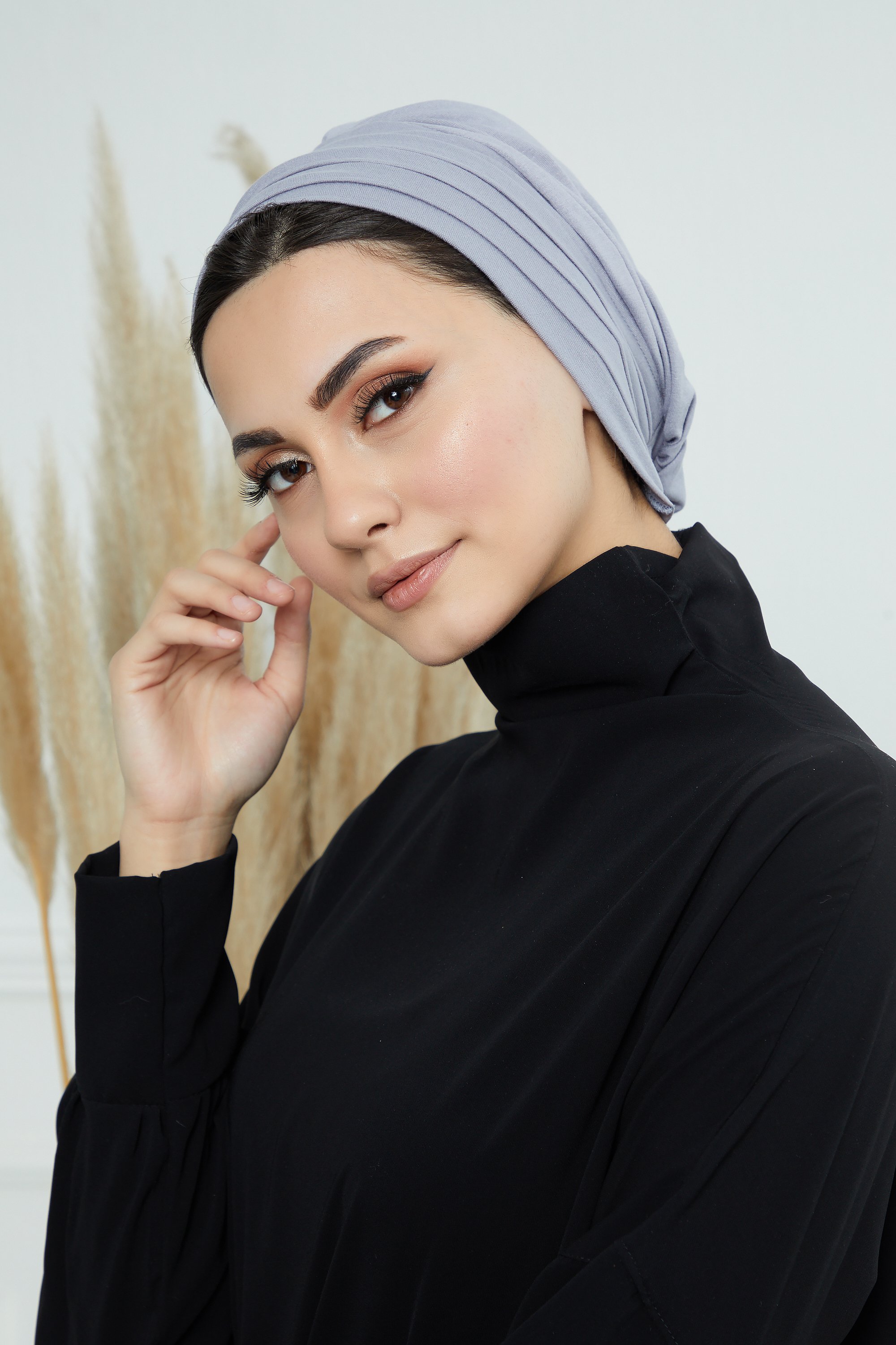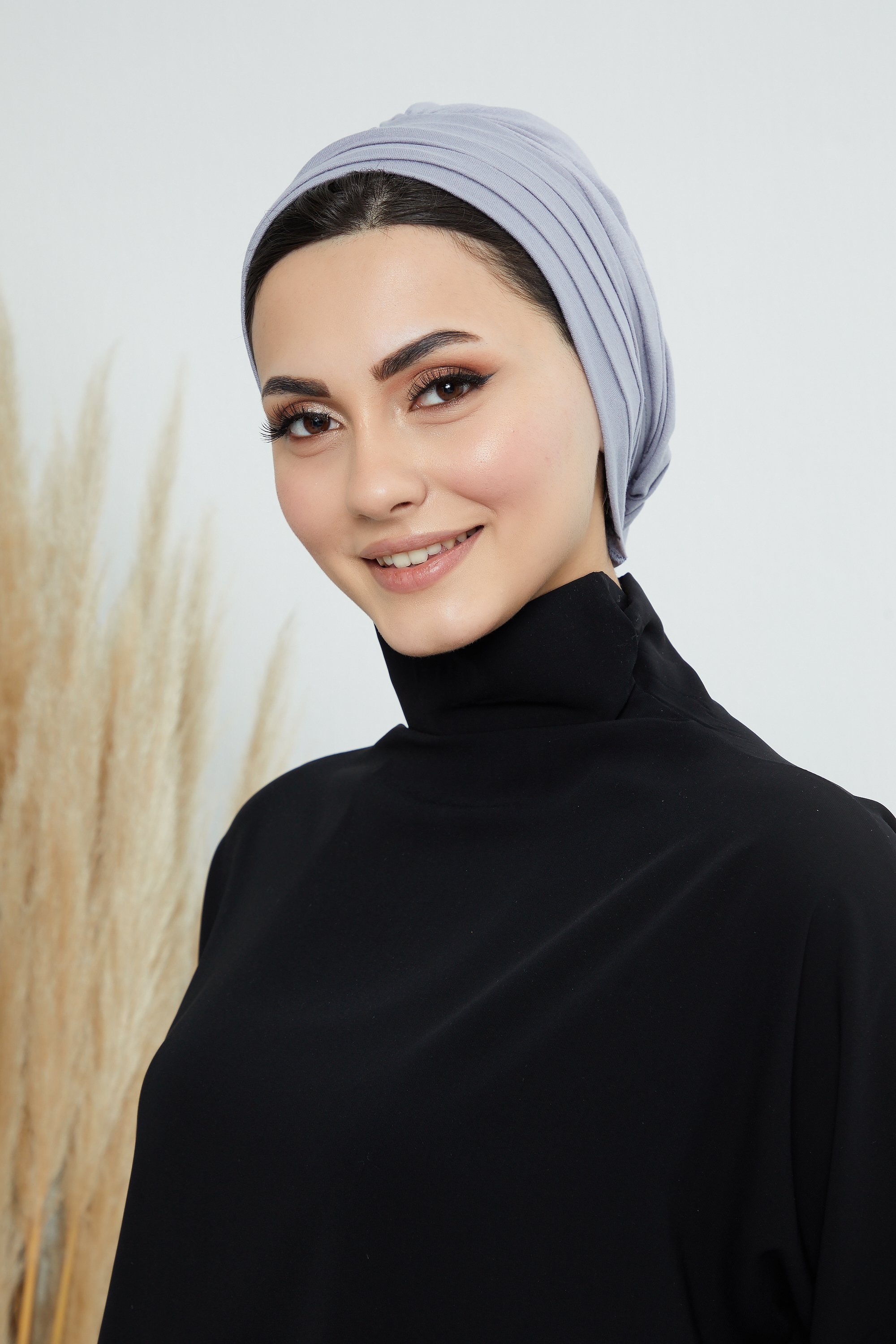 • A cotton turban with pleats in the front designed to cover hair no matter how thick it is. Designed from comfortable cotton material that does not cause headaches and absorbs sweat.