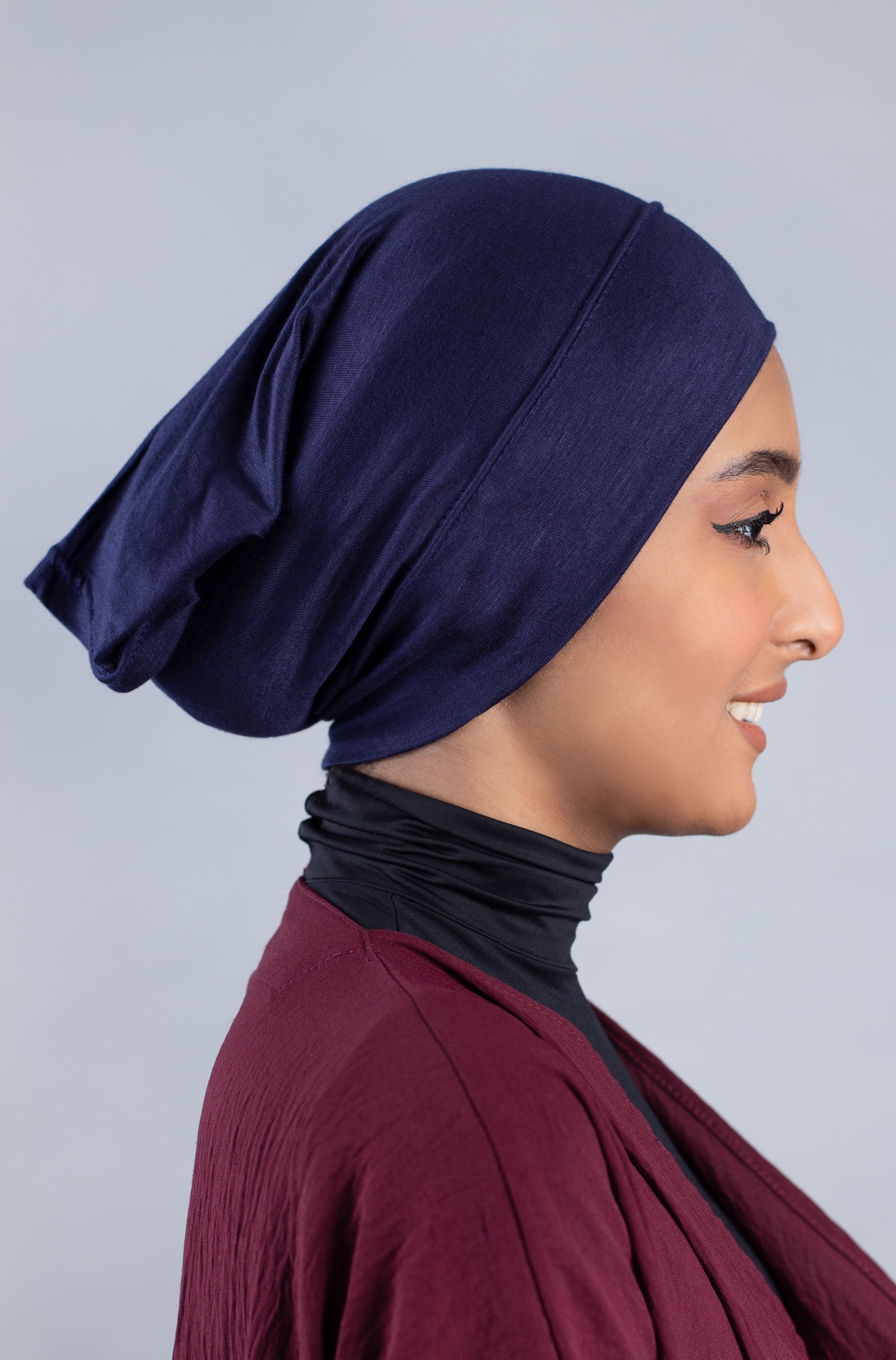 • يتكون الطقم من قبعة قطنية ثابتة وطرحة شيفون انسيابية، حيث تتغطى القبعة بالشعر بشكل كامل وتؤمن تثبيتًا فعالًا للطرحة.