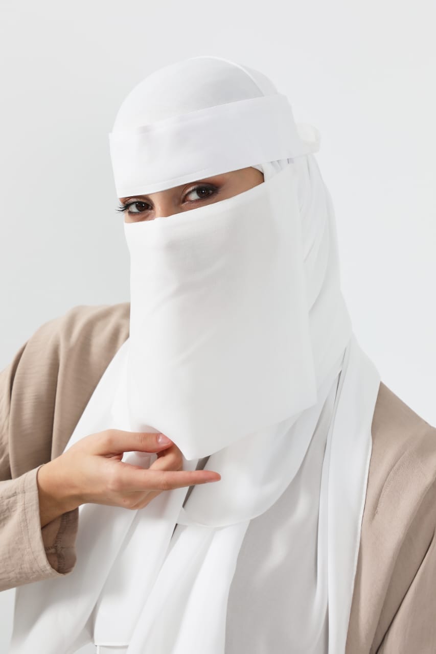 • التصميم الجذاب: يتميز طقم نقاب مع طرحة بتصميمه الجميل والأنيق الذي يلفت الأنظار. فهو مصمم بحرفية عالية ليمنحك مظهراً فريداً وأنيقاً عند ارتدائه.