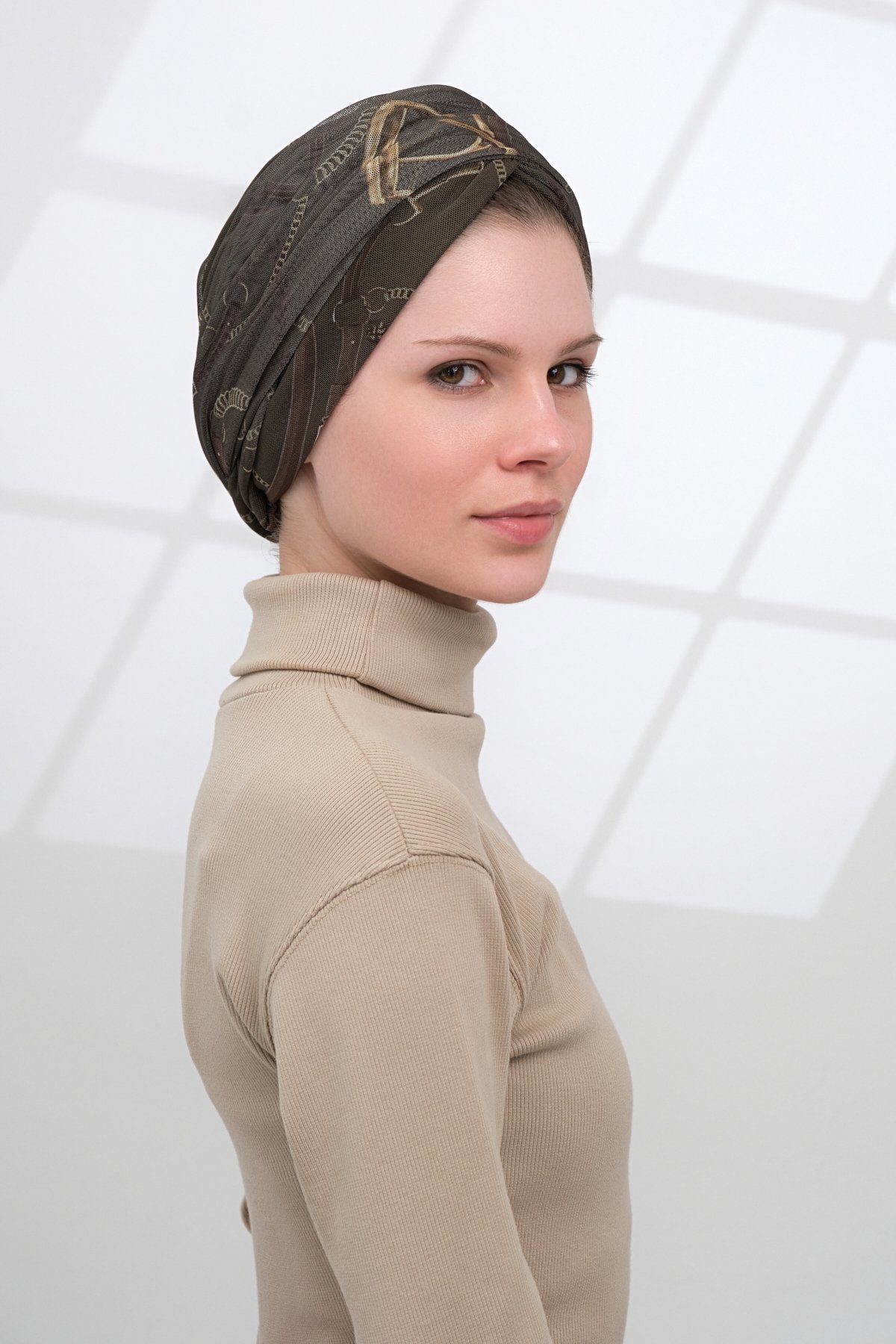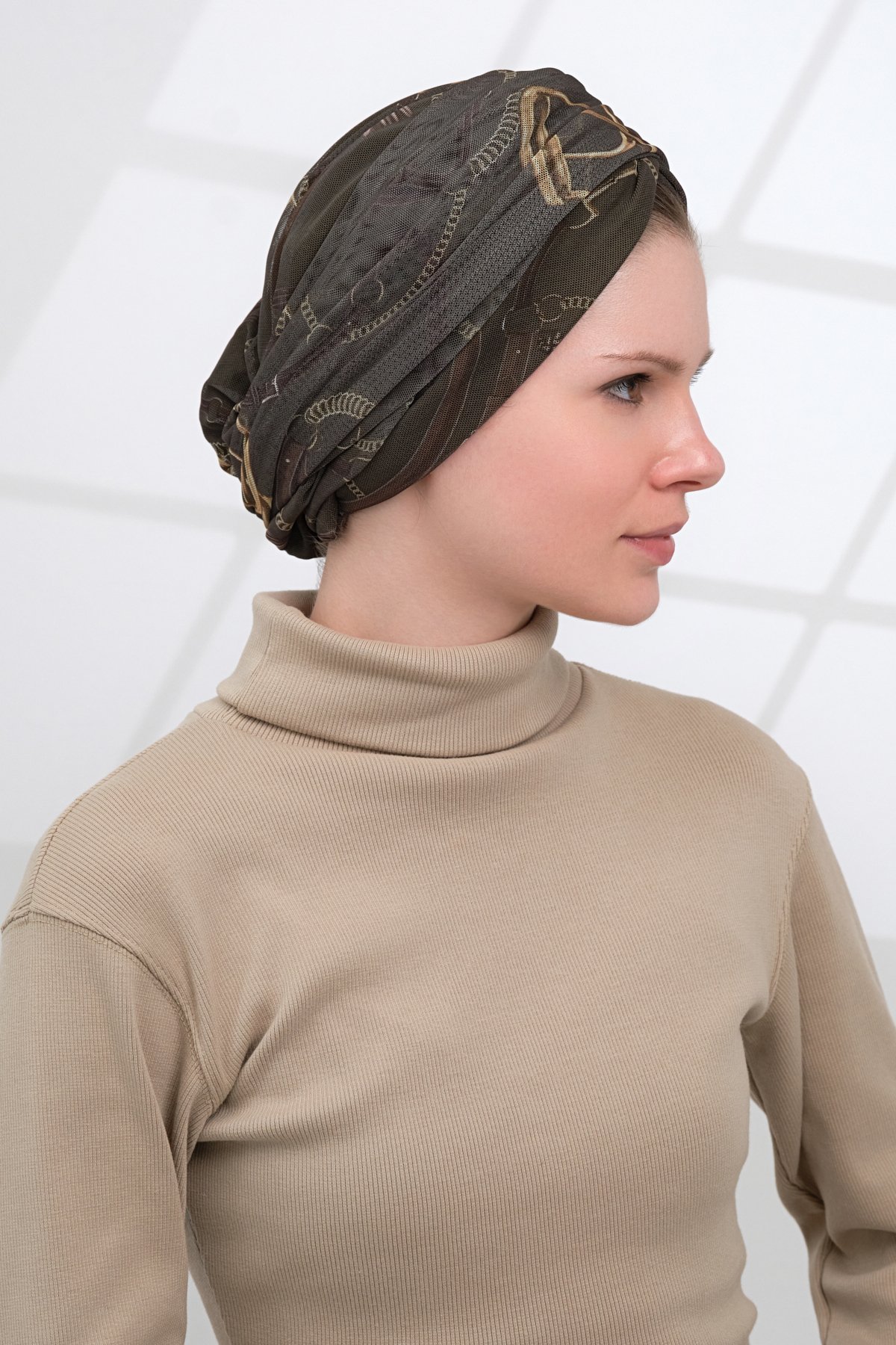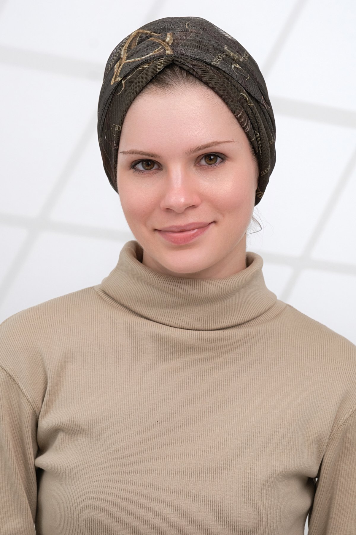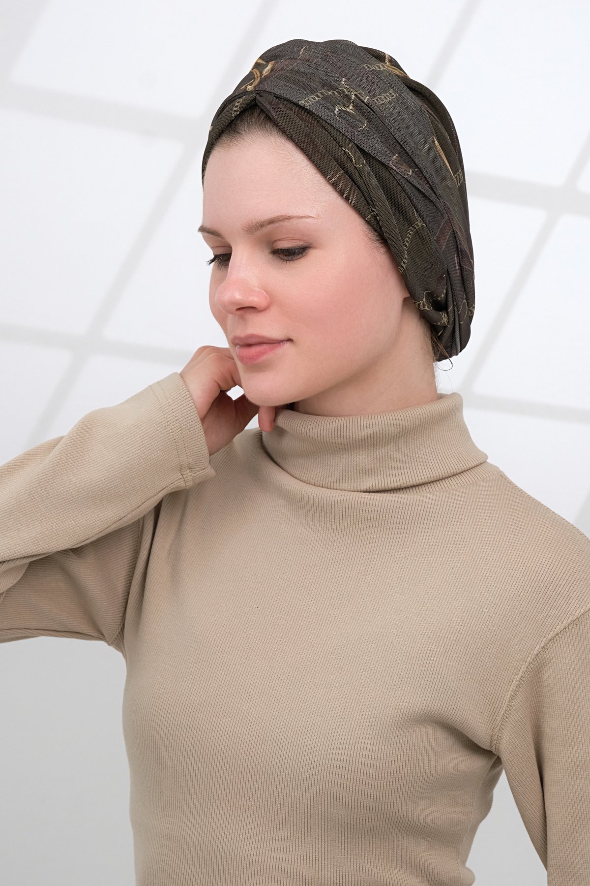 توربان جاهز مصنوع من خامة تُل بليسيه خفيفة ومريحة، مثالي لأيام الصيف الحارة بفضل خفته ونعومته على الرأس.