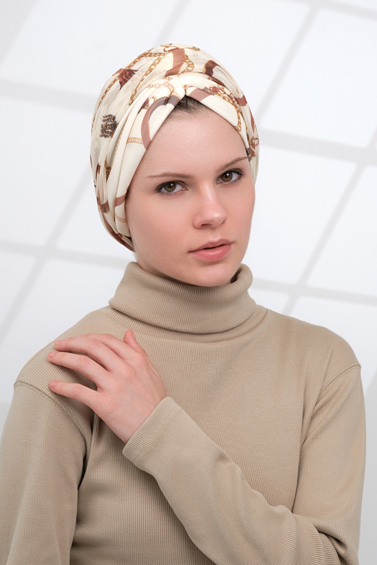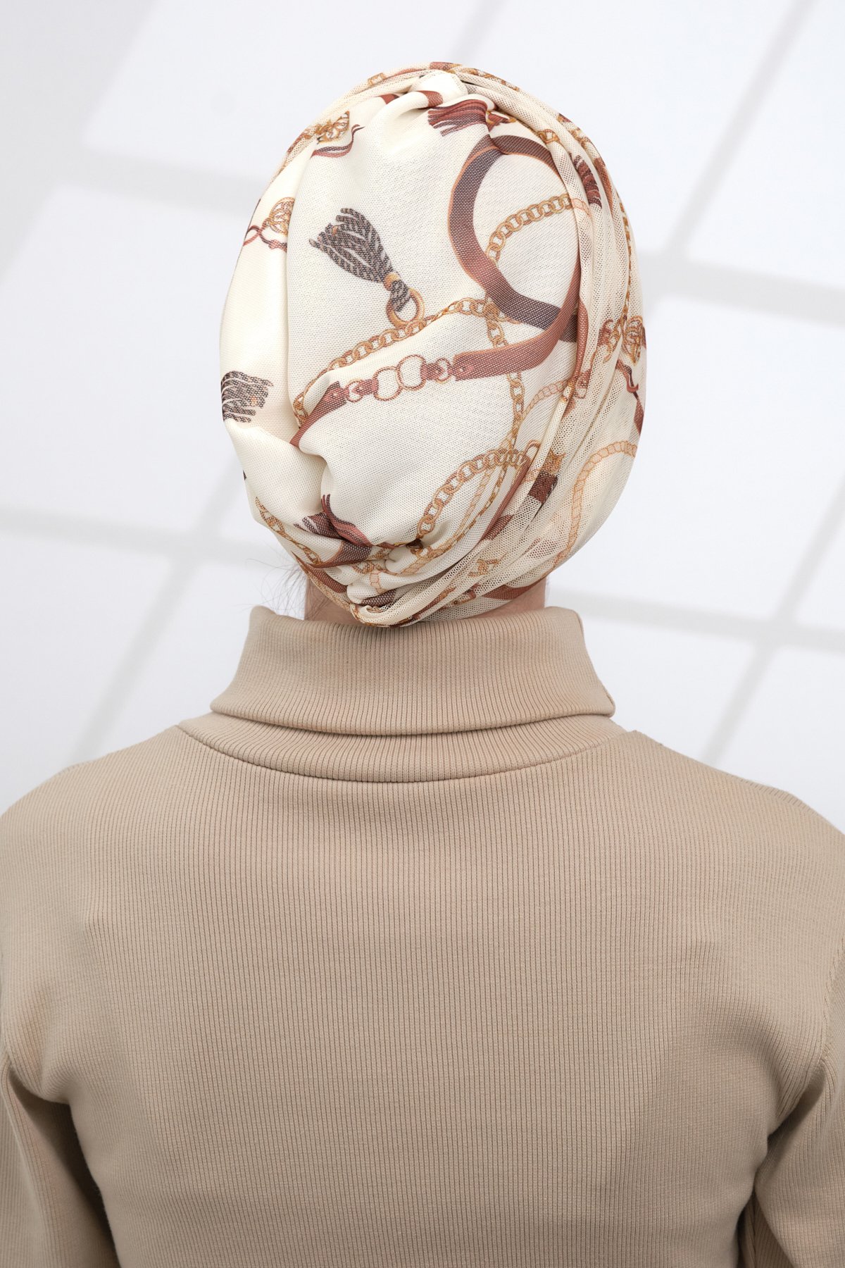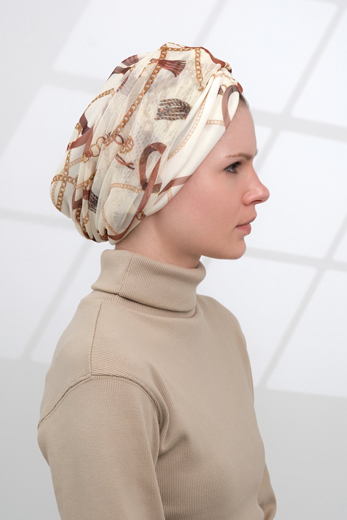 توربان جاهز مصنوع من خامة تُل بليسيه خفيفة ومريحة، مثالي لأيام الصيف الحارة بفضل خفته ونعومته على الرأس.