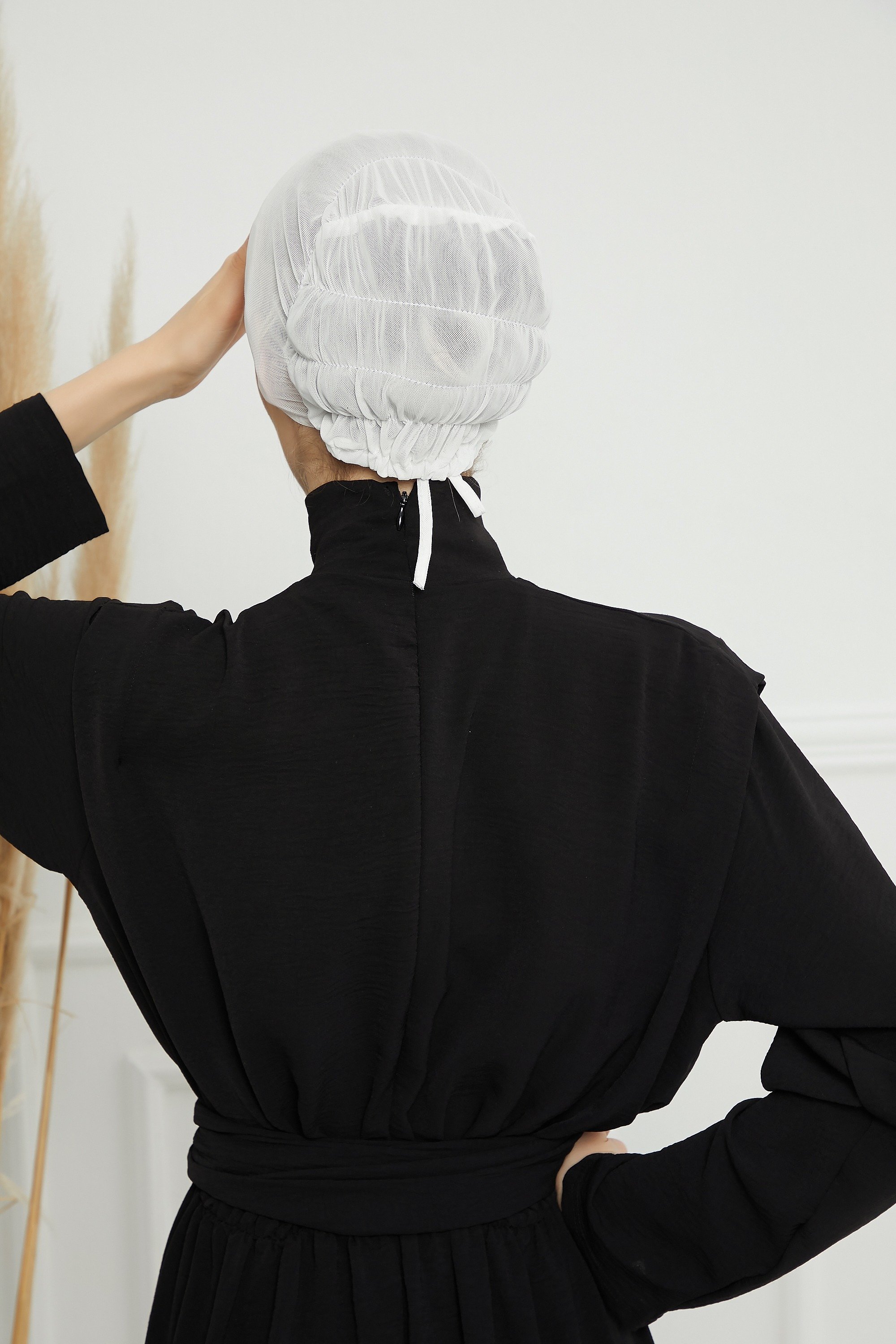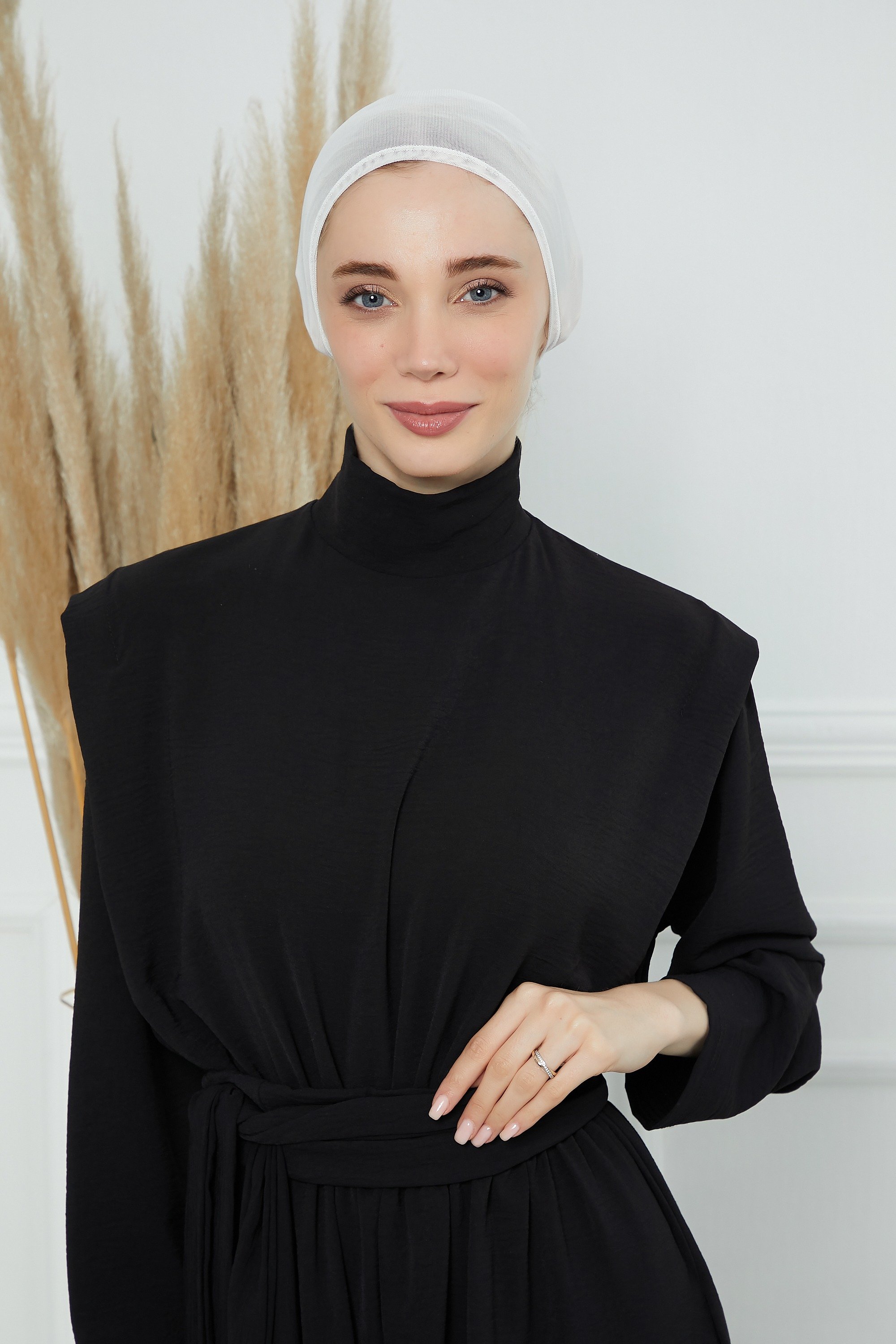 A light and transparent under-hijab cap is a piece to fix the turban or hijab and is one of the essential and important pieces to fix your hijab, as it gives you confidence and comfort in movement without worrying about the hijab slipping or moving, very transparent and light with a string at the back to control the size and fix the cap to the garment, practical and ideal for wearing all day long.