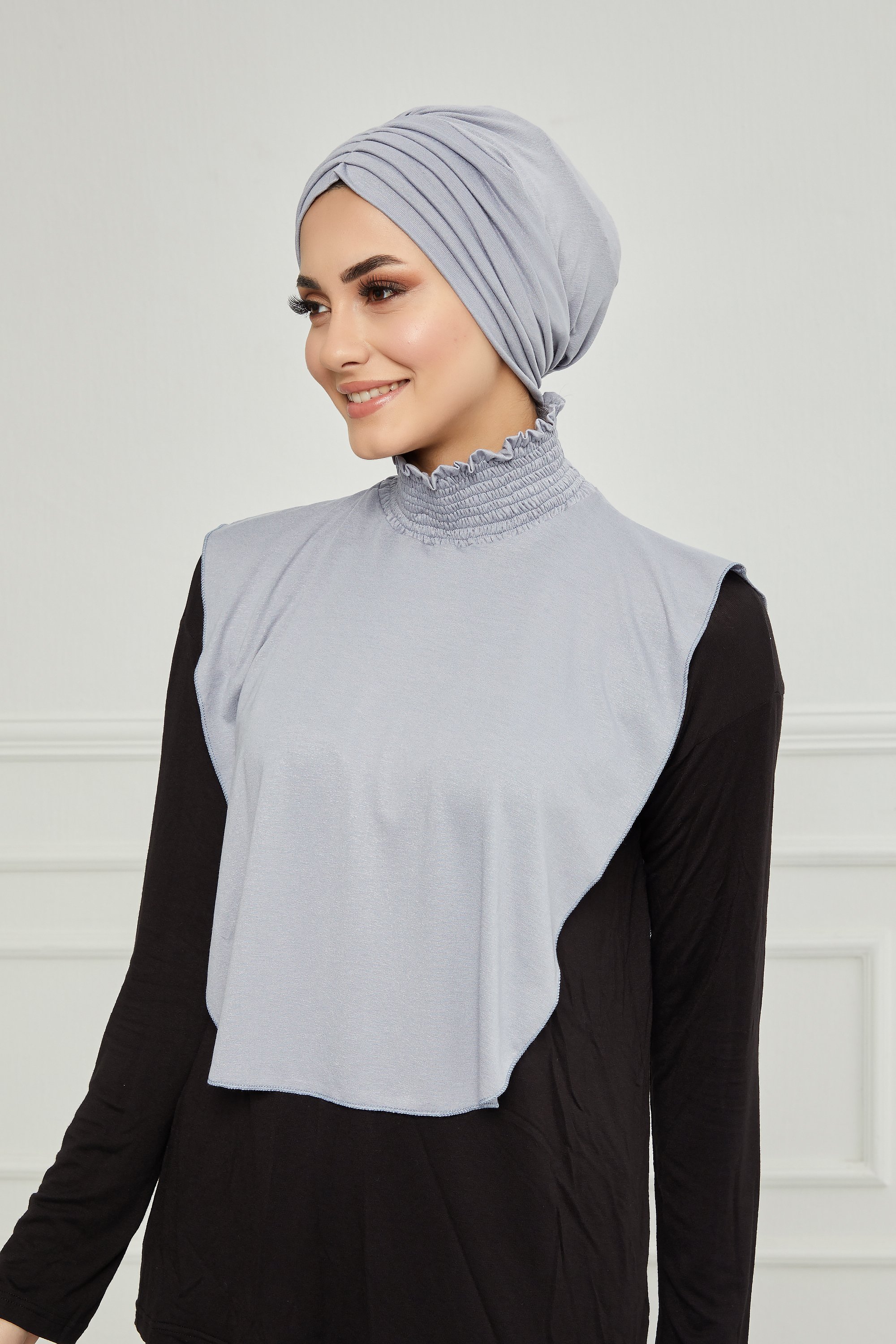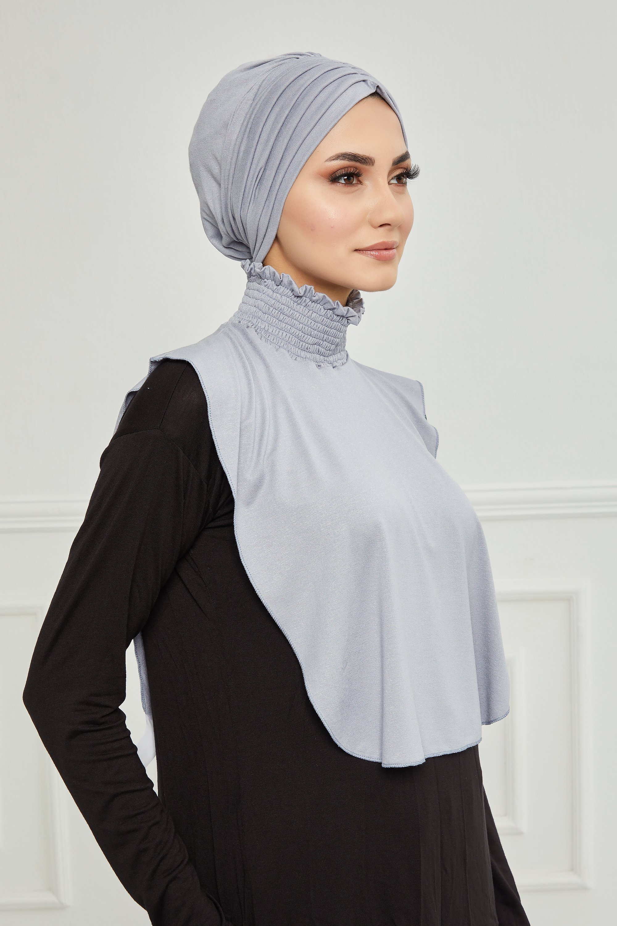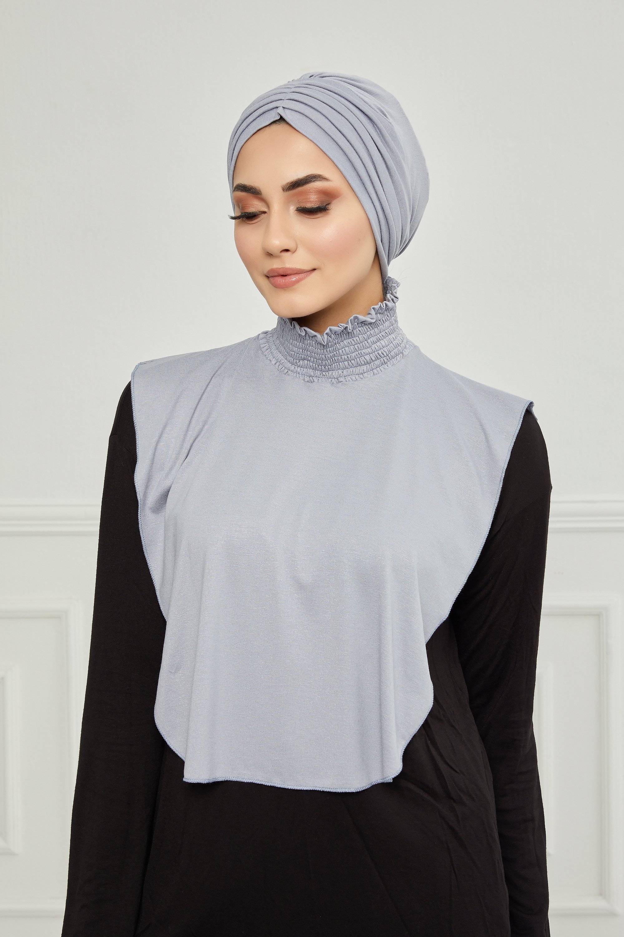 To get an elegant look, we recommend that you wear the neck cover piece with the following turbans: