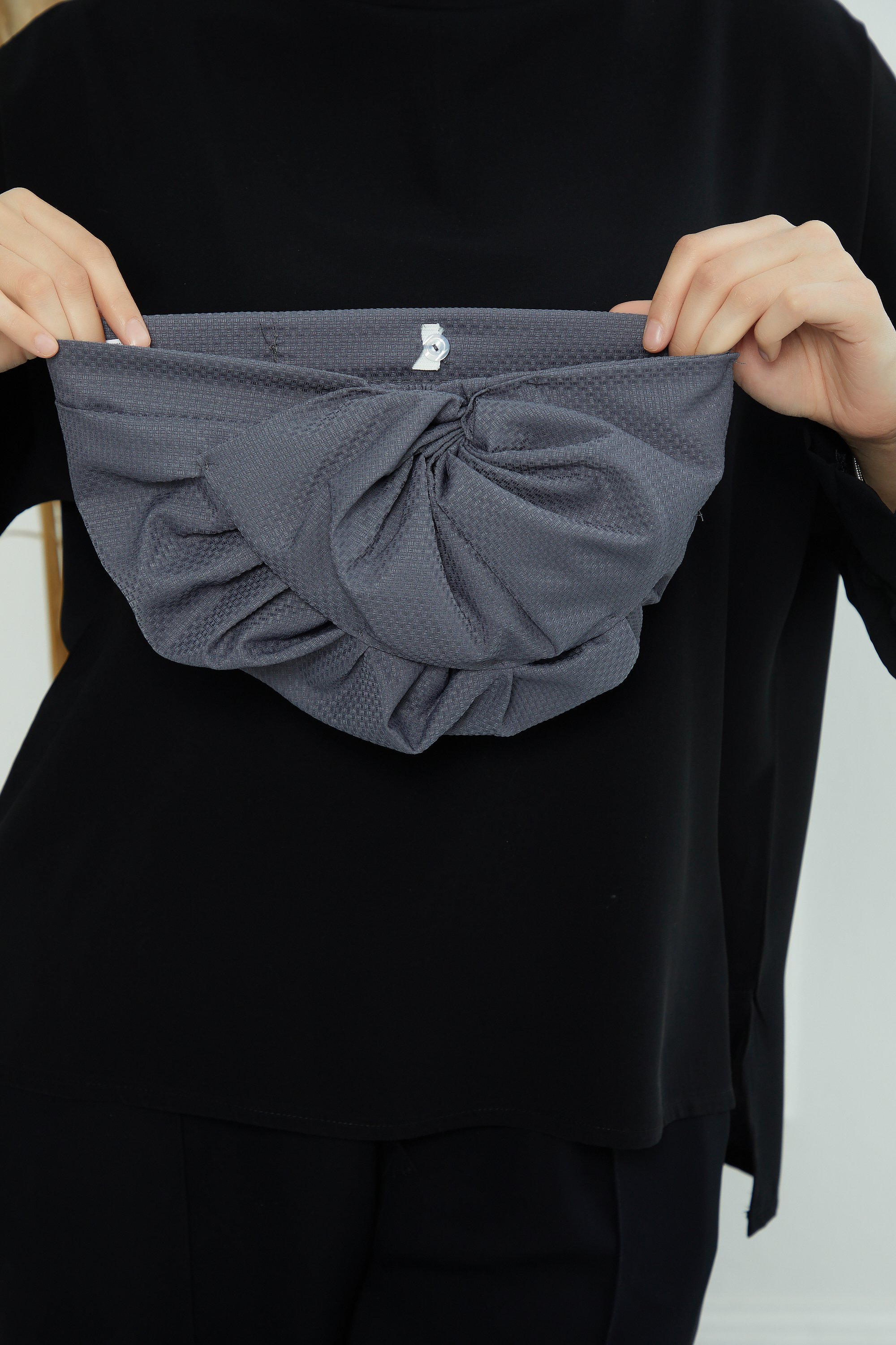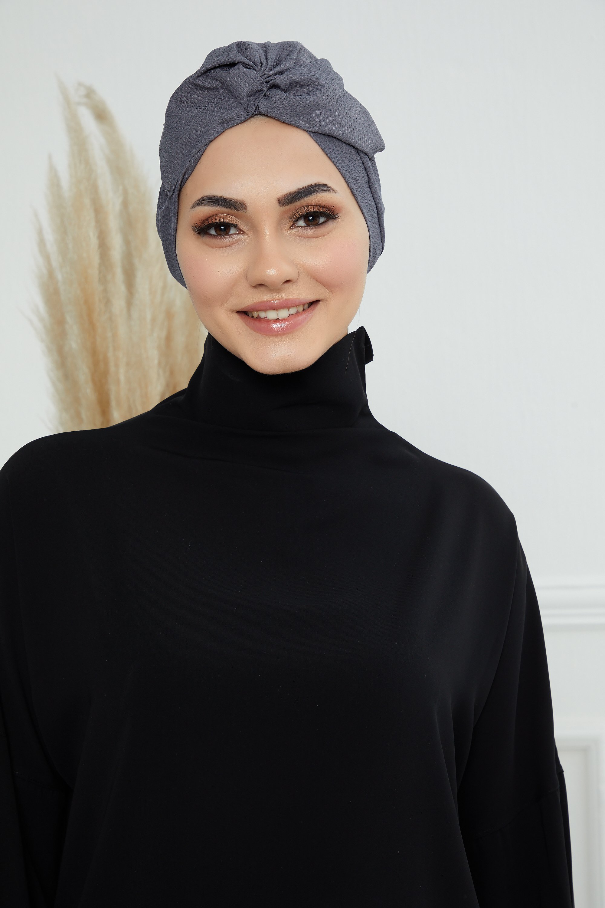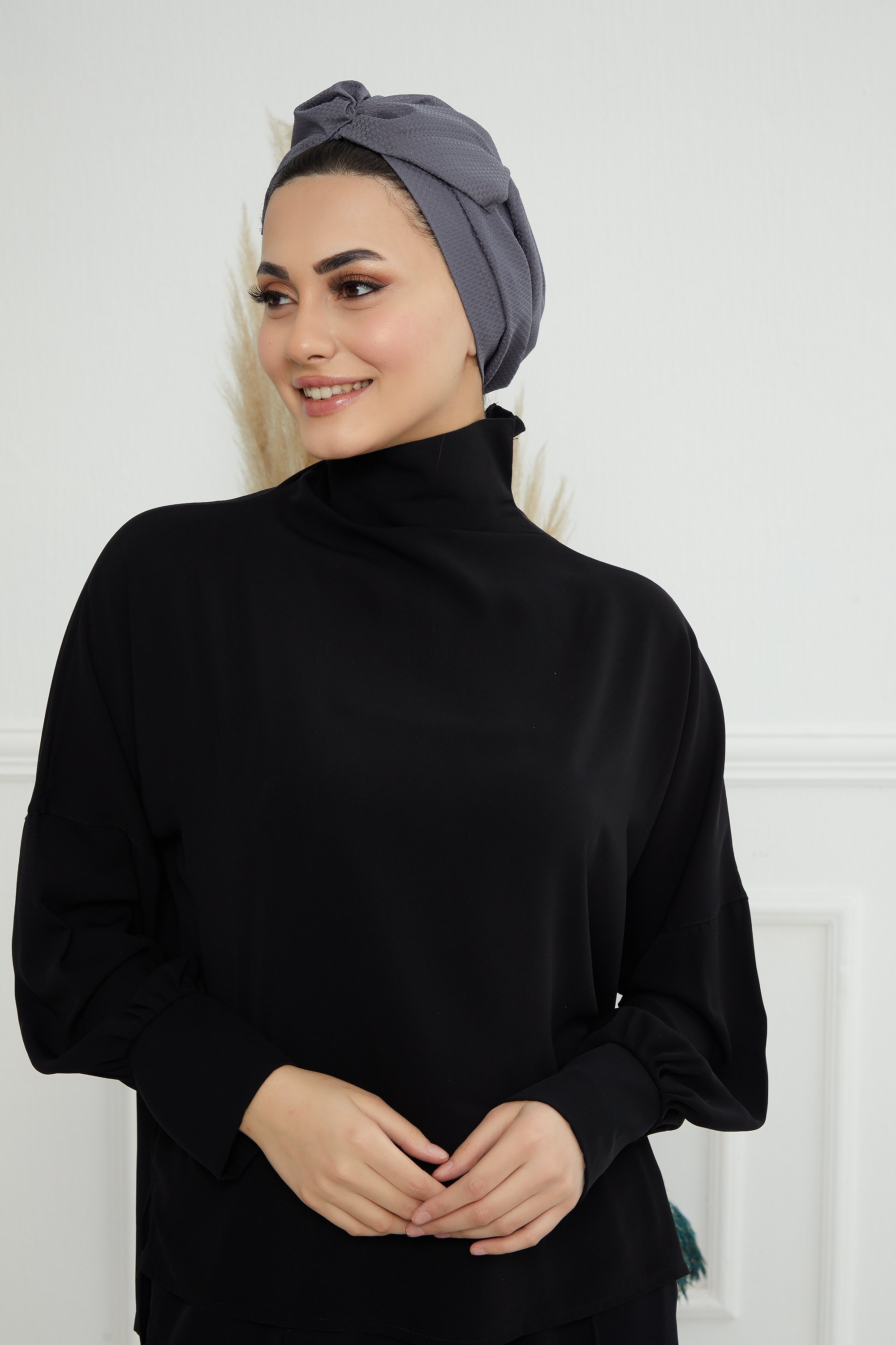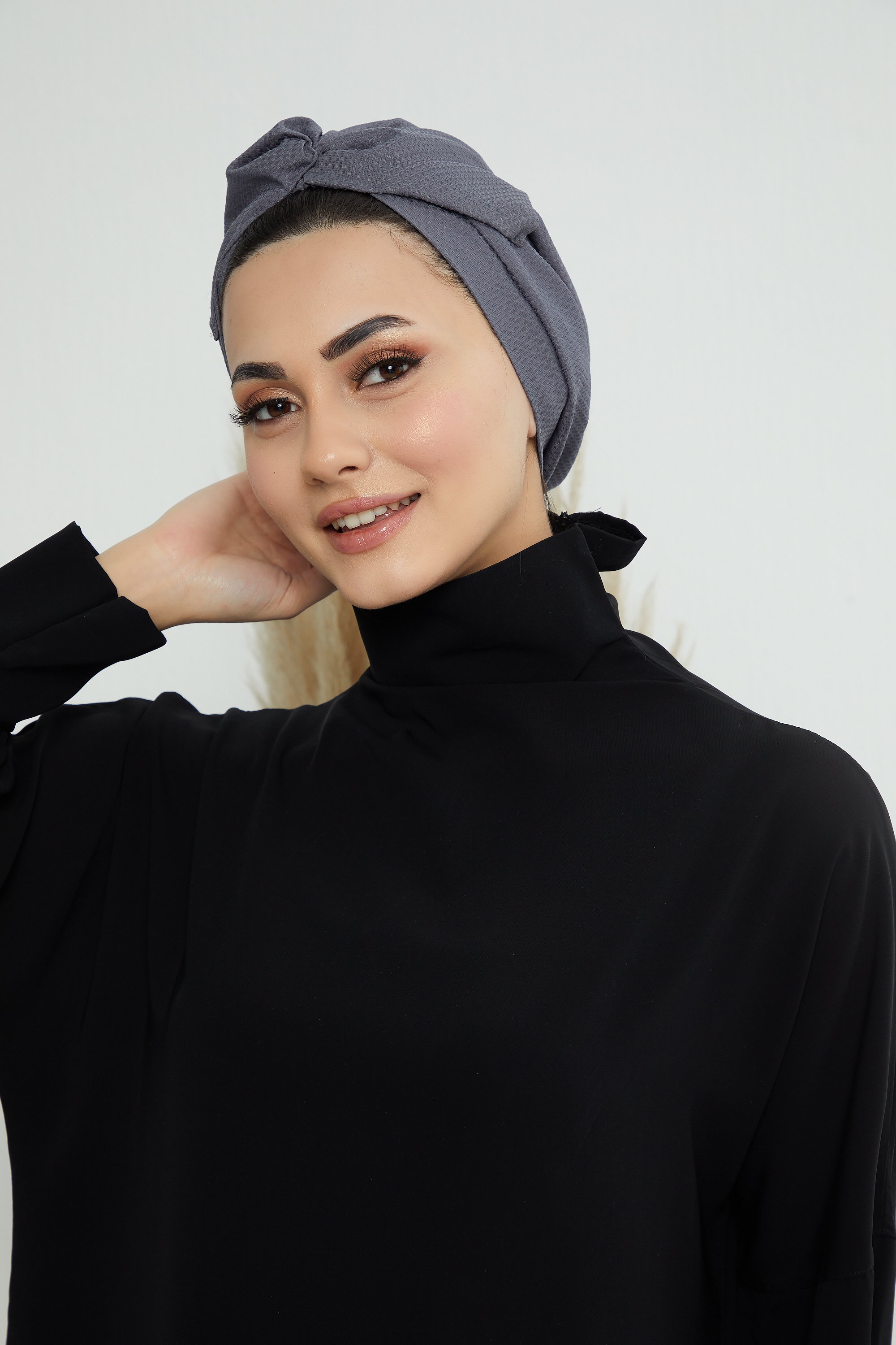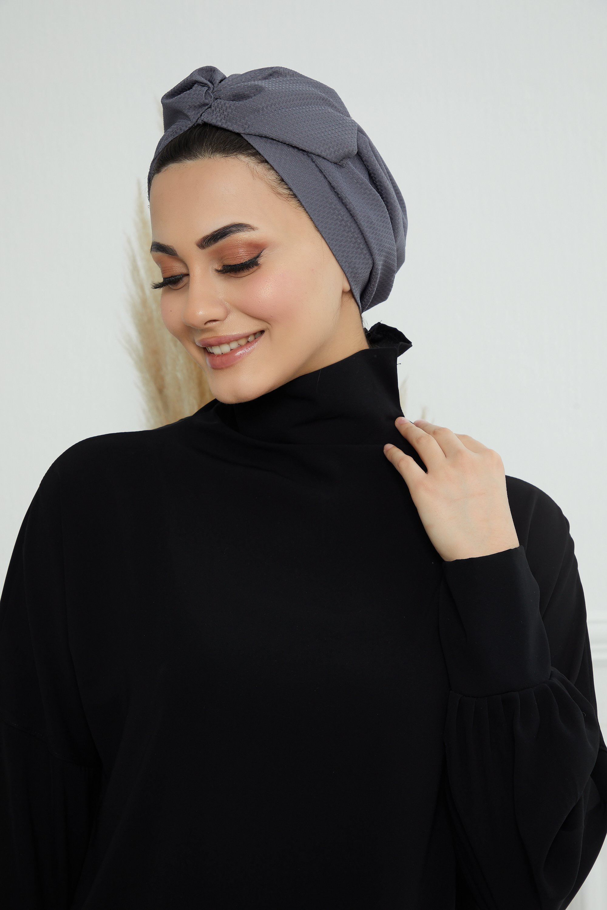 Fully adjustable size, with a tie in the front. VIP hijab turbans are designed with a tight tie in the front with the ability to control the size by expanding or tightening without the need to loosen and tie.