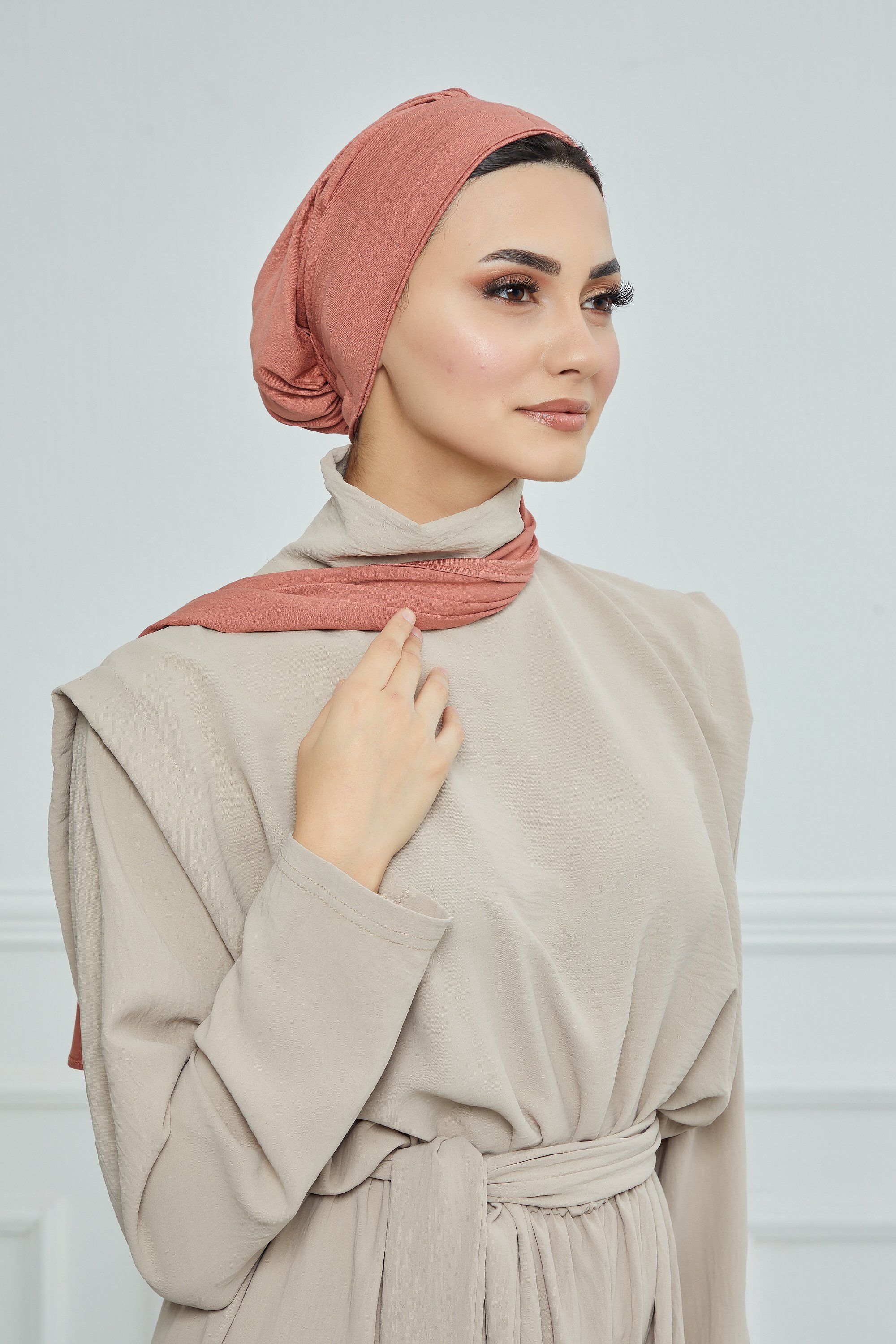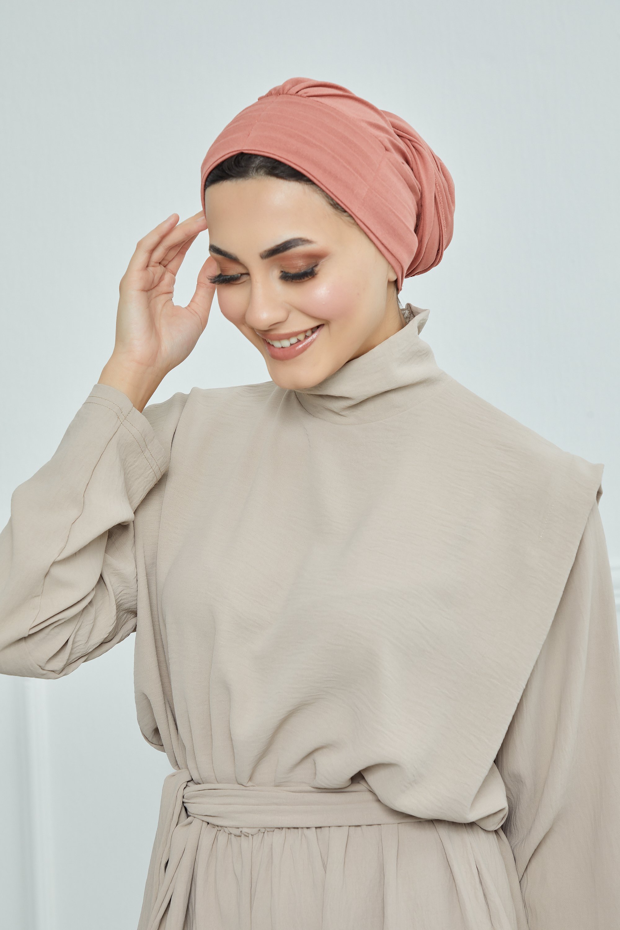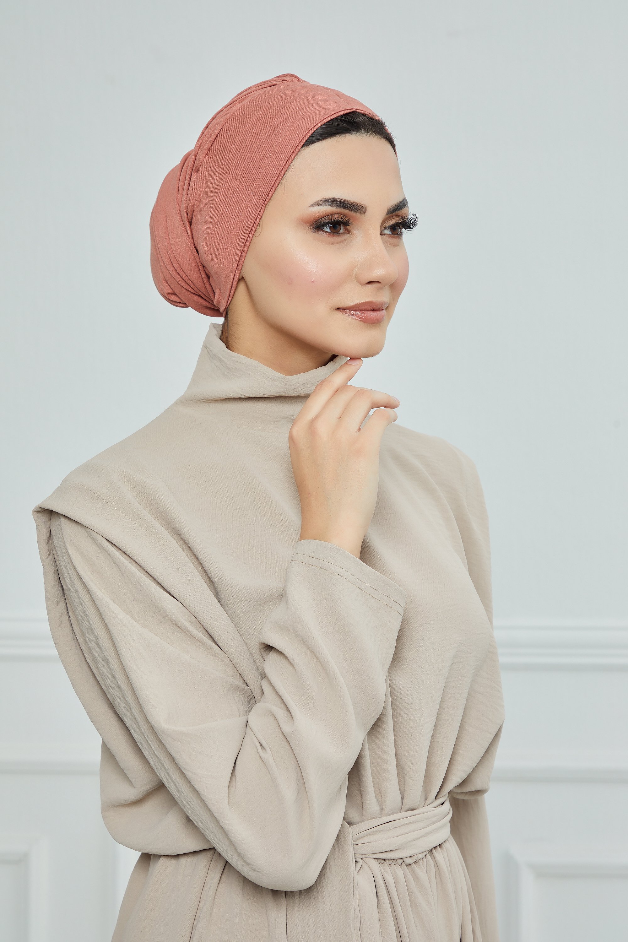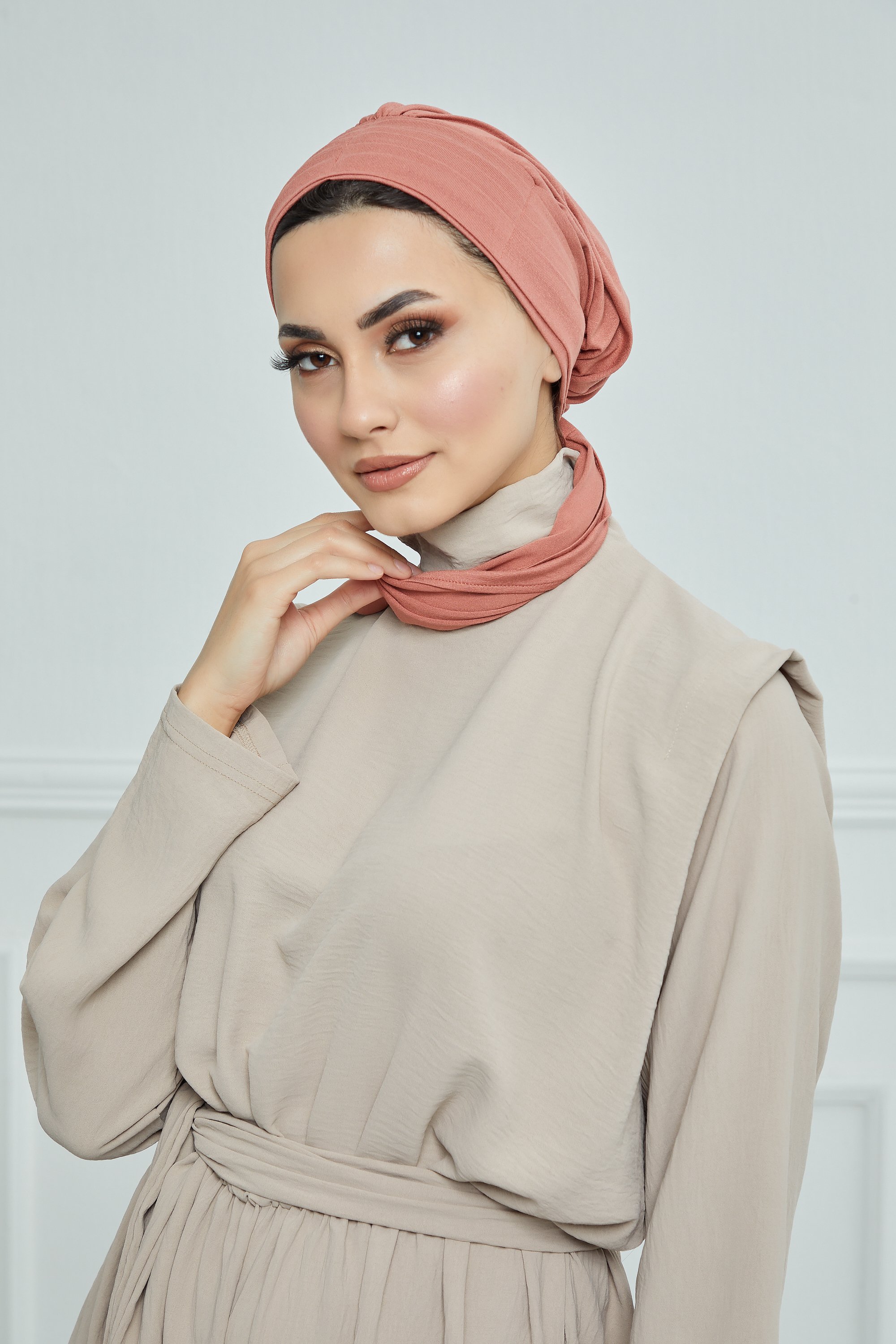 A very practical cotton turban with a long piece that allows you to wrap it around your hair. A modern and elegant model